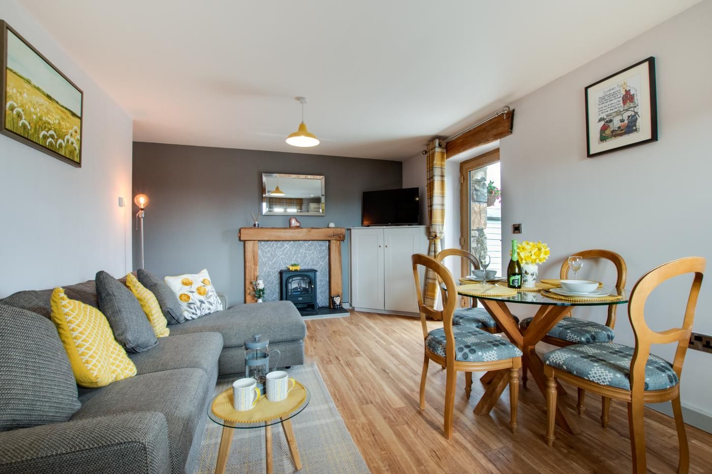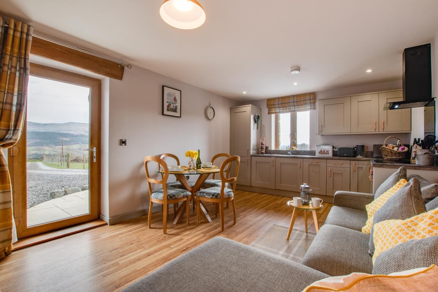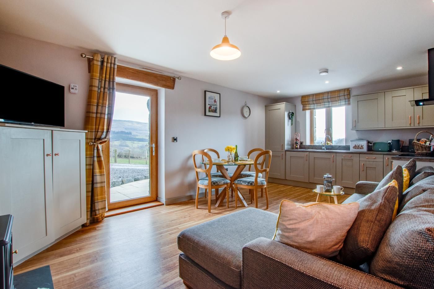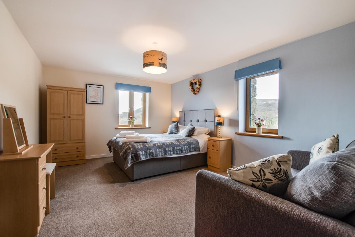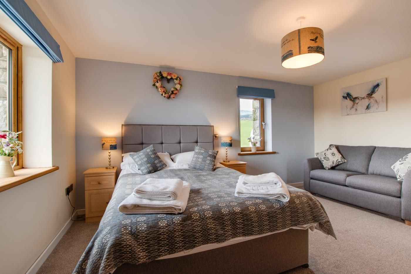 Set on a working farm amongst the rolling hills between Dolgellau and Bala, Sgubor y Gader features an attractive open plan living area with modern fitted kitchen, comfortable seating and dining area for up to 4 people. The king bedroom is complete with ample storage and sofa bed and the colourful bathroom is well-appointed with both bath and shower.