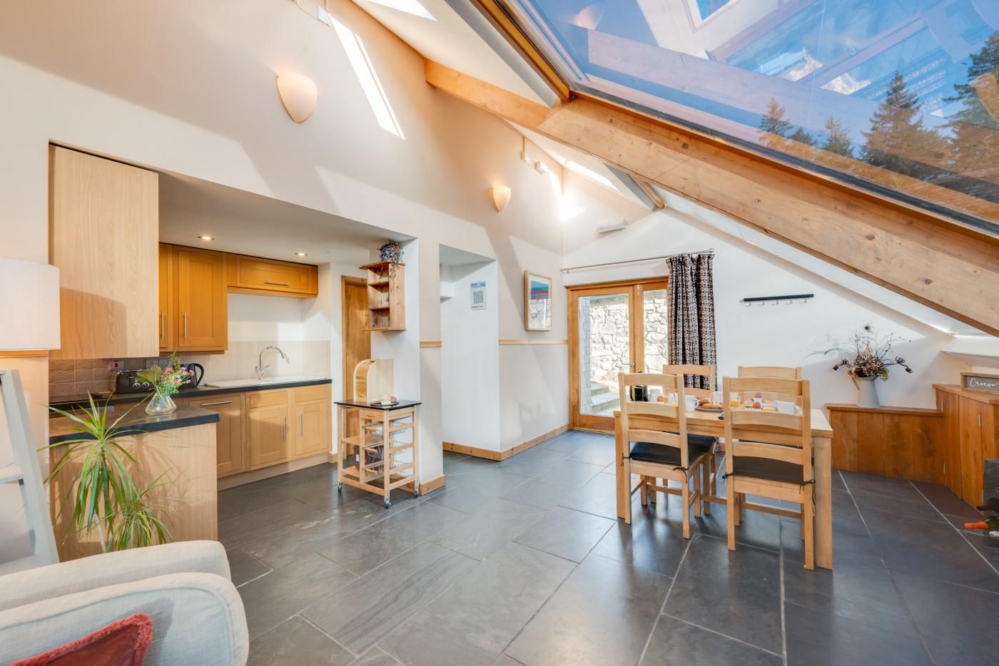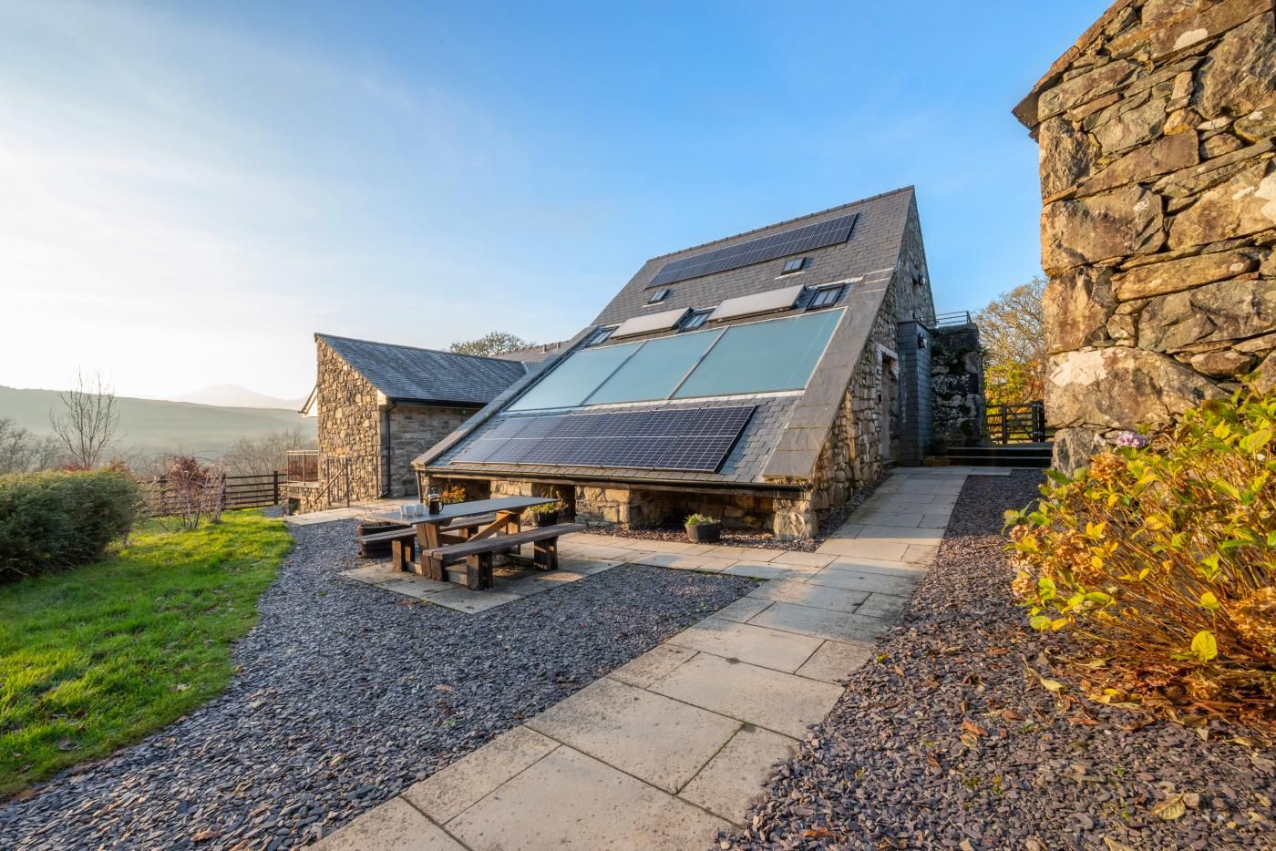 Situated near Coed y Brenin, in the Snowdonia National Park, Stabal y Gelli is an architecturally designed ground floor holiday home in a barn conversion that sympathetically combines traditional materials with modern sleek lines throughout.