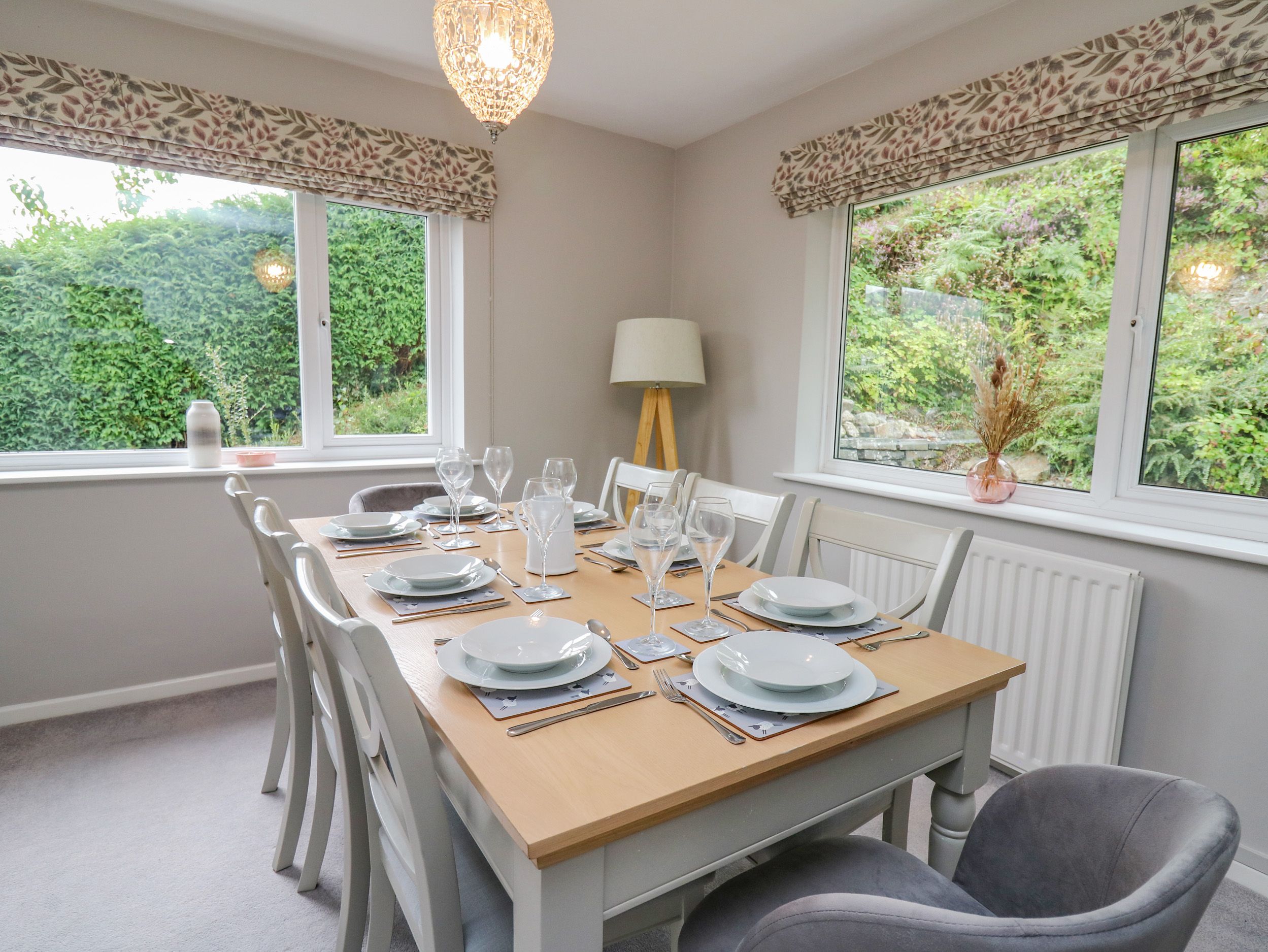 Amenities Oil central heating with woodburning stove. Electric double oven and hob, microwave, fridge/freezer, washing machine and dishwasher. Smart TV, WiFi. Fuel, power and starter for woodburning stove inc. in rent. Bed linen and towels inc. in rent. Two well-behaved pets are welcome (Garden is not enclosed). Off-road parking for 1 car, additional roadside parking, and EV charging point are available. Bike Storage. South-facing front balcony with patio and furniture, lower-level lawn. Sorry, no smoking. Shop and pub within walking distance. Note: Property is elevated, steps up to access. Note: The lawn is not enclosed, please ensure children are supervised. Note: No stag, hen or similar parties. Note: Property sleeps a maximum of 8 people.