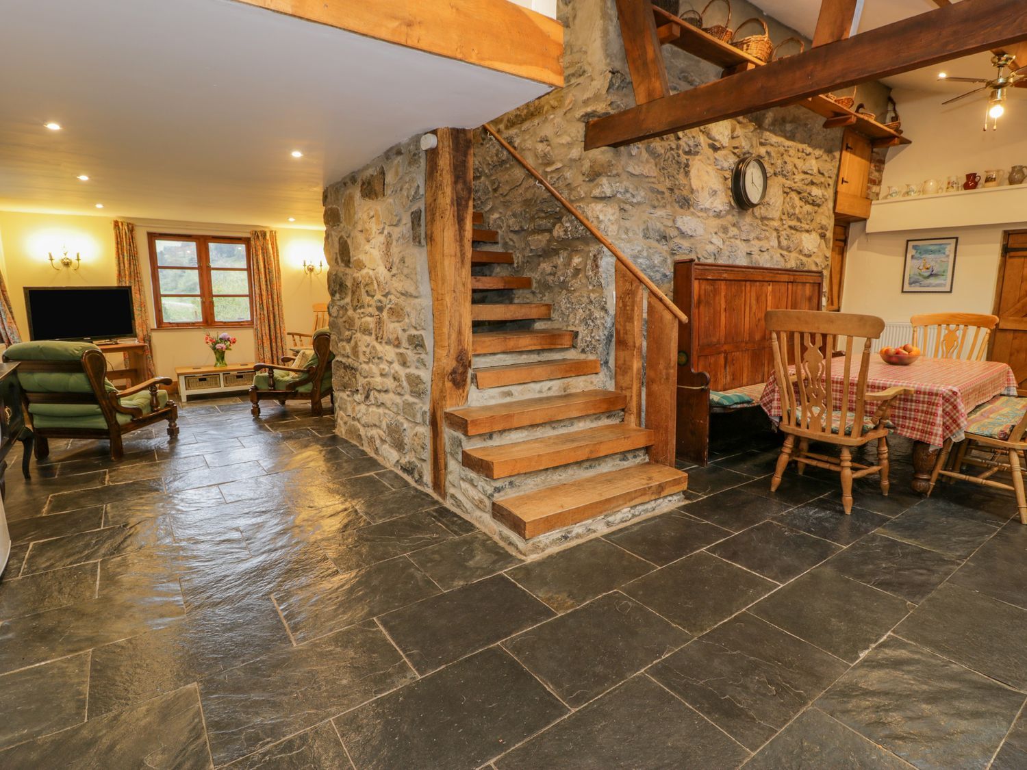 Accomodation Details Five bedrooms: 1 x king-size, four-poster bed with en-suite freestanding bath, shower over, basin and WC, 1 x king-size with en-suite corner bath, shower over, walk-in, jet shower, basin, and WC, 1 x double, 1 x ground floor double, 1 x triple. Bathroom with corner bath, shower over, basin, and WC. Ground-floor shower room with walk-in shower, basin, and WC. Kitchen/diner with woodburning stove. Dining room with woodburning stove. Sitting room. Snug. Games room with woodburning stove