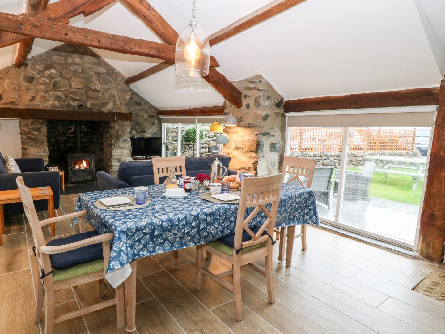 The living areas in the property consist of a kitchen equipped with electric oven, log burner, infrared hob, microwave, fridge, freezer, washing machine and a dishwasher, a living/dining room with woodburning stove, Smart TV, and dining seating for four guests. The bedrooms consist of a king-size and a twin, along with a shower room. Outside there is a private front garden with lawn, patio, picnic bench, furniture, and a barbecue within a shared courtyard, as well as off-road parking for two cars and additional communal parking. Within 0.7 miles you will find a shop, pub, and a beach, and please note that two well-behaved pets are allowed but sorry, no smoking. WiFi, fuel, power, bed linen and towels are all included in the price. For a truly unforgettable break in North Wales, visit Y Bwthyn.