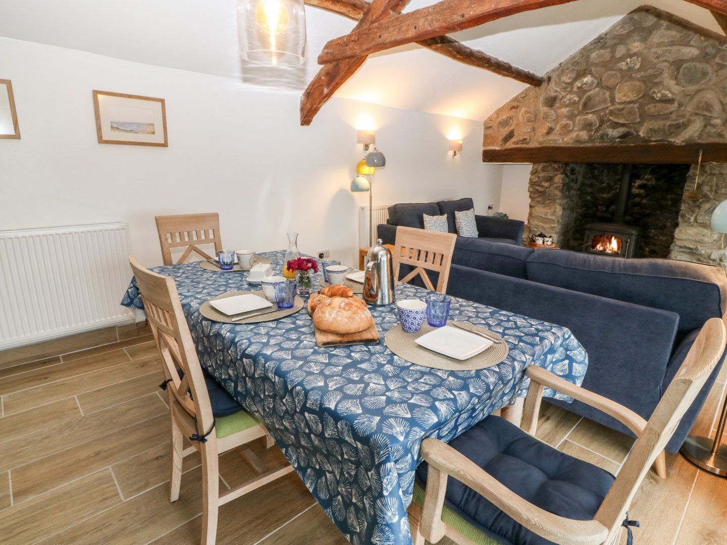 Oil central heating. Electric oven, Log burner, infrared hob, microwave, fridge, freezer, washing machine, and dishwasher. TV, WIFI, smart T.V, radio. Fuel and power inc. in rent. Bed linen and towels inc. in rent. Off-road parking for 2 cars, additional communal parking available. Private front garden with lawn, patio, picnic bench, furniture, and barbecue within shared courtyard. Two well-behaved pet's welcome. Sorry, no smoking. Shop, pub, and beach 0.7 miles. Note: There are three steps up to the kitchen.