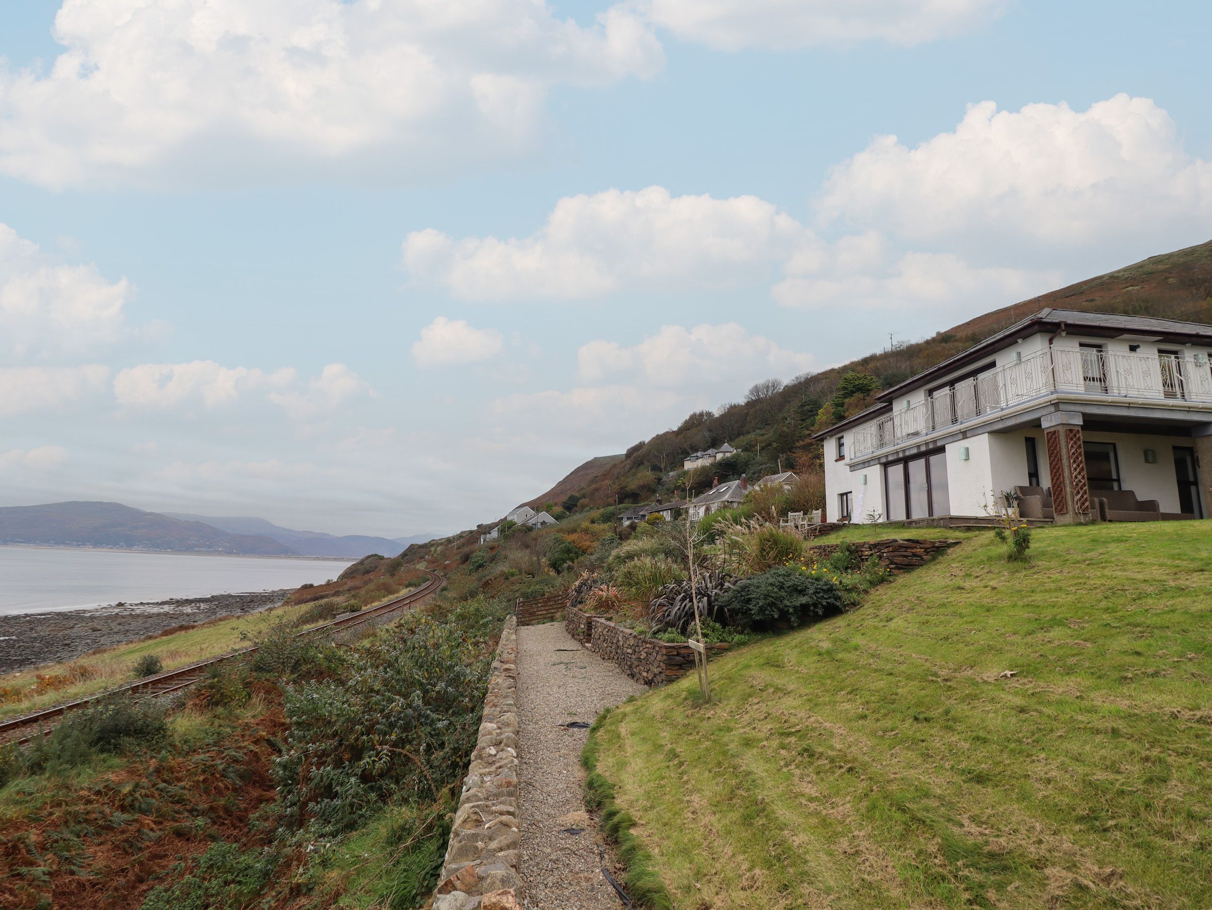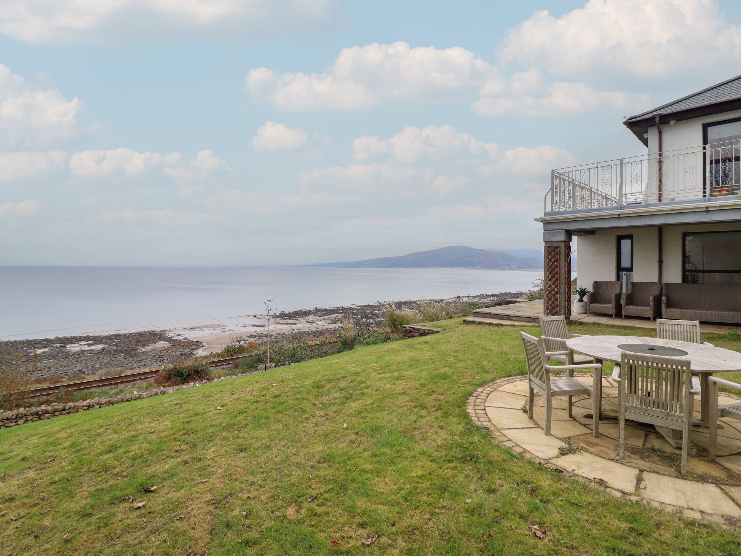 Gas central heating. Electric double oven, electric hob, microwave, fridge, freezer, washing machine, dishwasher, tumble dryer, kettle, toaster, coffee maker. 2 x Smart TVs, TV, table tennis, table football, WiFi. Fuel and power inc. in rent. Bed linen and towels inc. in rent. Travel cot, highchair and changing mat. Off-road parking for 3 cars. Enclosed rear multi-level garden with patio, lawn, gravelled area, furniture, and balcony. Sorry but no smoking. Two medium-size pets are welcome with surcharge of £12.75 per pet/per day. Shop, coffee shop and pub 0.5 miles, children's playground 0.4 miles, beach with public access 200 yards. Note: There are steps down to the rear garden from the ground floor. Note: There are weaving pathways and steps around the garden, please take care. Note: Cambrian Coast Railway Line passes through 3/4 times a day at the bottom of the garden (there is a wall to separate the two). Note: There is a Good Housekeeping Bond of £850. This property can be booked together with property 1076585.