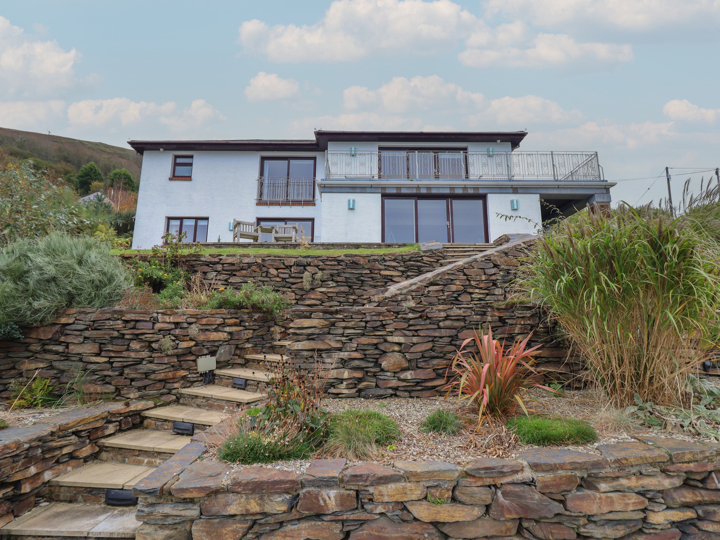 Gwylanod offers a kitchen with two dining tables, an electric double oven, hob, microwave, dishwasher, kettle, toaster, and coffee maker. The utility room has a fridge, freezer, washing machine, and tumble dryer. Sitting room with a Smart TV and gas fire, game room with a ping pong table and Smart TV. Bedrooms are located on the ground and lower ground floors, including a super-king-size with en-suite, two king-size rooms, a family room, and a child’s bunk bed. There’s also a bathroom and shower room. WiFi, fuel, power, bed linen, towels, a travel cot, and a highchair are provided. The enclosed rear garden features a patio, lawn, gravel area, furniture, and a balcony. Off-road parking is available for three cars. No smoking allowed. Two medium-size pets are welcome with surcharge of £12.75 per pet/per day. Shop 2.4 miles, pub 0.4 miles, beach 2.7 miles. Enjoy an unforgettable stay at Gwylanod. Note: There are steps down to the garden, with weaving pathways and steps. Note: The Cambrian Coast Railway Line runs behind the garden (separated by a wall). Note: There is a Good Housekeeping Bond of 850GBP. This property can be booked together with property 1076585 .