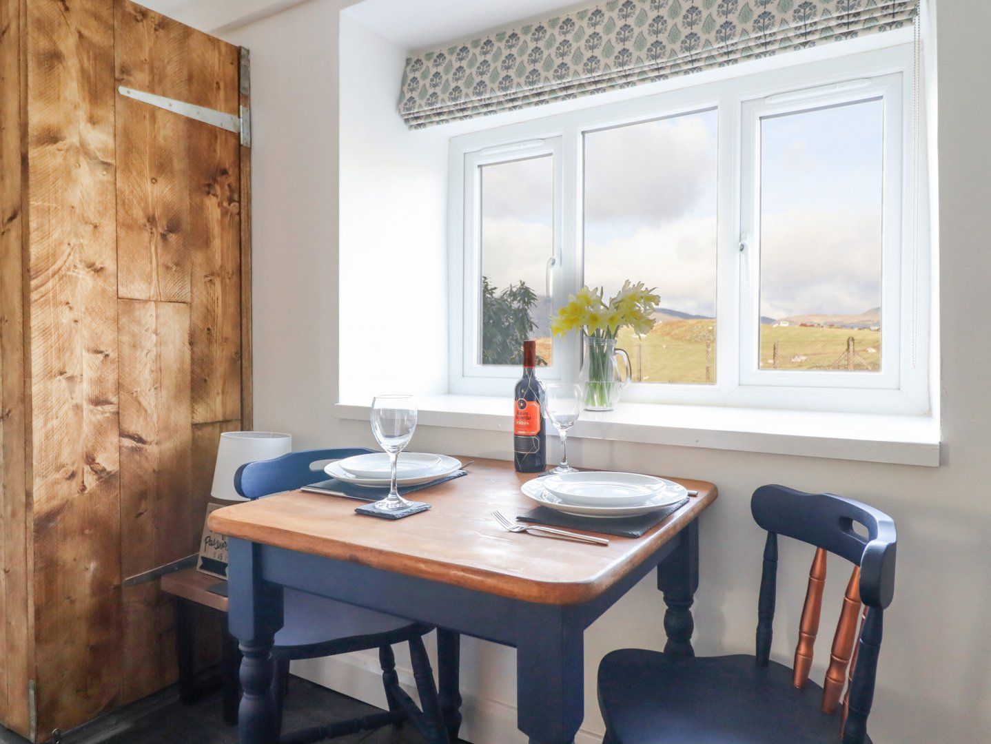 Holiday home The living areas in this holiday home consist of a kitchen equipped with electric oven and hob, microwave, fridge/freezer, washing machine and dishwasher and a living/dining room with table for two, Smart TV and woodburning stove. There is one king-size bedroom serviced by a ground-floor bathroom. Outside there is roadside parking available, a front patio with furniture and a rear garden with patio, lawn and hot tub. Within 0.5 miles there is a shop and 0.6 miles a pub. One well-behaved dog welcome (This property does not accept any other pet types), but sorry, no smoking. WiFi, fuel starter pack for woodburning stove inc. in rent (only during winter months). Bed linen and towels are all included in the price. Explore North Wales at Ael Y Bryn. Note: There are three steps up into the kitchen, please take care. Please note: this property has a minimum stay of 3 nights.