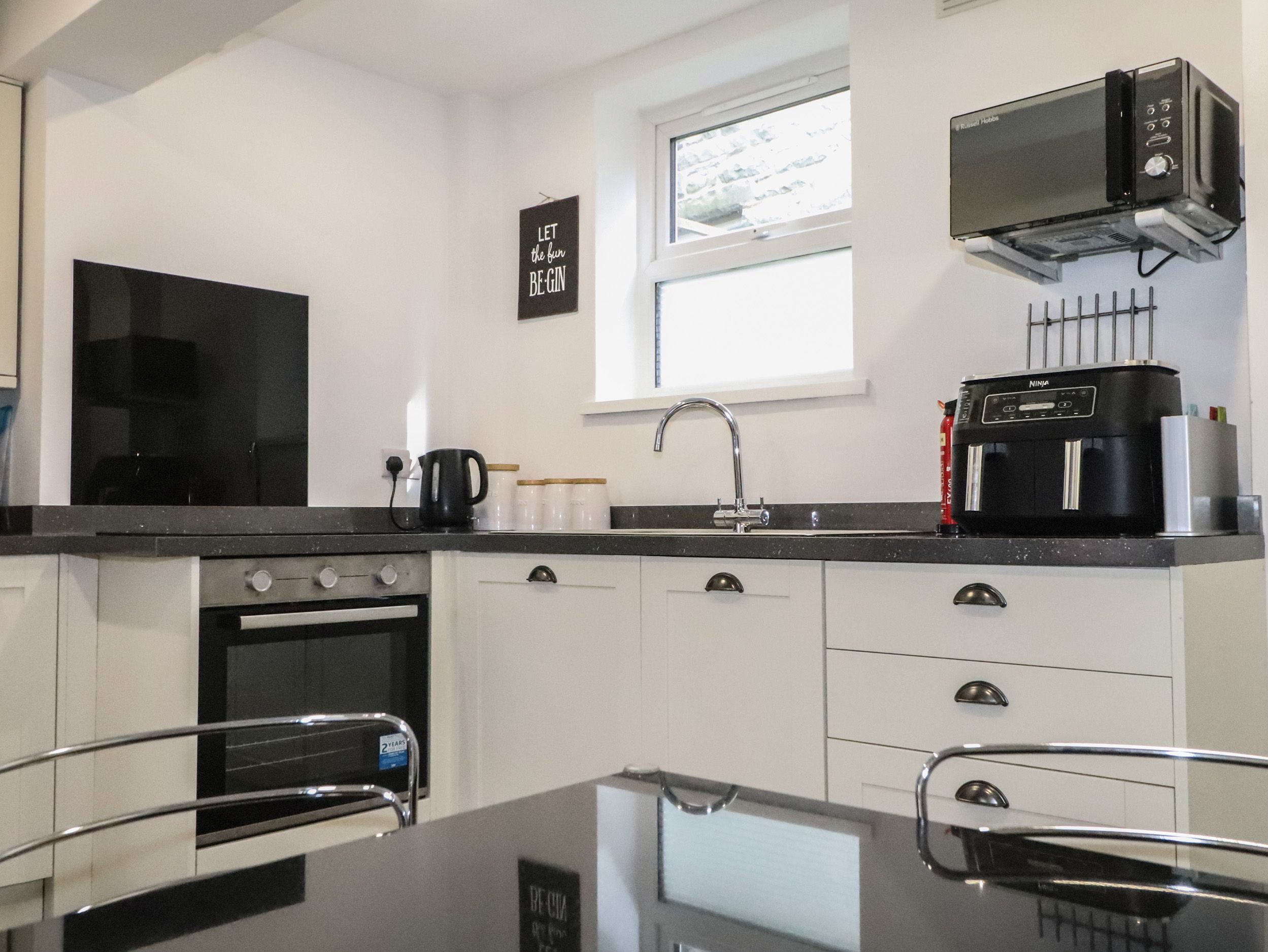 Electric central heating. Electric oven and hob, microwave, fridge/freezer, dishwasher, cafetiere, kettle and toaster. Smart TV, WiFi. Bed linen and towels inc. in rent. Public roadside parking nearby, Public Car park within about 200 yards. One well-behaved pet welcome. Sorry, no smoking. Shop 0.2 miles, pub 0.1 miles, beach 1.1 miles