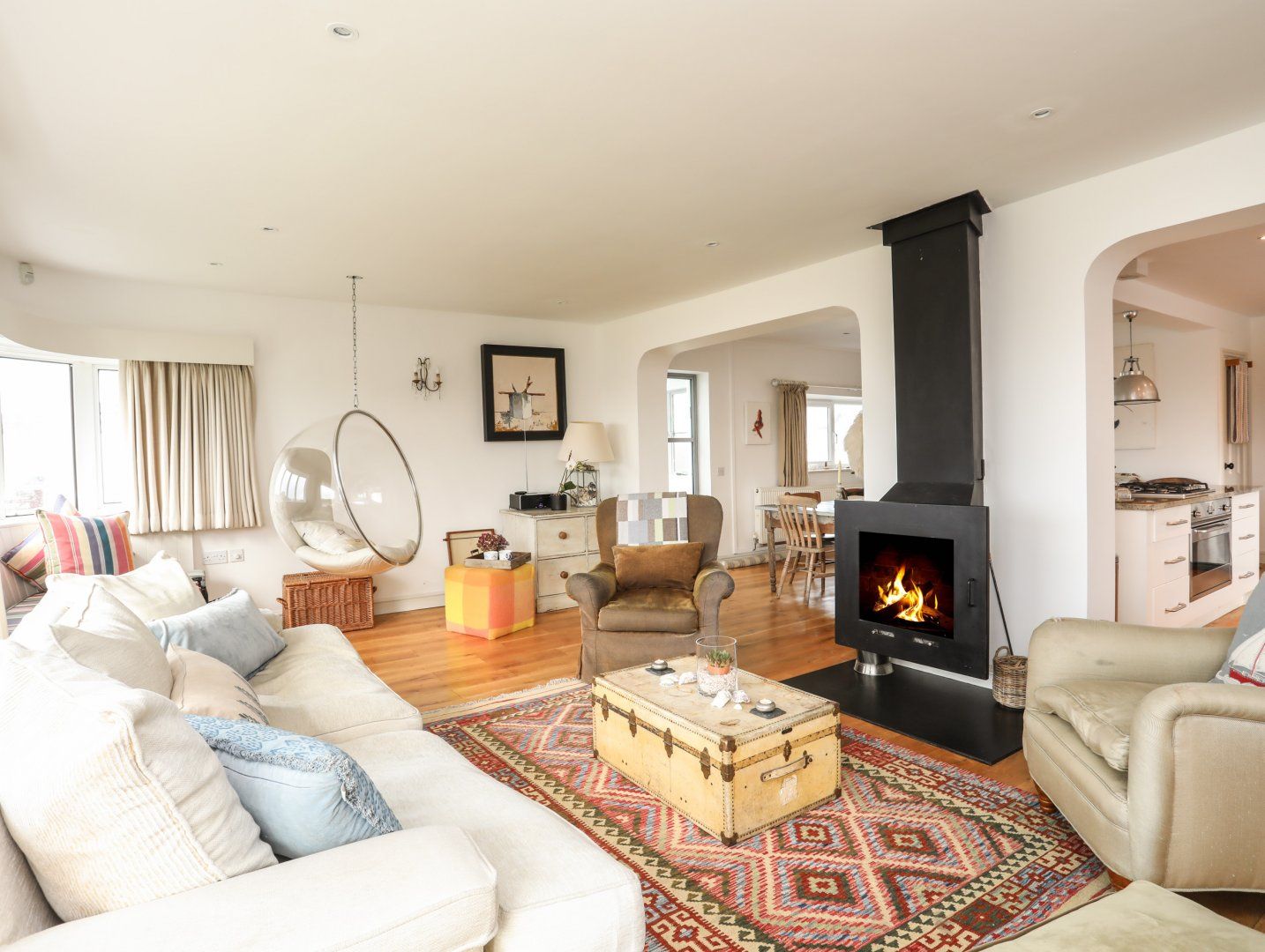 Amenities Gas central heating with multi-fuel stove. Oven, hob, microwave, fridge/freezer, washing machine, dishwasher. TV and WiFi. Fuel, power and starter pack for multi-fuel stove inc. in rent. Bed linen and towels inc. in rent. Off-road parking. Rear garden with decking, lawn and furniture. One well-behaved pet welcome (£35 Charge per stay). Sorry, no smoking. Shop 0.7 miles, pub 0.4 miles, beach 0.8 miles. Note: There are steps in the garden, please take care. Note: Check-in is from 4pm Saturdays, check-out by 10am. No charging of EV's using property's electric please.