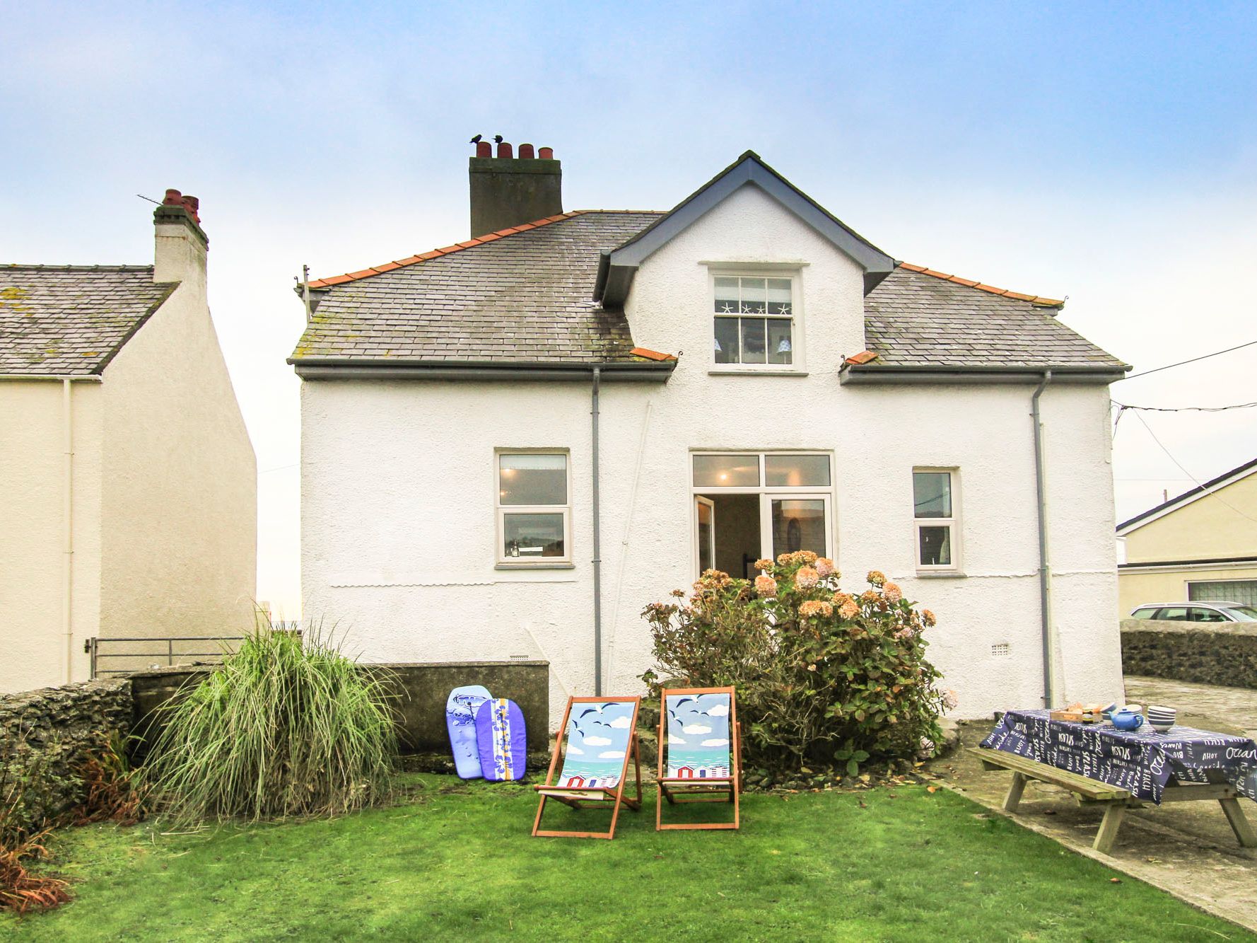 Accomodation Details Four bedrooms: 2 x king, 1 x twin with double beds, 1 x bunk room. Ground floor shower room with handwash basin and WC, ensuite with shower, loo and WC, family bathroom with bath, WC and handwash basin. Open plan living space, kitchen with oven, gas hob, microwave, fridge freezer, Washer/Dryer, dishwasher and a large dining table with bench seating, a seating area with 3 sofas, electric fire and SKY TV with premium sports channels. Additional sitting room with sofa, beanbags, TV, DVD and various games. There is also an additional dining area. Enclosed gardens. Bench seating to the rear with a couple to porch chairs to the front.Outhouse with wetsuits, crabbing nets, buckets and spades for guests' use. Parking for 3 cars.