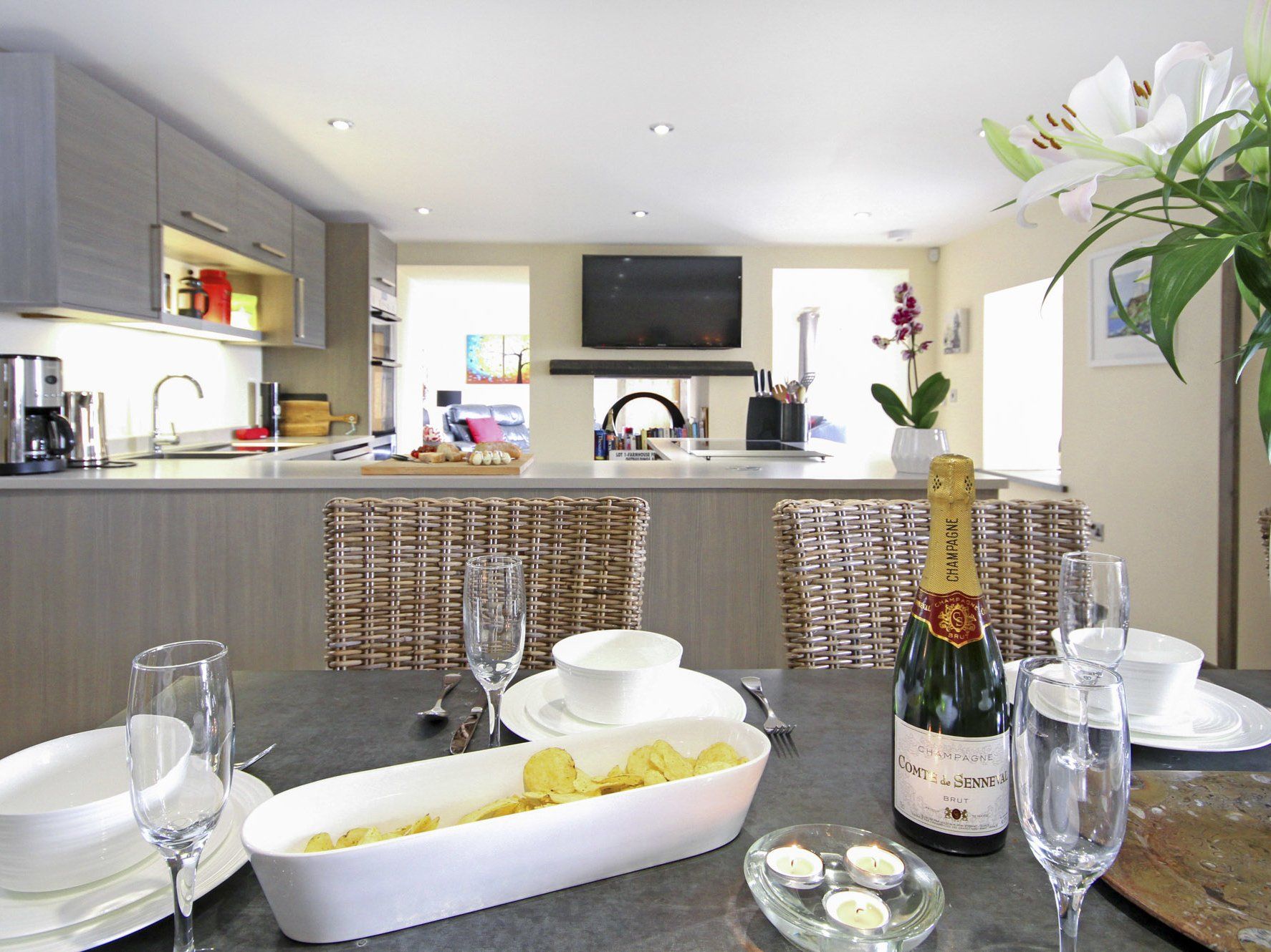 Underfloor heating. Electric oven with separate induction hob, fridge/freezer, dishwasher, microwave, Nespresso Vertuo Plus coffee maker and filter coffee machine, toaster, washing machine, tumble dryer. Smart TV, Sky movies and sports, Free Sat in bedrooms, Bluetooth stereo, WiFi. Bed linen and towels provided. 4 x hairdryers, iron & ironing board. Enclosed garden, which is a third of an acre with patio, gravelled area and lawn. BBQ (April - September), and in ground trampoline. Ample parking. Pubs, shops and restaurants 3.5 miles. Travel cot, high chair & stair gate on request only, please bring your own baby bed linen. Note: Two well behaved dogs welcome, first dog is free, second dog is charged at £20 - (Untrained dogs must be in crates). Note: PETS ARE STRICTLY NOT ALLOWED UPSTAIRS. Notes: No cats allowed. Note: Parties of any kind (including Stag and Hen) are strictly prohibited - Owner is nearby. Note: The charging of electrical vehicles is strictly prohibited. Note: This property has a Good Housekeeping Bond of £400.