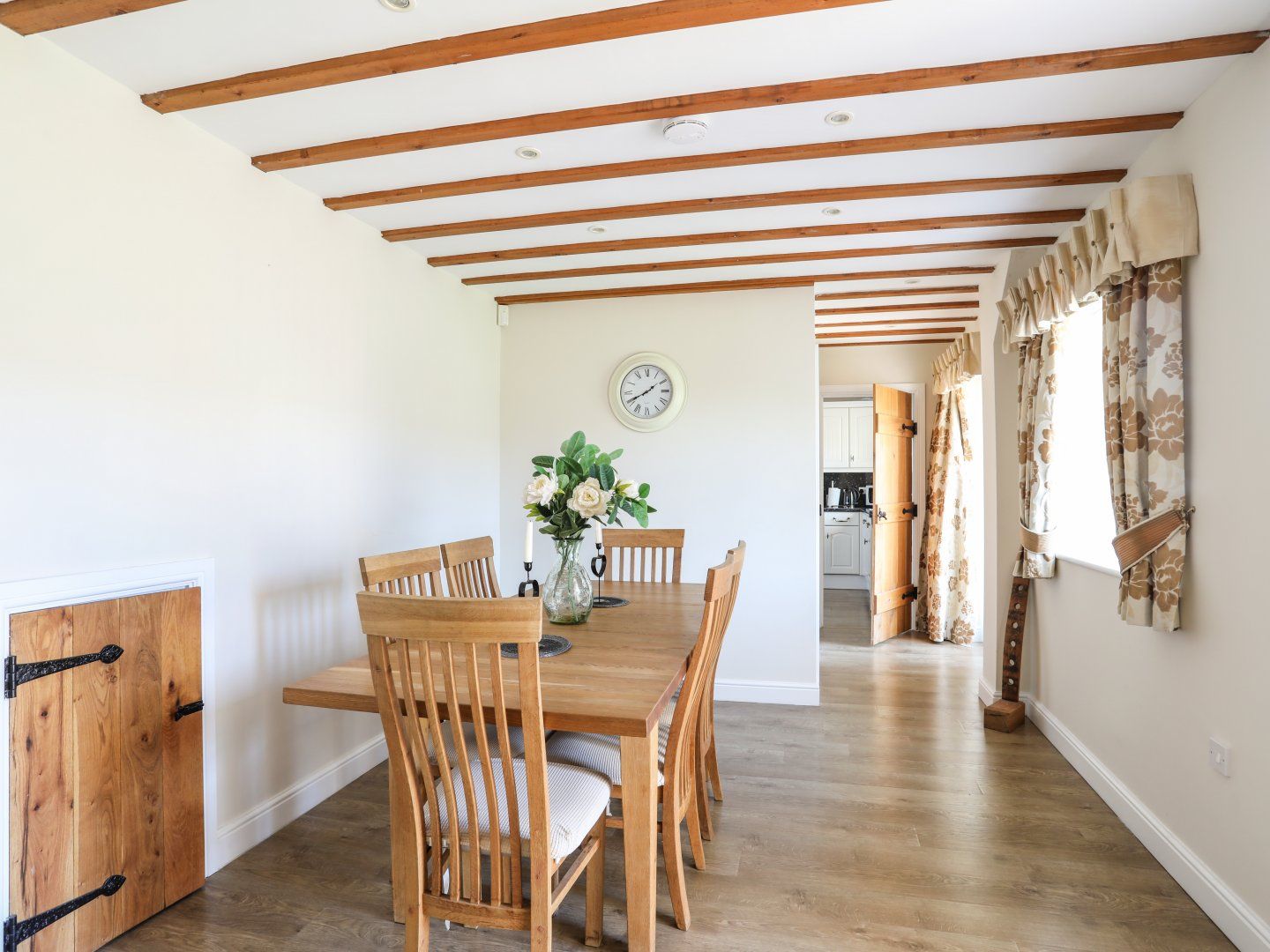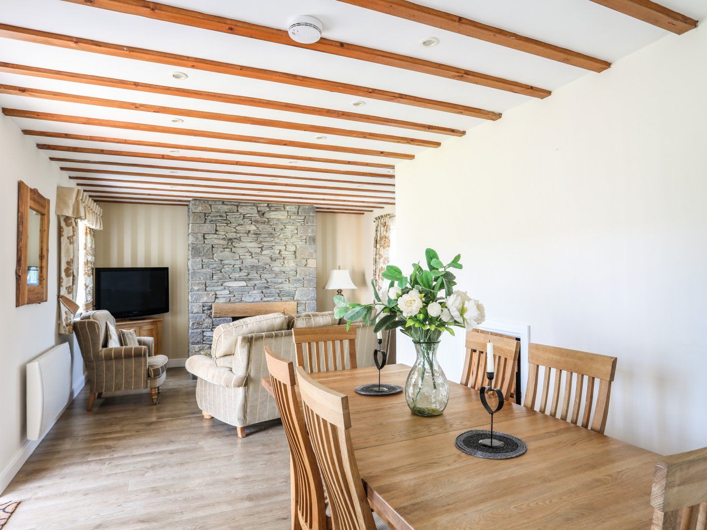 The open plan living has a lovely feel to the cottage with comfy sofas, 40” flat screen TV and a lovely dining area.