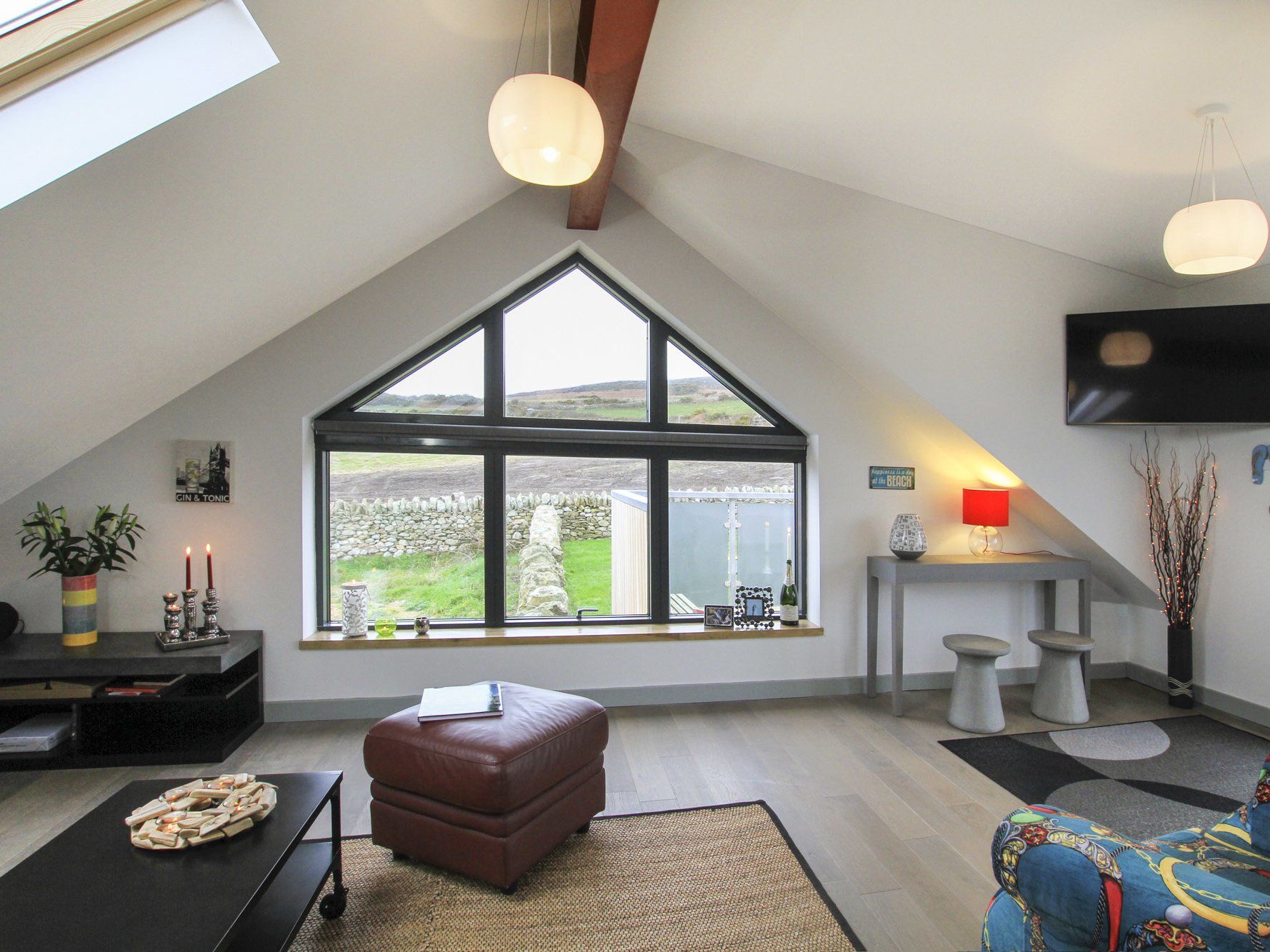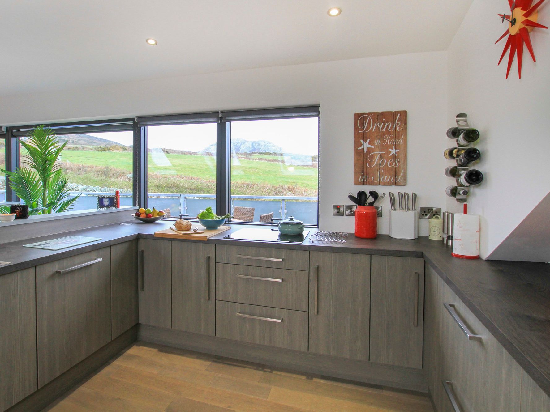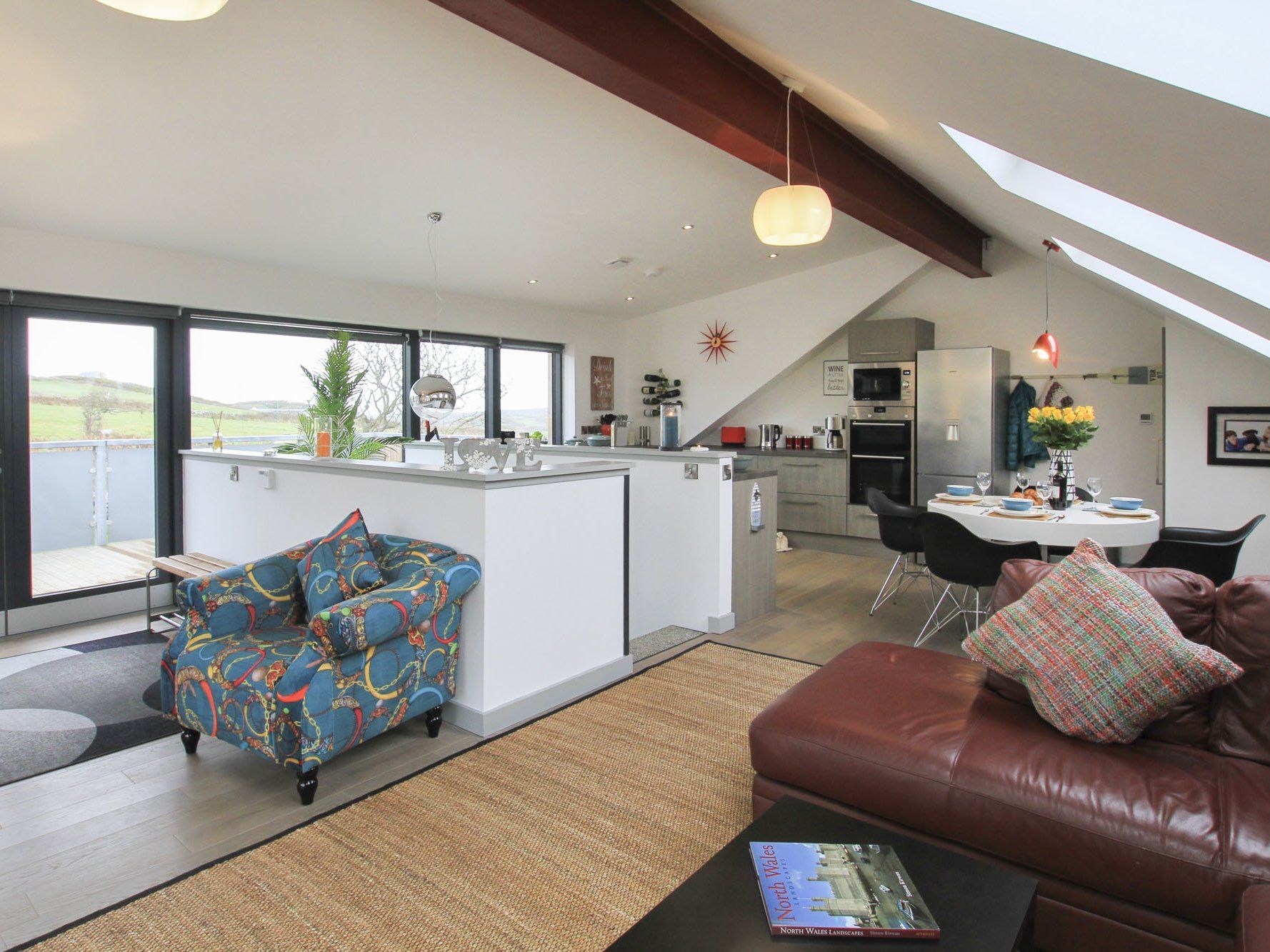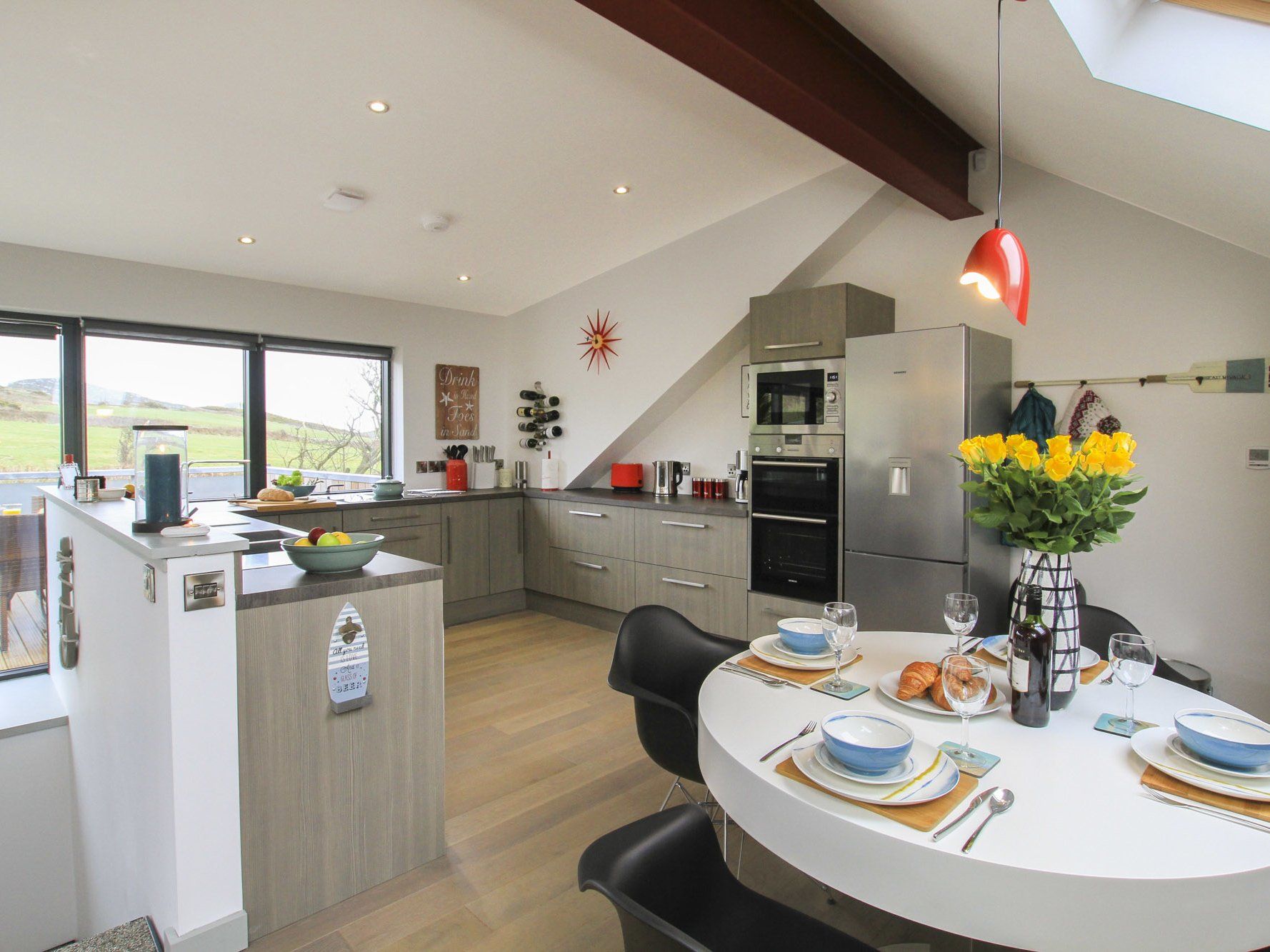 Ysbryd y Mynydd, a reverse-level home, has an open-plan kitchen, dining area and sitting area, two king-size bedrooms (zip/link), a bathroom and a shower room. Appliances consist of oven and hob, washing machine, tumble dryer, fridge, freezer, microwave, dishwasher, coffee machine, two hairdryers, Smart TV with Sky Movies and Sports, and Bluetooth stereo. There is an enclosed garden with furniture, in-ground trampoline, and hot tub on request at a 100 GBP supplement paid directly to the owner, and off-road parking. One well-behaved pet welcome. Sorry, no smoking. WiFi, fuel, power, bed linen and towels are all included, along with highchair, travel cot and stairgate on request (please bring linen). You'll find a shop in 2.1 miles and pub in 2.5 miles. Enjoy the best of Anglesey from Ysbryd y Mynydd. Note: Barbecue available April to September. Ysbryd y Mynydd welcomes one well-behaved pet. Note: PETS ARE STRICTLY NOT ALLOWED DOWNSTAIRS. Note: Untrained pets/puppies must be in crates.