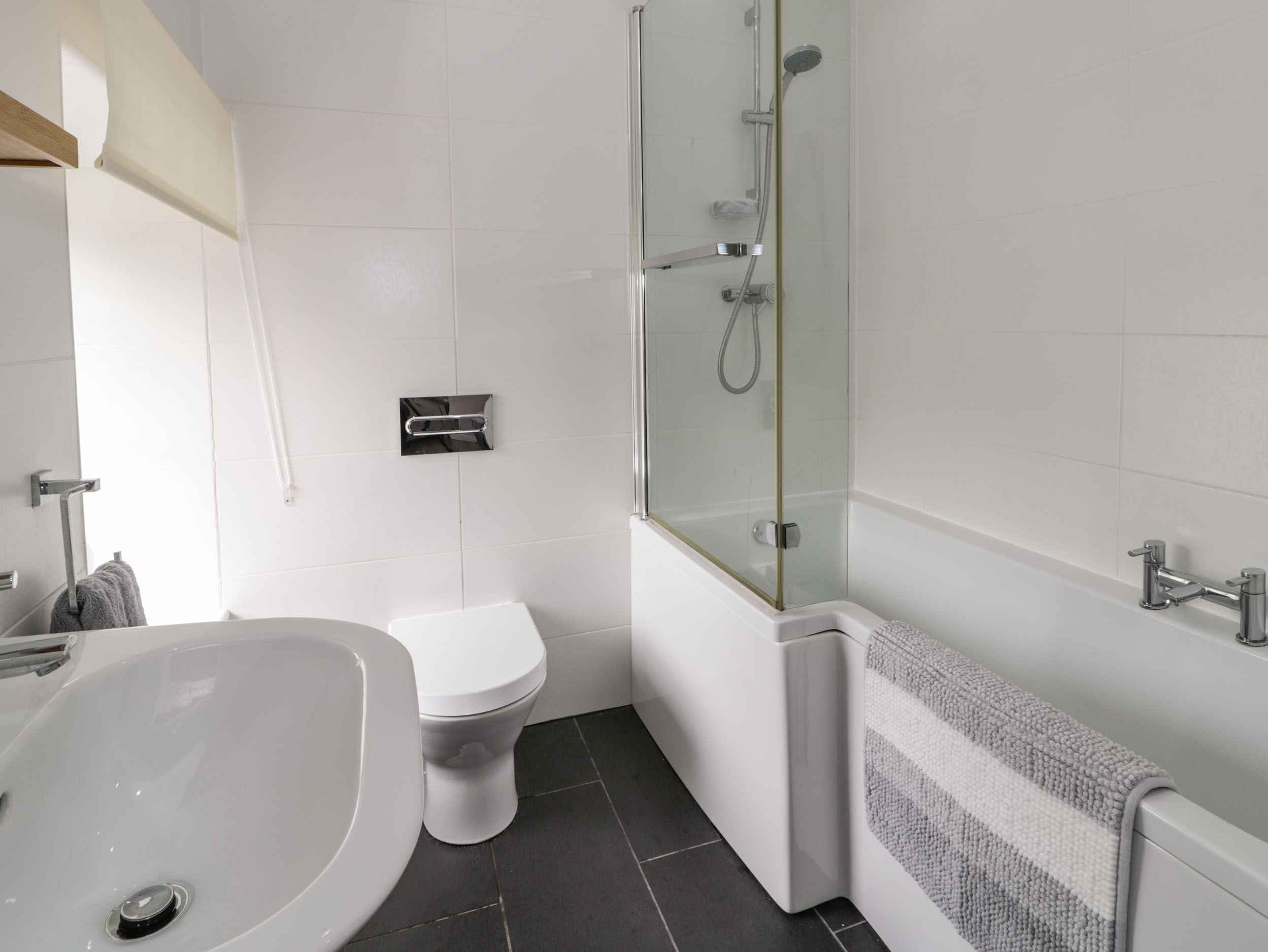 Amenities Underfloor heating throughout from air source heat pump. Electric oven, induction hob, microwave, fridge/freezer, washer/dryer, dishwasher, Nespresso vertuo coffee machine + selection of capsules. DAB Radio, Bluetooth speaker, hair-dryer. Smart TV with Freeview, Nintendo Switch, Blue Ray/DVD, WiFi, selection of books, games and DVDs. Fuel, power inc. in rent. Bed linen and towels inc. in rent. Travel cot and Highchair available. Roadside parking opposite cottage. Enclosed garden with AstroTurf, patio and furniture. One small to medium well-behaved dog welcome at an additional £20 per stay; please note: dogs are not permitted on the furniture or upstairs (there is a retractable stair gate for guests to use. Please contact us with the size/breed and age of dogs first if you wish to take more than one. Sorry, no smoking. Shop and pub 0.1 miles, beach 2.6 miles. Note: There are five steps up to a raised garden area, care should be taken, and children are to be supervised. Note: Only Monday and Friday changeovers are accepted