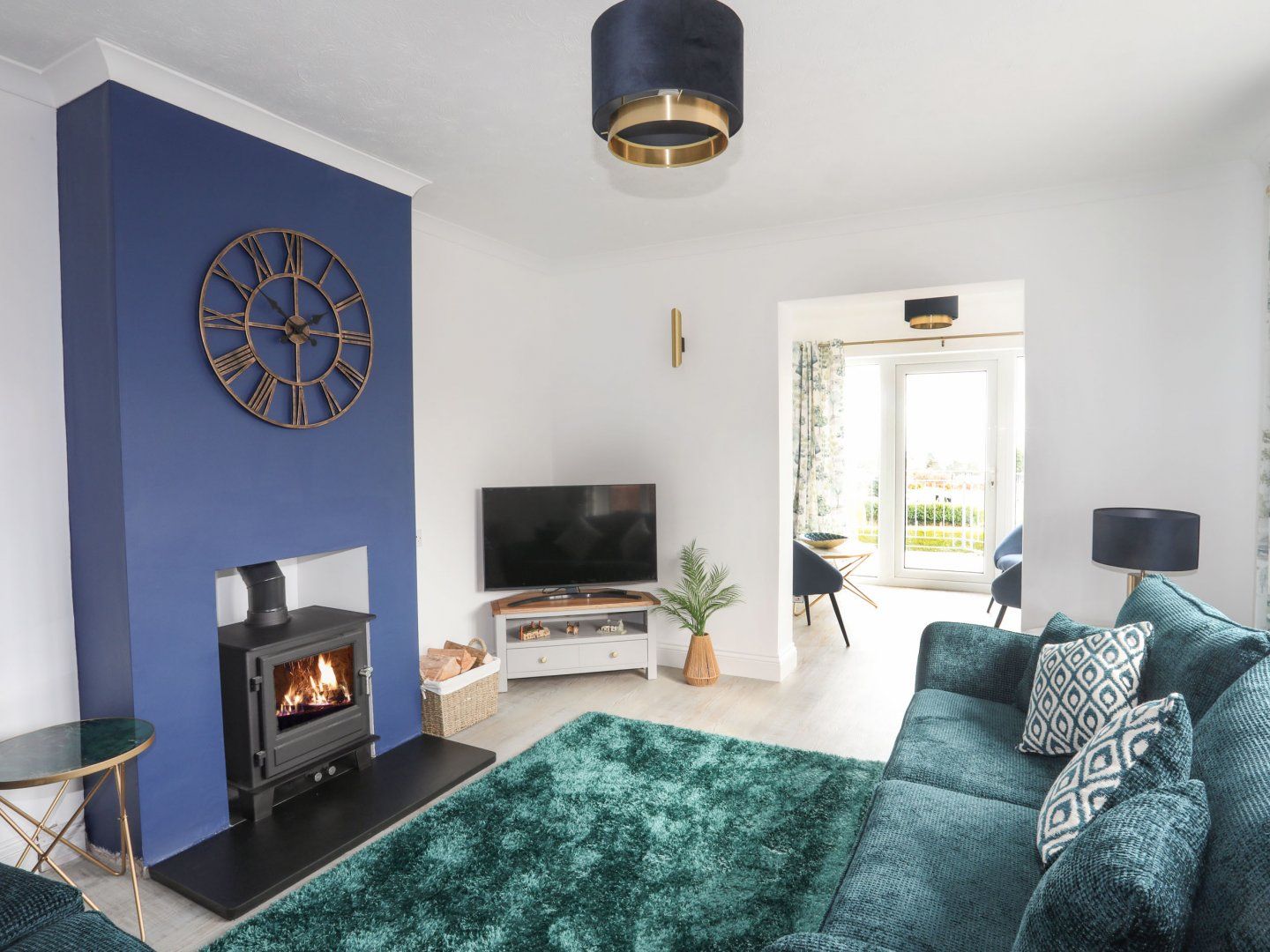 Amenities Storage heaters. Electric oven and hob, microwave, fridge/freezer, washing machine. Smart TV, TV, WiFi. Fuel, power and starter for woodburning stove inc. in rent. Bed linen and towels inc. in rent. Travel cot please bring own mattress and bedding, stair gate and highchair available. Off-road parking available. Rear garden with lawn, balcony with bistro table and chairs. One well-behaved dog welcome. Sorry, no smoking. Shop 0.5 miles, pub 0.1 miles, beach 0.8 miles.