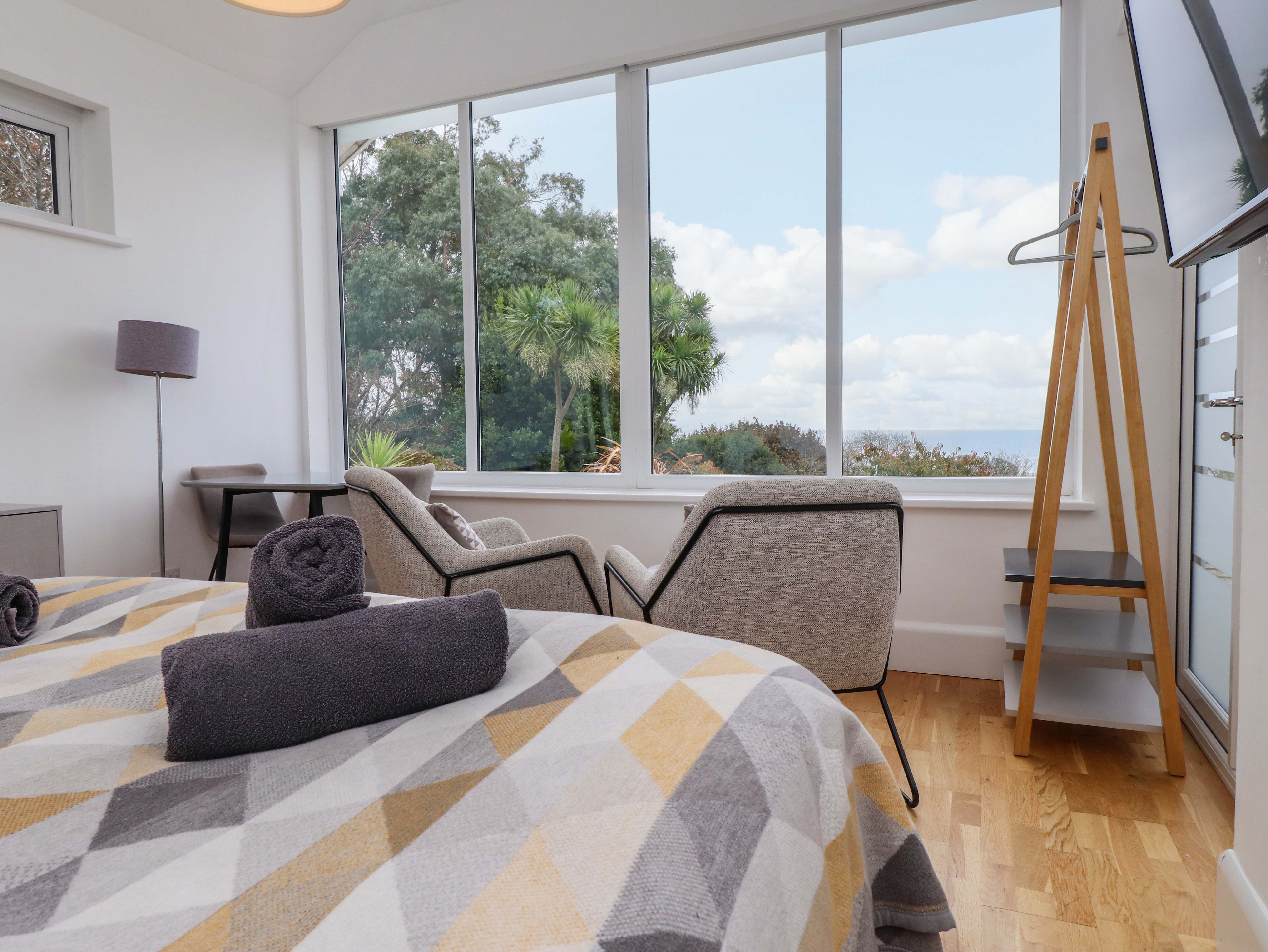 Holiday home Summer Room consists of a kitchenette with a fridge, coffee maker, kettle, and toaster, a studio-style bedroom with a super-king-size bed, dining area for two people, and a sitting area with Smart TV. There is a shower room with a walk-in shower, basin, heated towel rail, and WC. Outside, there is a non-enclosed garden with terrace, patio, lawn, and furniture, with private, off-road parking available for one car. Within 0.1 miles, you will find a shop and pub, and within 0.4 miles, a beach. Sorry, no pets and no smoking. WiFi, fuel, power, bed linen, and towels are all inc. in rent. Take a spectacular break in Wales at Summer Room. Note: The room is attached to the owner’s house. Note: A breakfast pack is provided by the owner each day. Note: No children allowed.