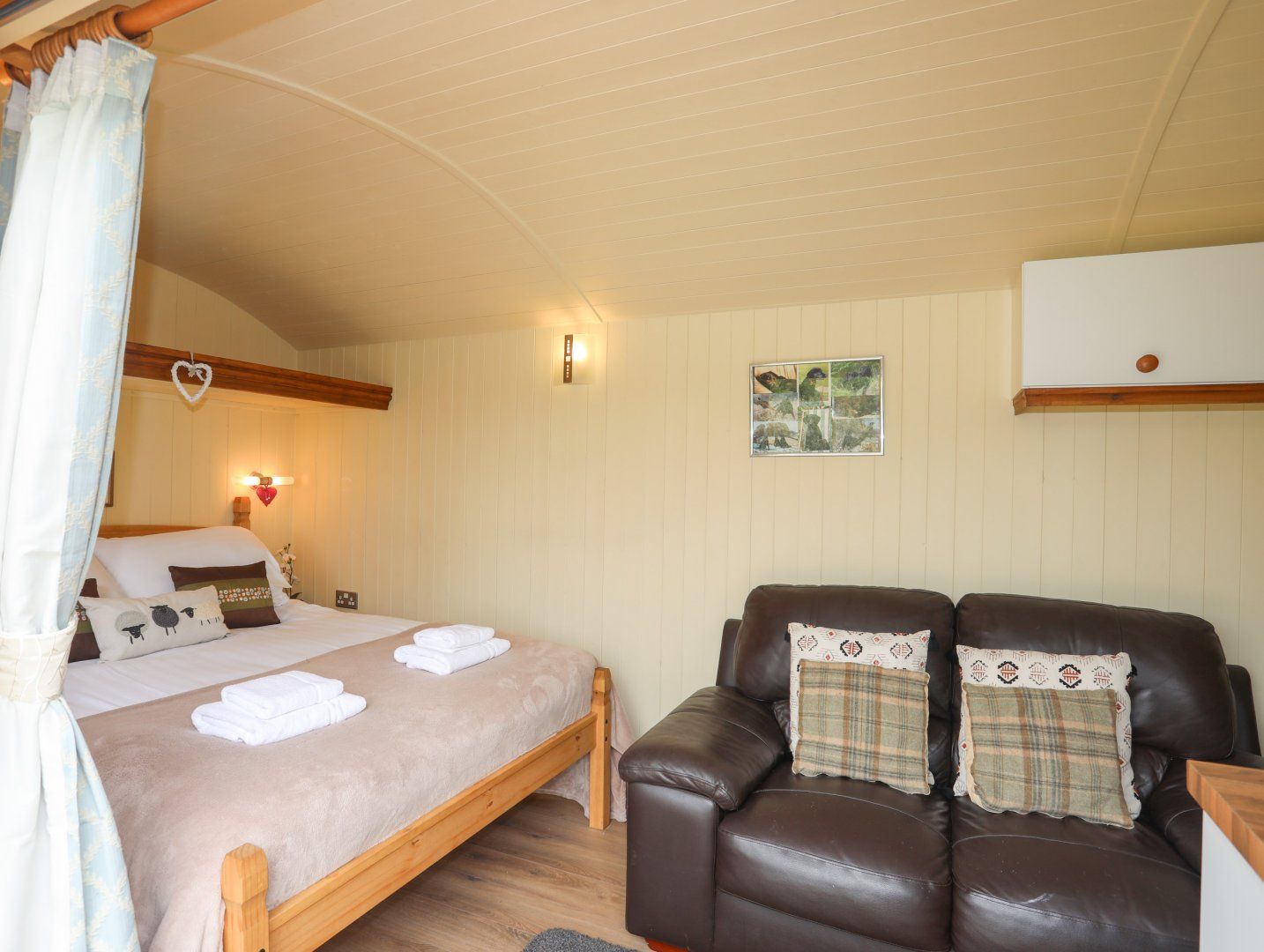Holiday home Llety'r Bugail is a charming shepherd's hut resting in Llanrug, Wales on Cil y Bont Caravan Park. Hosting one double bed within the open-plan living space which also includes a kitchen and sitting area, along with a cloakroom with a chemical WC, this property can sleep up to two guests. There is also a private decked terrace with a table and chairs, barbecue and secure bike storage, along with off-road parking. Llety'r Bugail is a perfect retreat for two in North Wales. Note: Check-in from 4pm and check-out by 10am. Note: The toilets and showers are in a shared separate block and the showers require £1 coins, £1 provides 3 minutes of hot water.