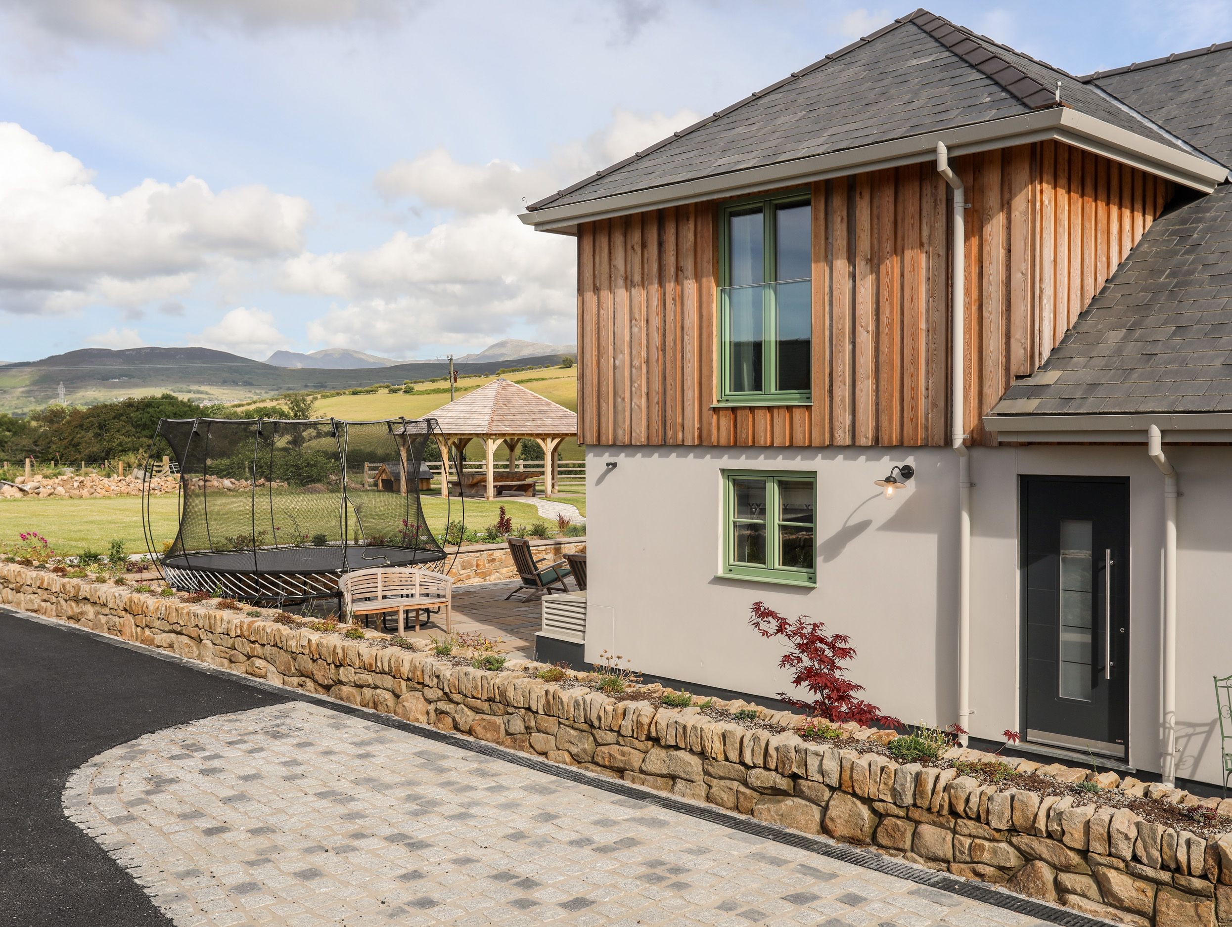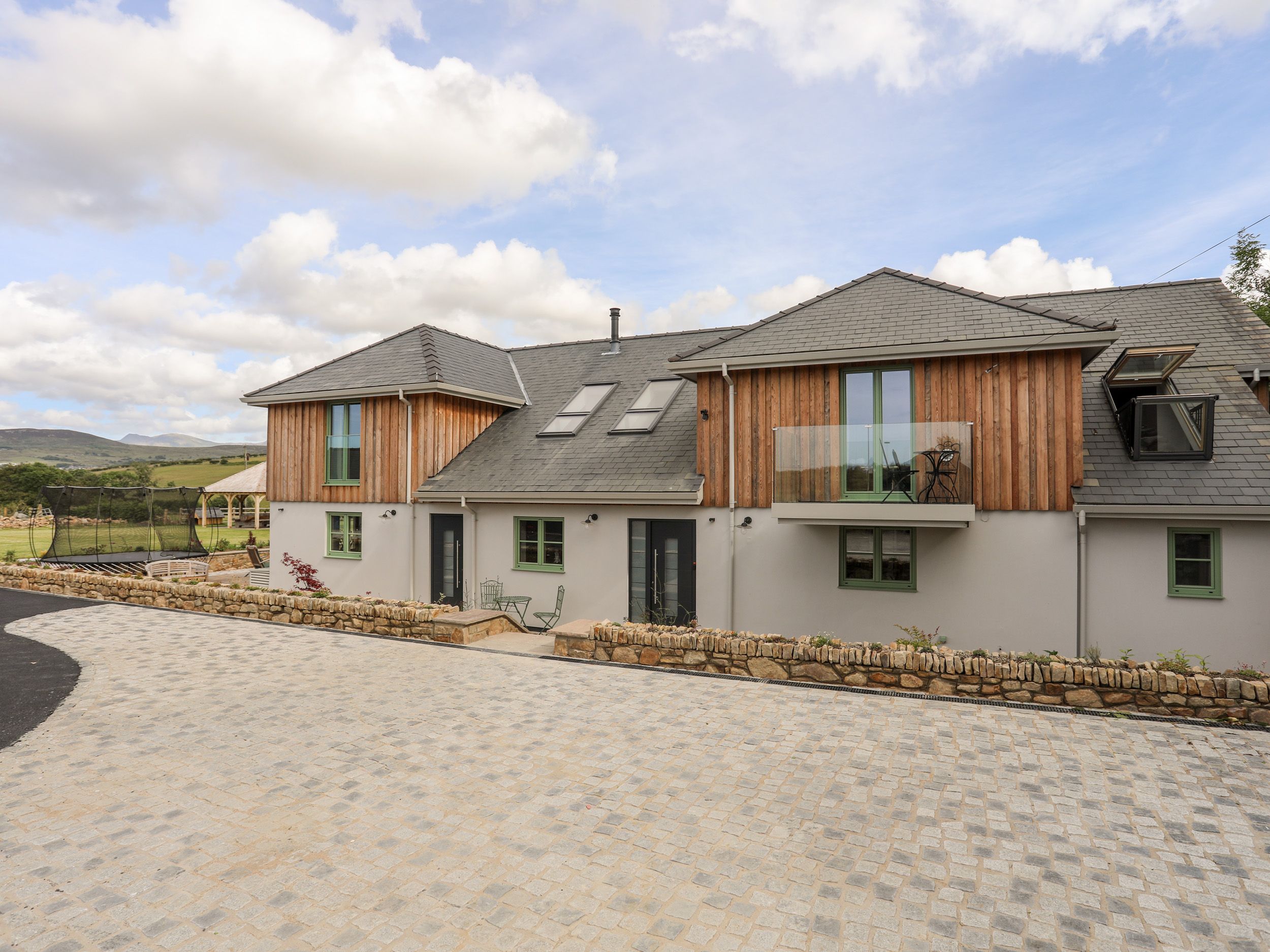 Holiday home The living areas in this property consist of a kitchen/diner with electric oven and hob, microwave, fridge/freezer, coffee machine, dining seating for eight and a woodburning stove, sitting room with woodburning stove and Smart TV, cinema room with screen and seating for ten and games room with pool table. The bedrooms consist of a king-size with balcony and en-suite shower room, a ground-floor twin (zip/link, can be king-size on request) with en-suite shower room, two twin rooms (both zip/link, can be king-size on request) with access to balconies serviced by a bathroom. Outside there is off-road parking available, a front patio with furniture and rear garden with pergola, furniture and trampoline. Within 2.8 miles there is a shop and 1.5 miles a pub. Sorry, no smoking. WiFi, fuel, power, starter for woodburning stove, bed linen and towels are all included in the price. Note: Caretaker lives on grounds. Rynys is a wonderful setting for families looking to escape to the Welsh countryside. Note: A single bed available in one of the twin rooms for added flexibility.