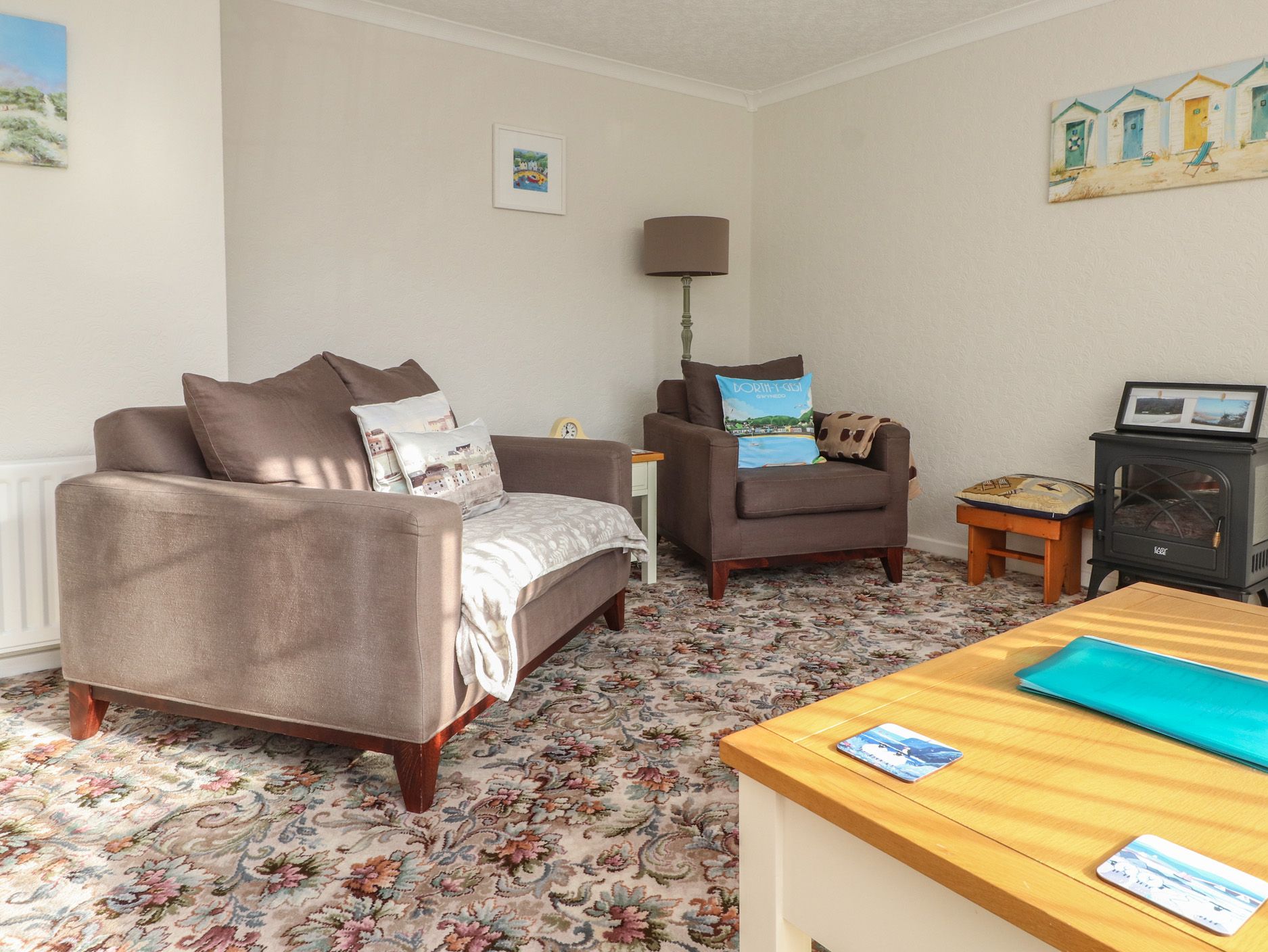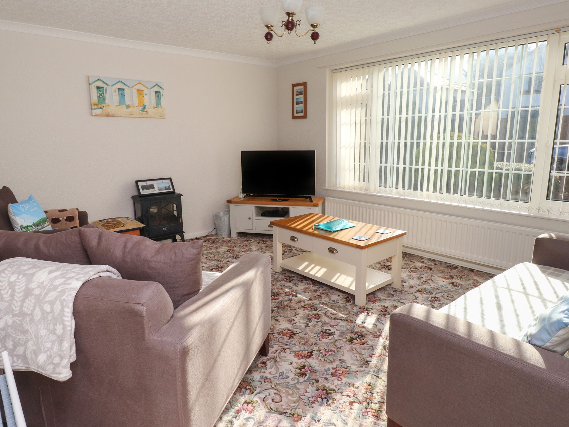 Amenities Oil central heating. Double oven, electric hob, microwave, fridge, freezer, washing machine. Smart 43" flatscreen TV, WiFi, DVD player, DVDs. Fuel and power inc. in rent. Bed linen inc. in rent. Off-road parking on private driveway for up to 3 cars. Enclosed, rear garden with patio, gravel, and furniture. Two well-behaved dogs welcome. Sorry, no smoking. Shop 0.1 miles, pub 0.3 miles, beach 0.7 miles. Note: Extra £20 charge per dog. Note: EV charging is prohibited