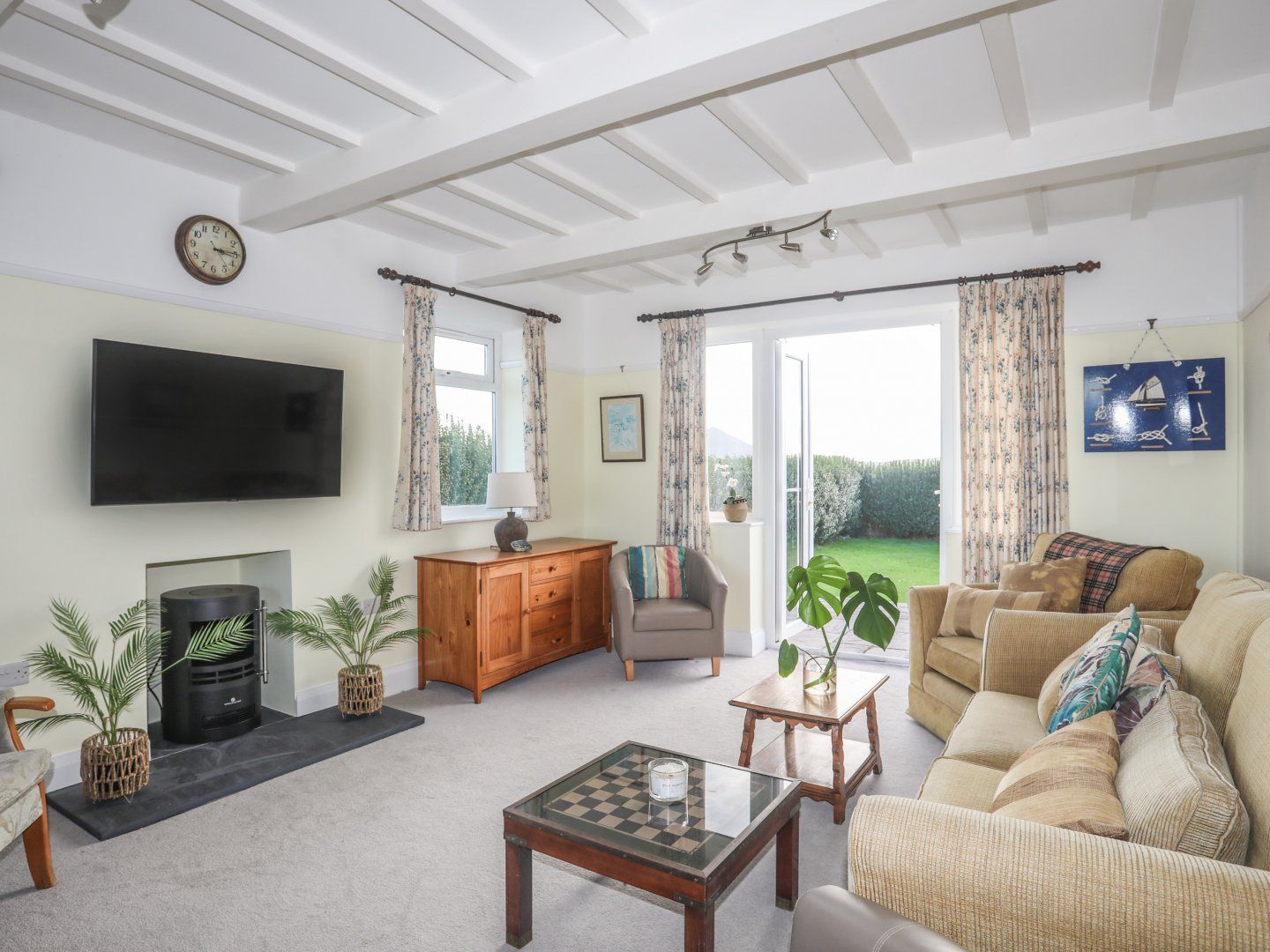 Holiday home The living areas in the property consist of a kitchen equipped with electric Everhot range, electric oven and hob, microwave, fridge/freezer, washing machine and a dishwasher, a sitting room with Smart TV and a games room with table tennis. The bedrooms consist of a king-size (zip/link, can be twin on request), a twin with en-suite shower room, a twin and a single, along with a bathroom, a cloakroom, and a ground-floor wet room. Outside there is an enclosed rear garden with lawn, patio, picnic bench, furniture, and a barbecue, as well as off-road parking for two cars. Within 0.3 miles you will find a shop, within 0.8 miles, a pub and within 0.3 miles, a beach and please note that this is a non-smoking property. WiFi, fuel, power, bed linen and towels are all included in the price. Hilltop is a stunning property to explore the surroundings of Gwynedd. Note: Check-in from 4pm, check-out at 10am
