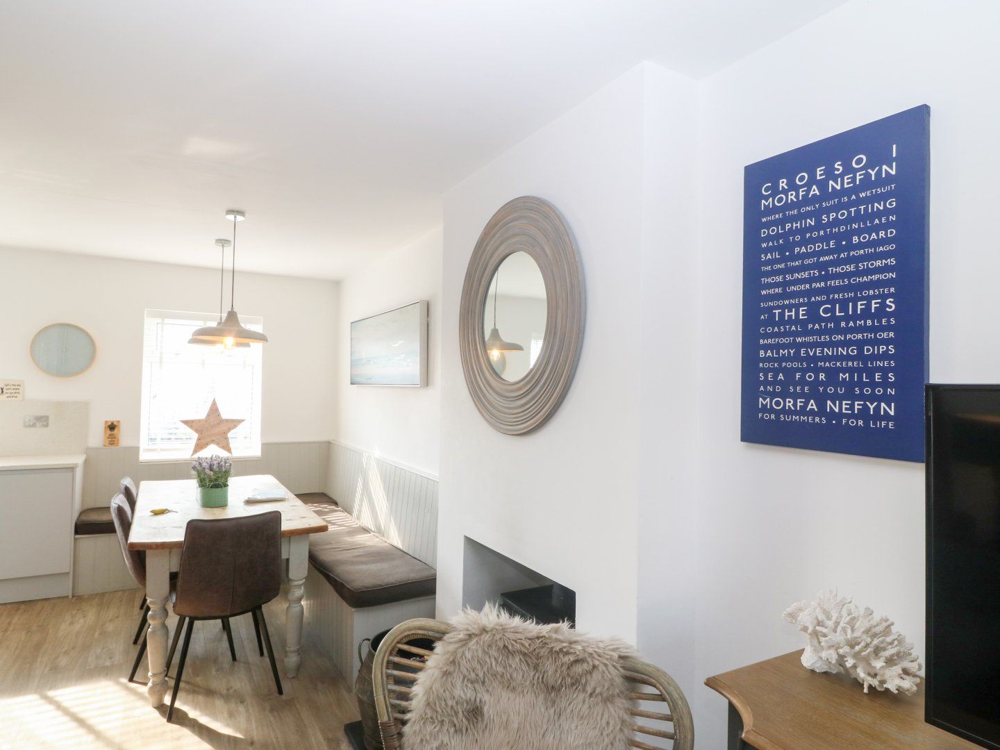 Amenities Central heating. Electric oven and hob, microwave, fridge/freezer, washing machine, dishwasher. 5 x Smart TV, WiFi, table tennis. Fuel, power, and starter pack for woodburning stove inc. in rent. Bed linen and towels inc. in rent. Private driveway for 1 car with additional roadside parking. Enclosed rear multi-level garden with lawn, patio, furniture, sun loungers, and outdoor shower. Sorry, no pets and no smoking. Shop 0.1 miles, pub 0.4 miles, beach 0.5 miles. Note: Alternative check-in days are available on request.