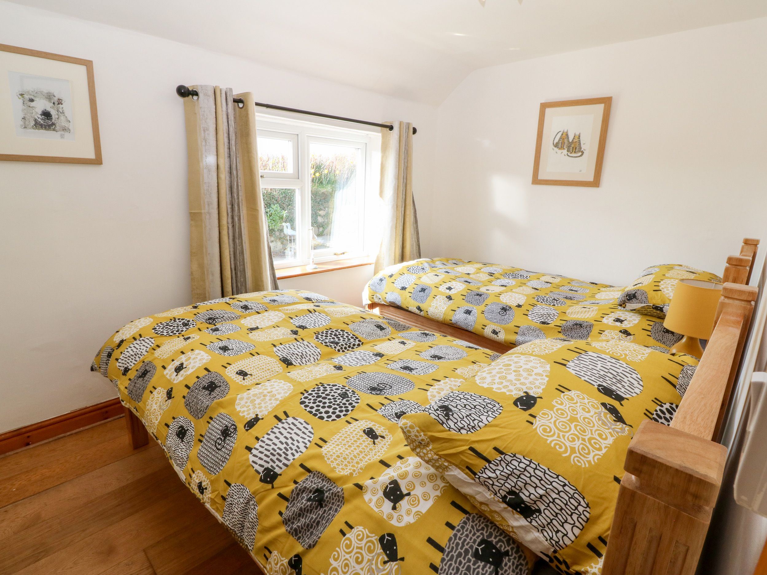 Amenities Central heating sourced from an environmentally friendly ground source heat pump. Oven and hob, microwave, fridge/freezer, dishwasher. Smart TV, WiFi. Ground source central heating, hot water and electrics inc in rent. Starter pack provided for woodburner. Bed linen and towels inc. In rent. Off-road parking for 2 cars. Lawned garden. Two well-behaved pets welcome. Highchair and travel cot are available. Sorry, no smoking. Shop 0.7 miles, pub 0.6 miles, beach 1.2 miles. Please note: This property is unsuitable for wheelchair users. Please note: As the garden is not fully enclosed and the property is surrounded by fields with sheep and lambs, dogs must be kept on leads. Please note: As the garden is not fully enclosed, young children must be supervised when in the garden.