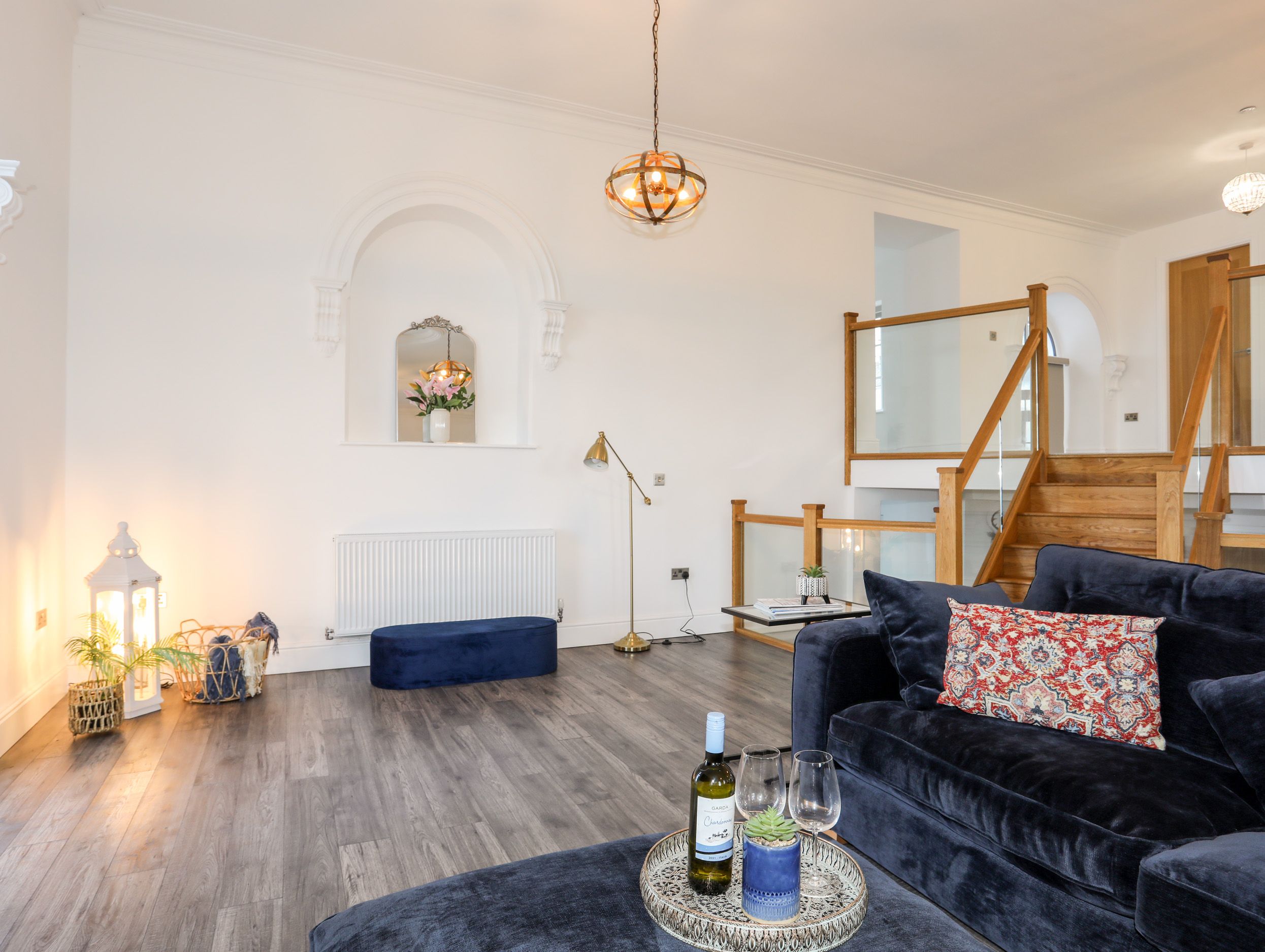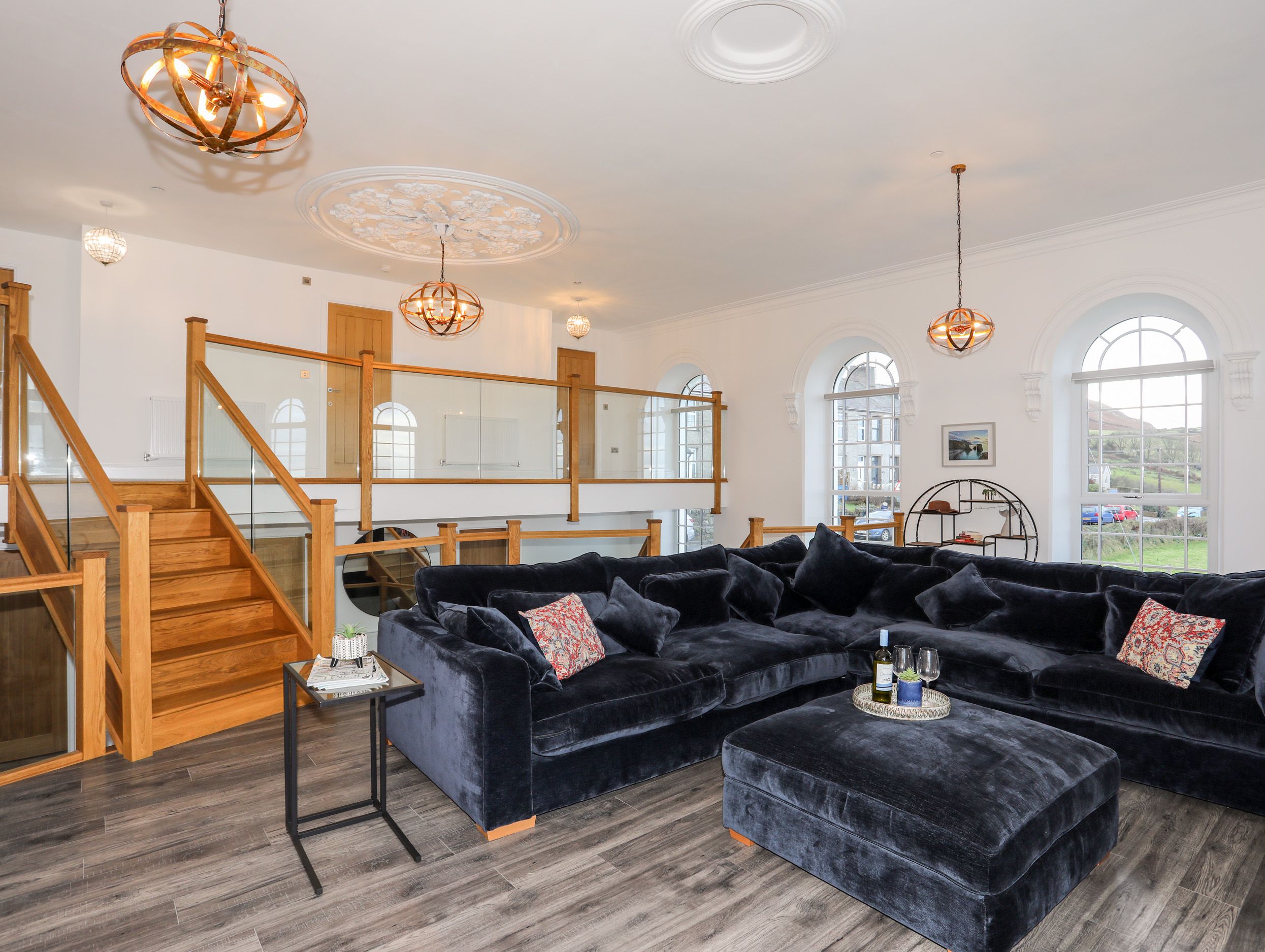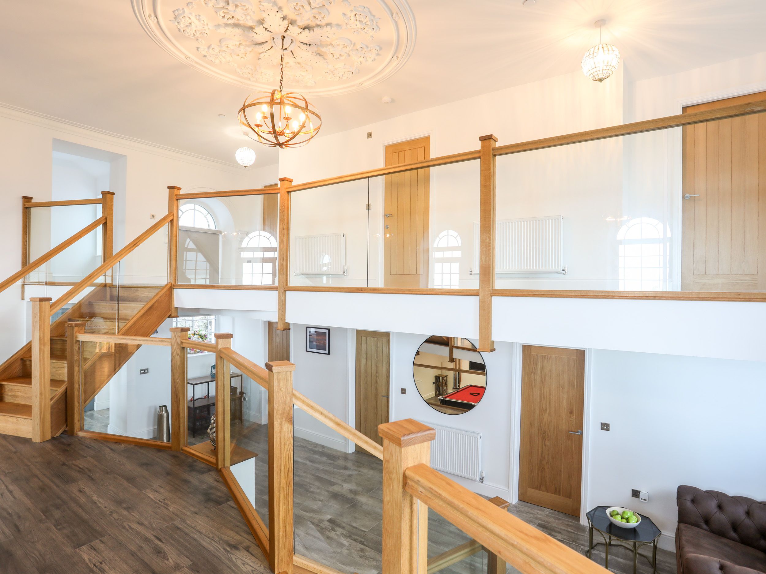 Accomodation Details Over three floors. Four bedrooms: 1 x second-floor family room with double bed,TV and en-suite walk-in shower, basin, and WC, pull-out sofa bed that sleeps two and a trundle bed that also sleeps 2. 2 x doubles, 1 x ground-floor double bunk. Ground-floor bathroom with freestanding bath, shower over, basin and WC. Second-floor shower room with walk-in shower, basin and WC. Open-plan living space with kitchen, dining and sitting area with balcony. Utility. Sitting room. First-floor sitting room. Lower-ground-floor games room