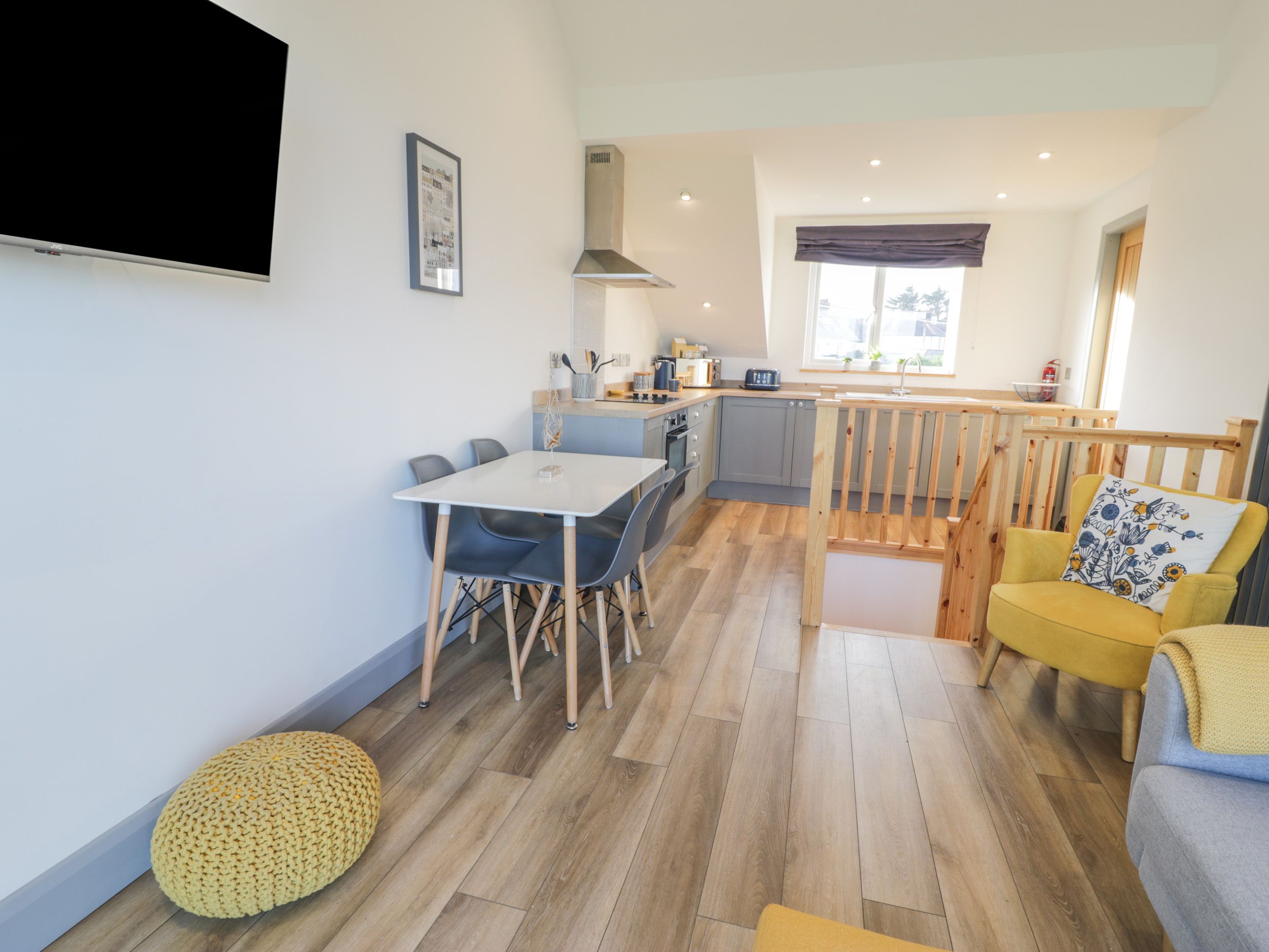 Accomodation Details Over two floors. Two bedrooms: 1 x king-size double with Smart TV, 1 x ground-floor twin with Smart TV. Ground-floor shower room with walk-in shower, basin and WC. First-floor open-plan living space with kitchen, dining and seating area with balcony