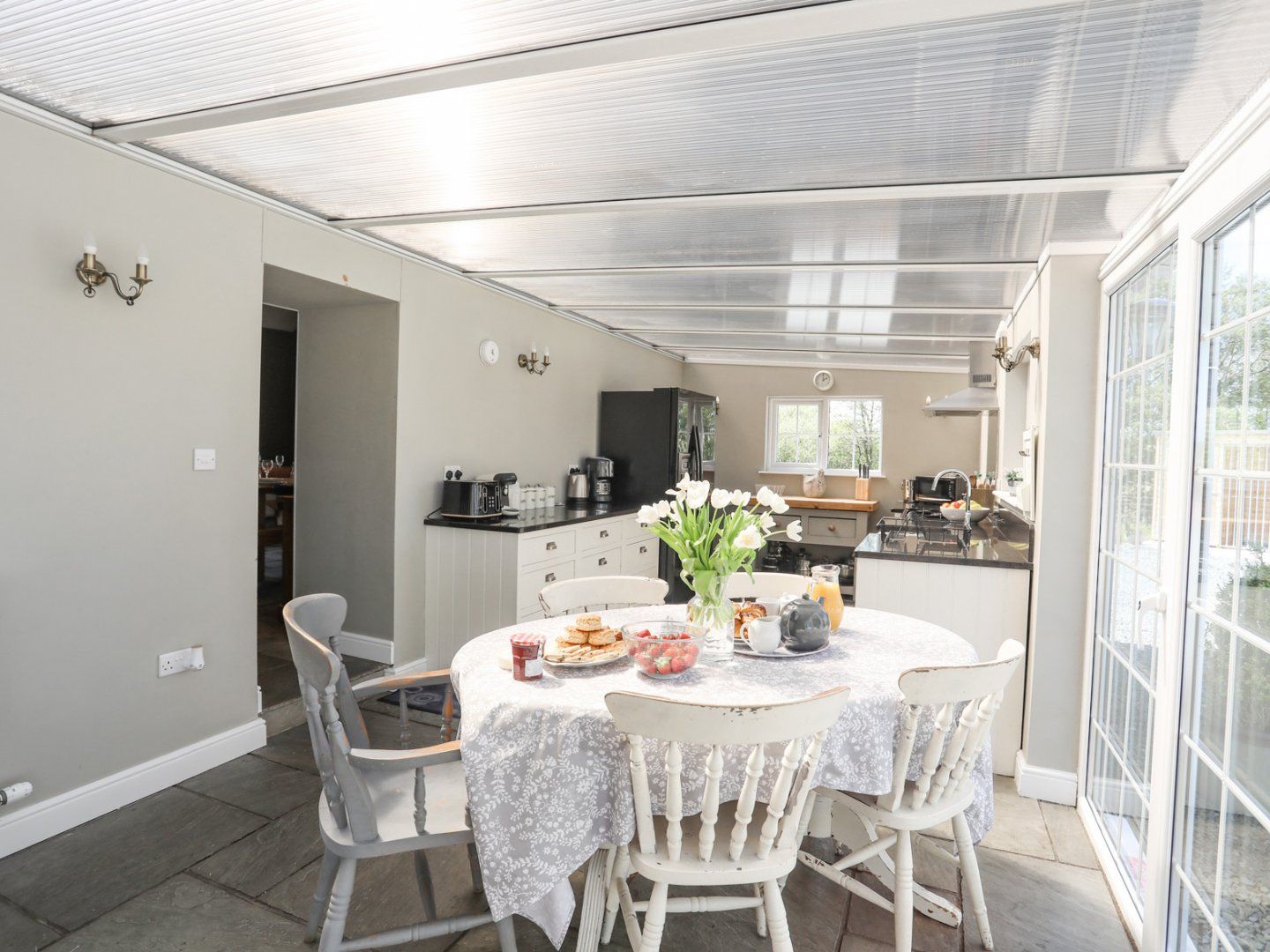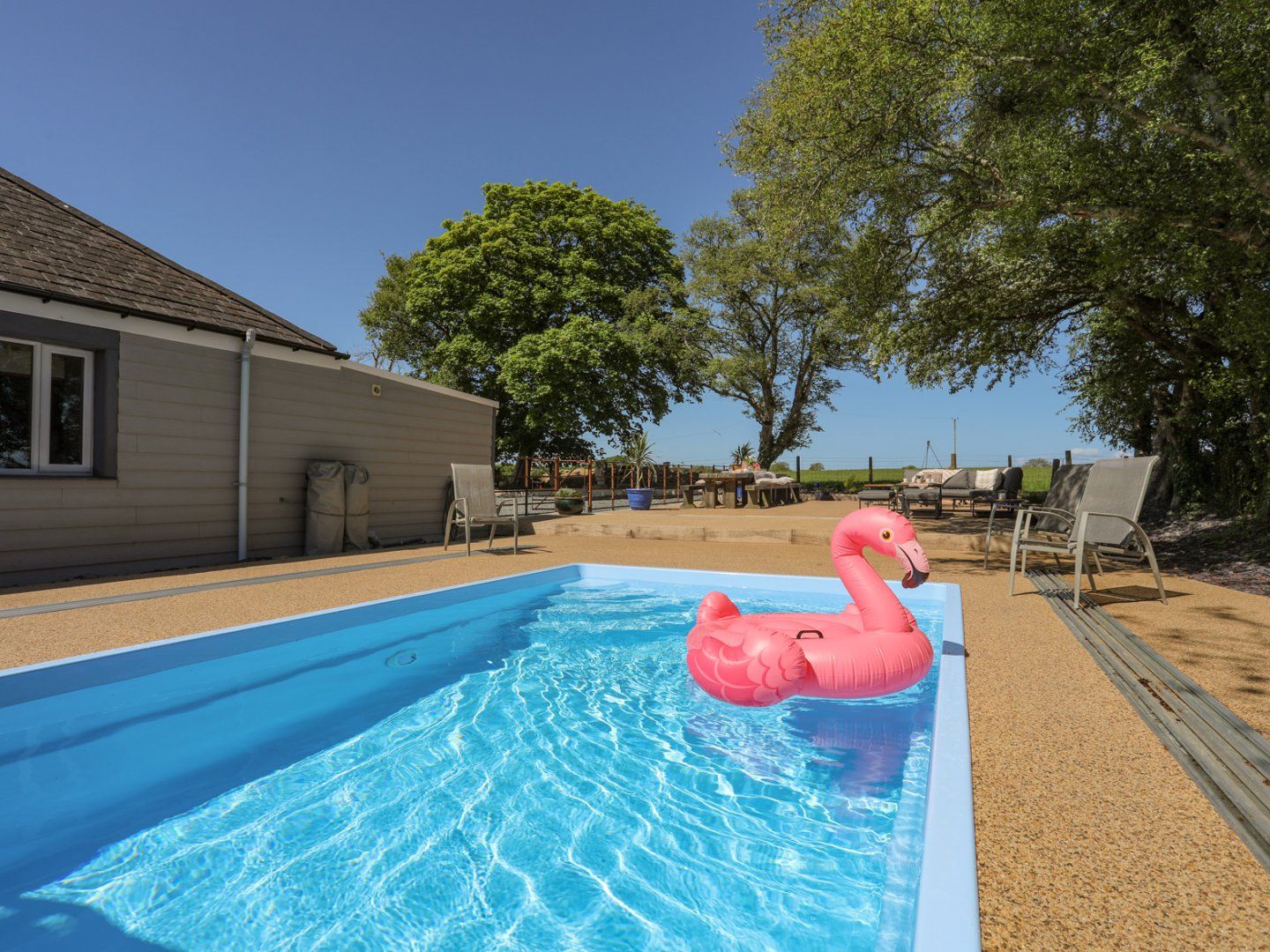 Amenities Central heating. Dual fuel Range cooker with electric oven and gas hob, microwave, American fridge/freezer, washing machine, tumble dryer, dishwasher, wine fridge. Tassimo coffee machine and coffee percolator. 4-slice toaster. 2 x Smart TVs, DVD player, selection of books and games, WiFi. Travel cots and high chairs provided. Bed linen and towels inc. in rent. Off-road parking for 8 cars. Enclosed rear garden with furniture, BBQ/ Fire pit and heated indoor/ outdoor swimming pool. Initial starter pack supplied. Sorry, no smoking. 3 well behaved dogs allowed, enquire for more. Shop 2.9 miles, pub 2 miles. Note: Check-in from 4pm, check-out at 10am