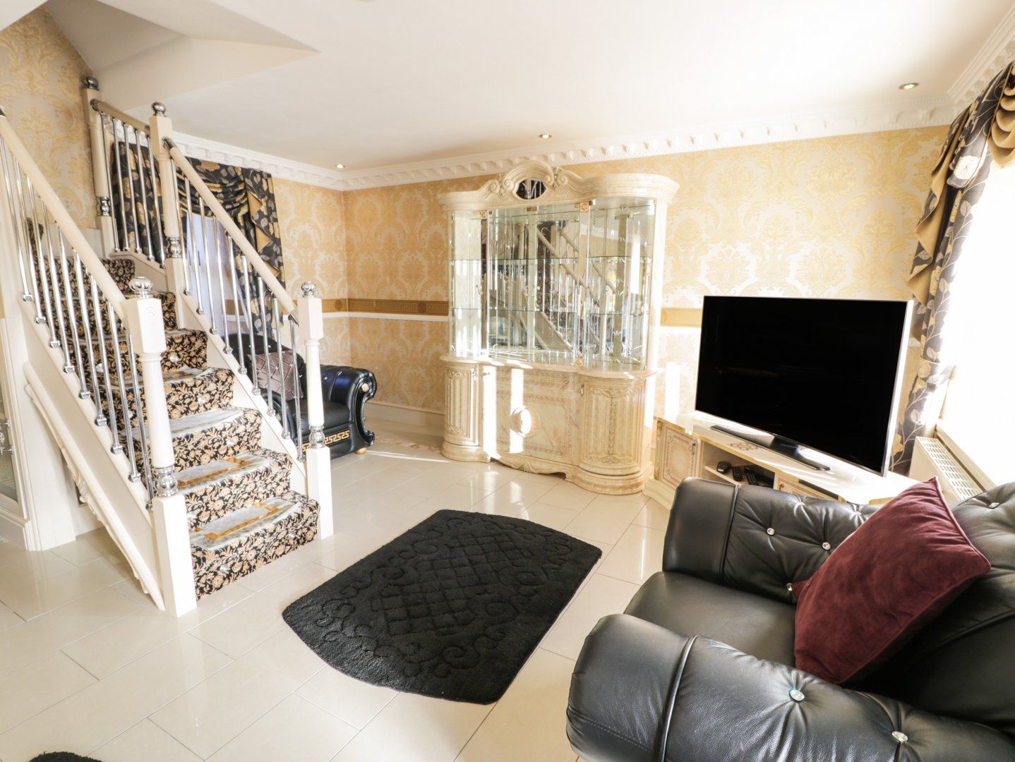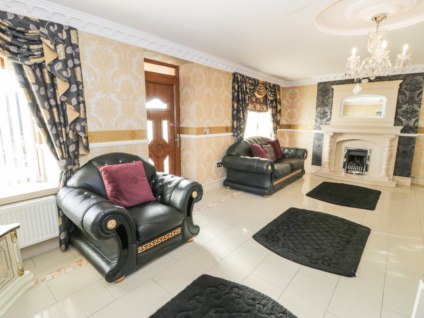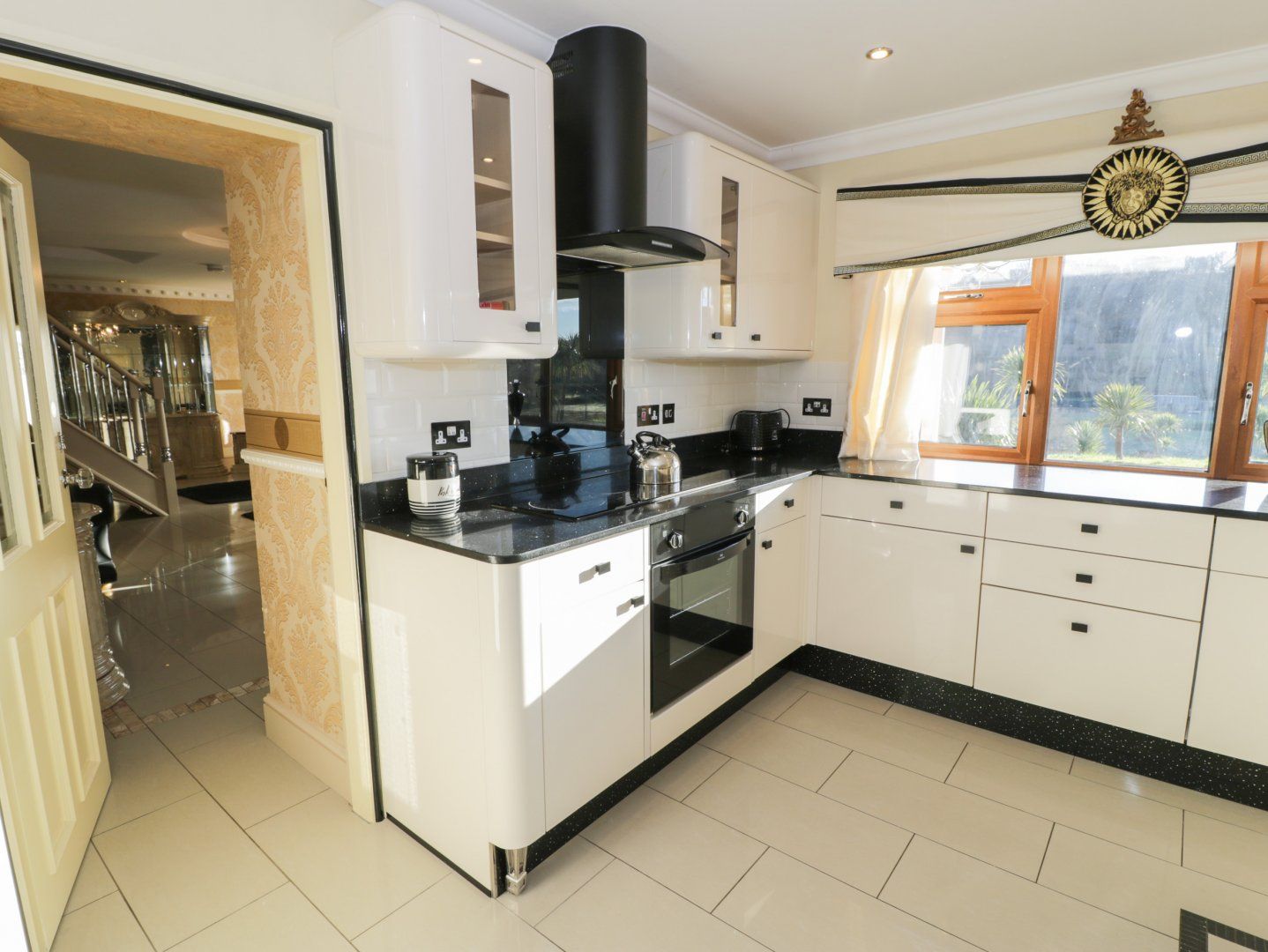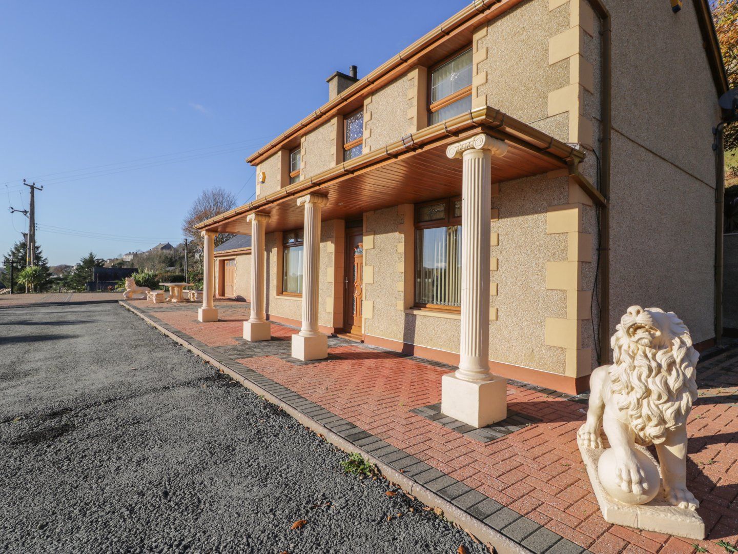 Accomodation Details Four bedrooms: 1 x ground-floor king-size with TV, open en-suite with shower, double basin, WC, washing machine, tumble dryer, and fridge/freezer, 1 x double with en-suite walk-in shower and basin, 1 x double, 1 x single. Bathroom with bath, basin, and WC. Kitchen/diner with TV. Sitting room with gas fire