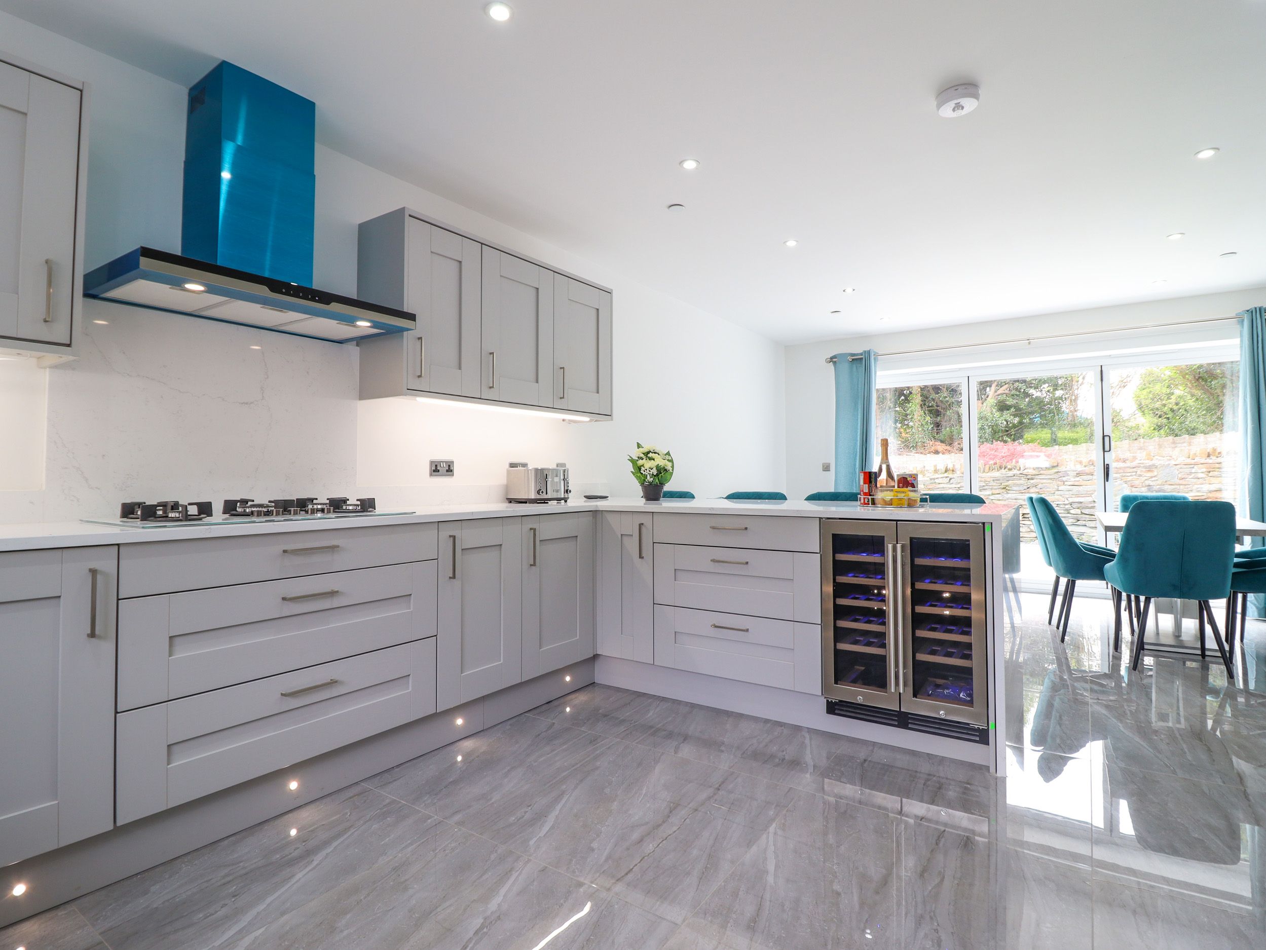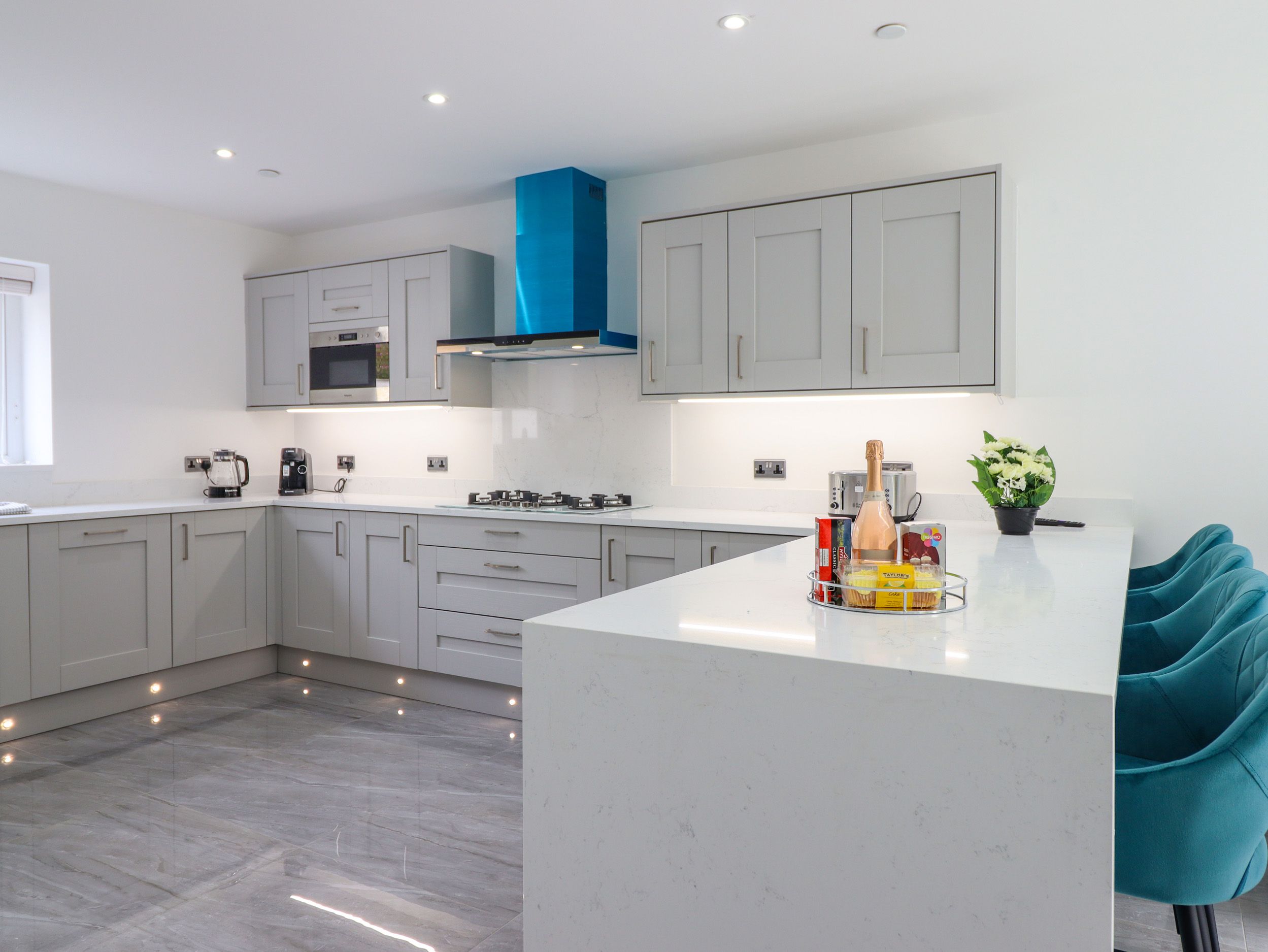 Amenities Underfloor heating. 2 x electric oven, gas hob, microwave, fridge/freezer, washing machine, dishwasher, kettle, toaster, wine cooler. 6 x TV and WiFi. Fuel and power inc. in rent. Bed linen and towels inc. in rent. Highchair and travel cot available on request. Private driveway parking for 6 cars. Enclosed rear patio with furniture. Pet-friendly. Sorry, no smoking. Shop and pub 0.3 miles. Note: Pets are only allowed on the ground floor. Note: The dining table is extendable. Please note: This property only accepts either 7 nights from Saturday or 5 nights from Monday. Please note: during Peak times, property accepts only 5 or 7 night bookings