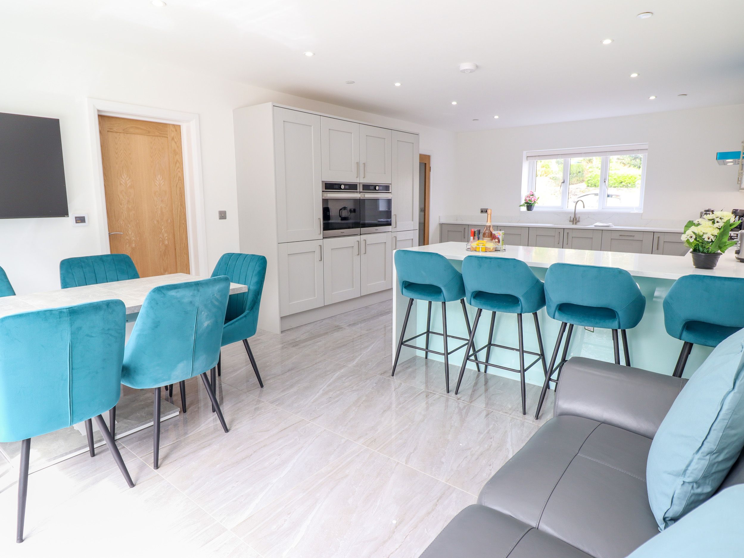 Holiday home Ty Mawr consists of an open-plan kitchen/diner with a breakfast bar with four stools, a dining table seating six (extendable), two electric ovens’, gas hob, fridge freezer, dishwasher, microwave, kettle, toaster and wine chiller. The sitting room has a Smart TV, the cloak room has a washing machine. The bedrooms consist of two zip/link super-king size beds, with en-suite walk-in showers and Smart TV's, two king-size beds with Smart TV’s, and a single bed, serviced by a family bathroom. Outside, there is a private driveway with room for six cars and an enclosed patio with furniture. WiFi, electric central heating, fuel, power, bed linen and towels are all included. Two well-behaved pets welcome (only on the ground floor), but this is a smoke-free property. Ty Mawr makes a wonderful countryside base for large family get-togethers. Note: Only accepting a minimum of three nights, only from Fri-Mon, Mon-Fri or the whole week. Note: This property has a good housekeeping bond of GBP 500. Please note: This property only accepts either 3 nights from a Friday, 5 nights from a Monday or 7 nights from a Friday Please note: during Peak times, property accepts only 5 or 7 night bookings