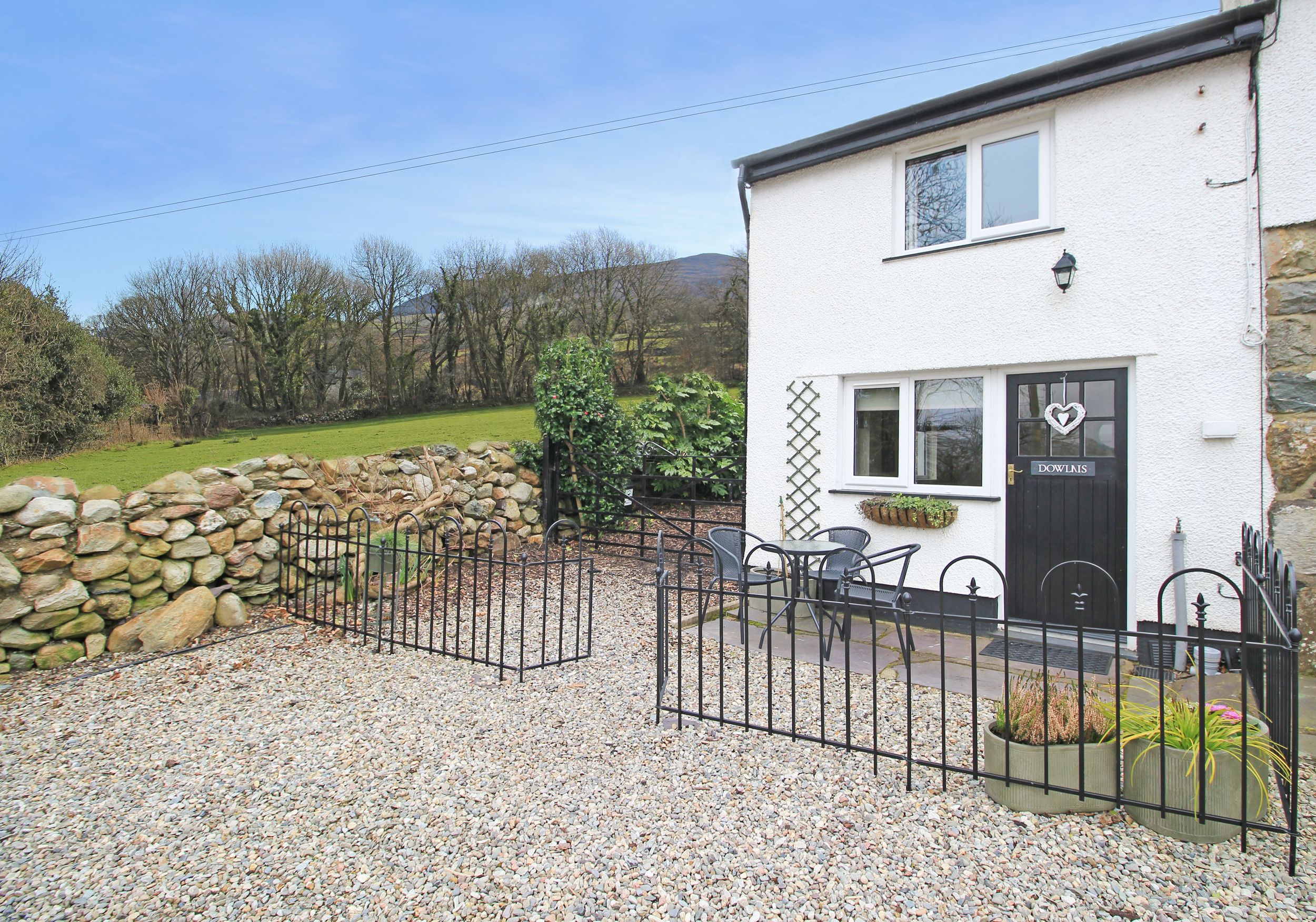Dowlais consists of a kitchen/diner with electric oven, induction hob, microwave, fridge, toaster, kettle, and dining seating for three people, along with a sitting room with electric fire and freeview TV. The family bedroom consists of a king-size and single bed with TV, serviced by a shower room. Outside, there is an enclosed front garden with graveled area and furniture, and an enclosed rear garden with lawn and furniture, along with private driveway parking for one car. Highchair and travel cot available on request. Two well-behaved pets welcome. Sorry, no smoking. You'll find a shop in 1.1 miles, pub in 1.3 miles, and river in 0.8 miles. WiFi, fuel, power, bed linen, and towels are all inc. in rent. Dowlais is a conventional base for a Gwynedd escape. Note: 20 GBP pet fee per pet. Note: Dogs to be kept under control in rear garden. Note: Step up to walk-in shower.