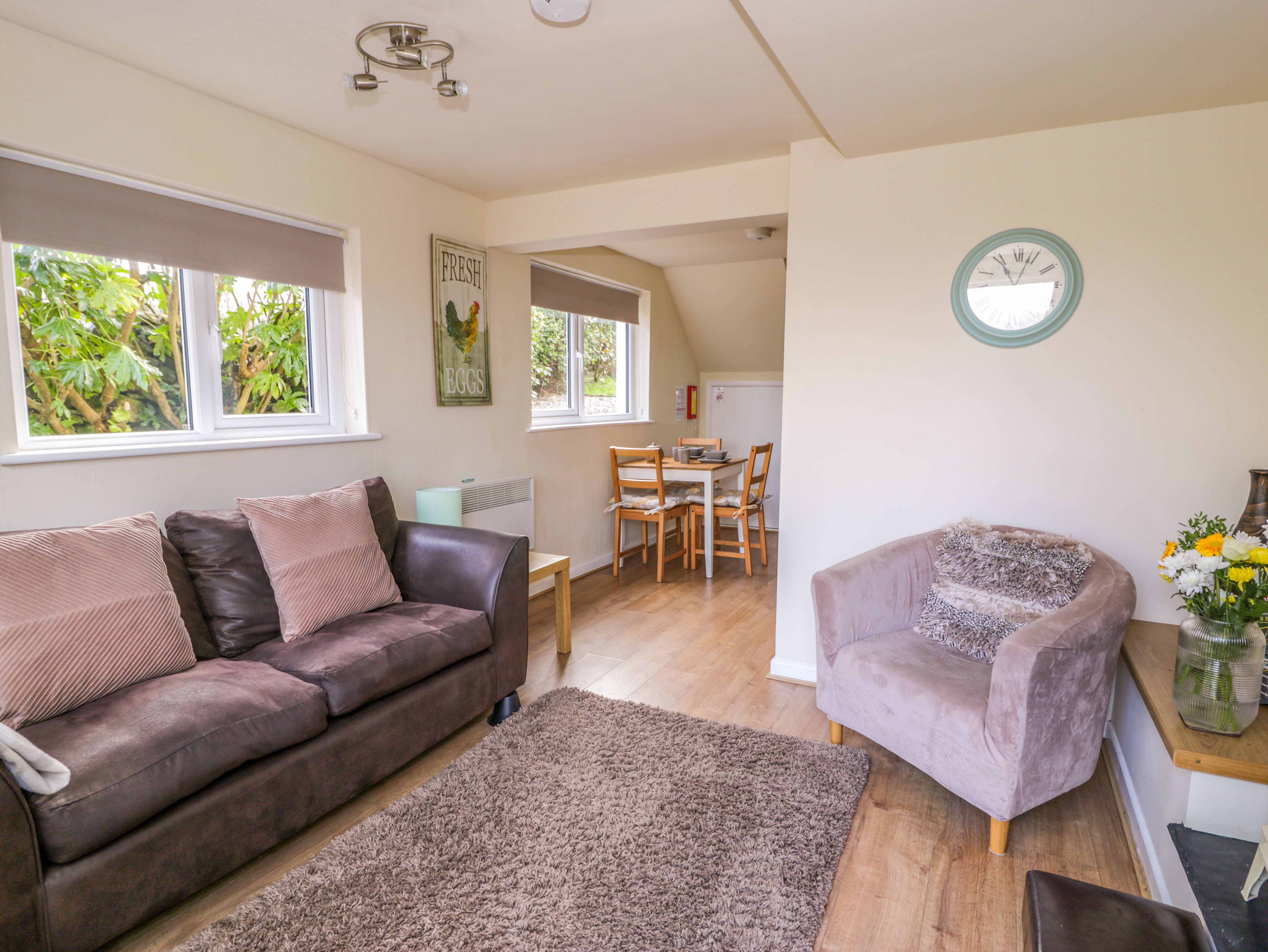 One family bedroom: 1 x king-size and 1 x single, with TV. Shower room with walk-in shower, basin, and WC. Kitchen/diner. Sitting room with electric fire