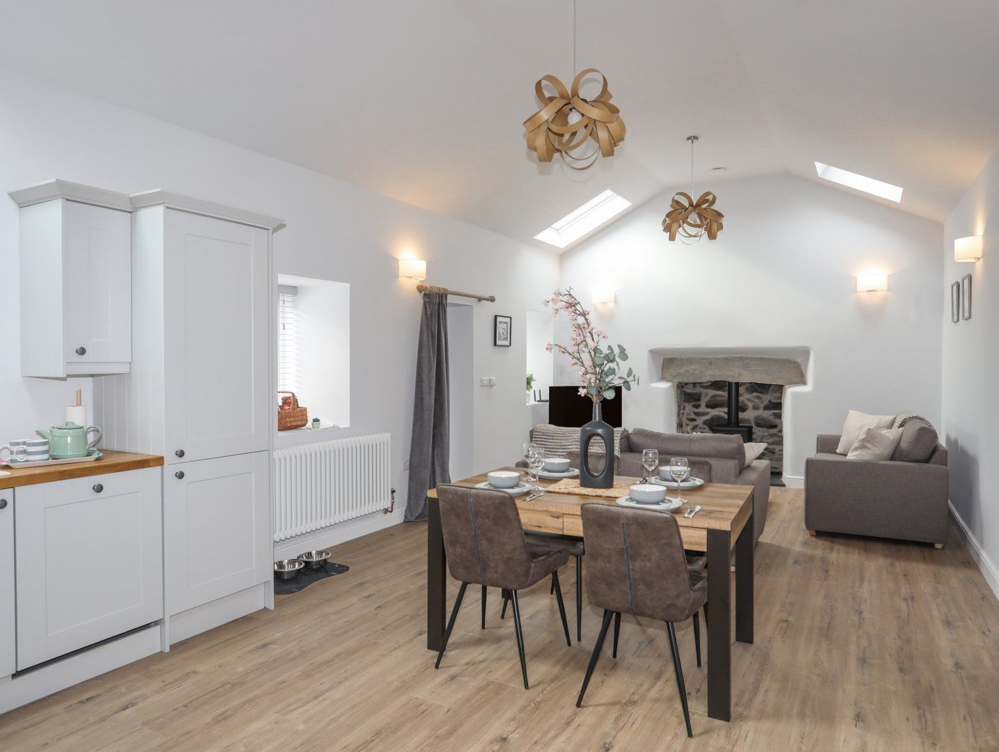 Accomodation Details Single-storey. Two bedrooms: 1 x double with en-suite walk-in shower, basin and WC, 1 x twin. Bathroom with bath, handheld shower, basin and WC. Open-plan living space with kitchen, dining area and sitting area with woodburning stove. External utility space to lock bikes etc. Summer house