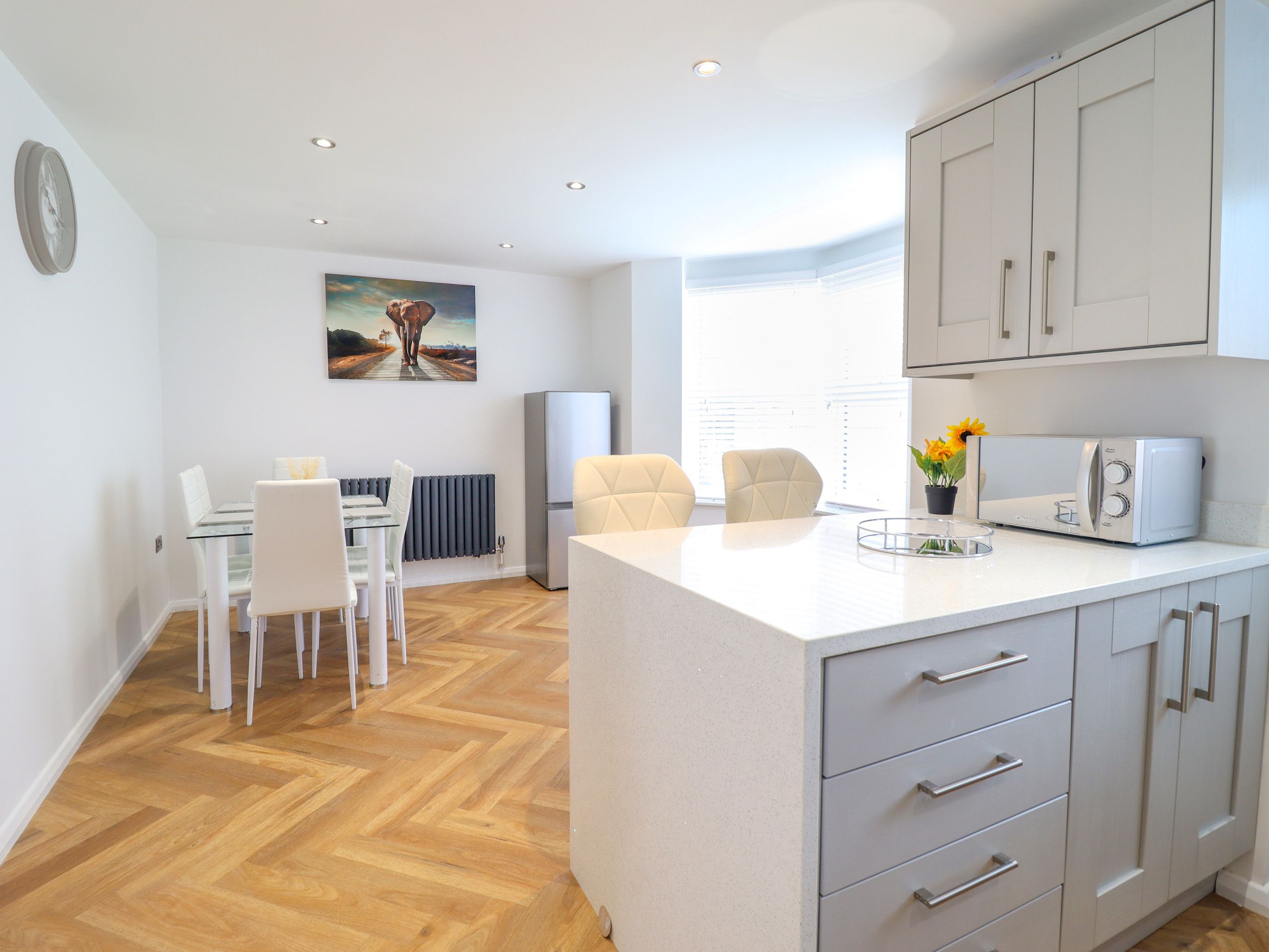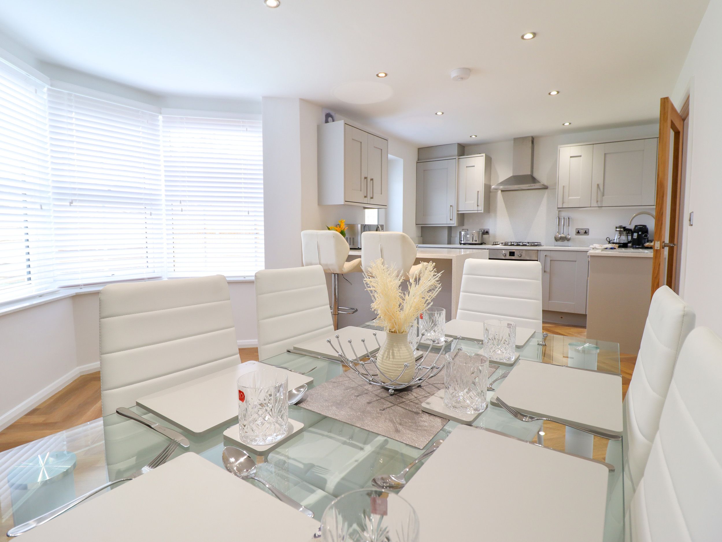 Accomodation Details Over three floors. Four bedrooms: 1 x second-floor super-king-size with TV (zip/link can be twin on request), 1 x king-size with TV and en-suite walk-in shower, basin, heated towel rail and WC, 1 x king-size with TV, 1 x king-size with TV, 1 x second-floor double. Bathroom with free standing bath, walk-in shower, basin, heated towel rail and WC. Ground-floor cloakroom with basin, heated towel rail and WC. Kitchen/diner. Utility. Sitting room