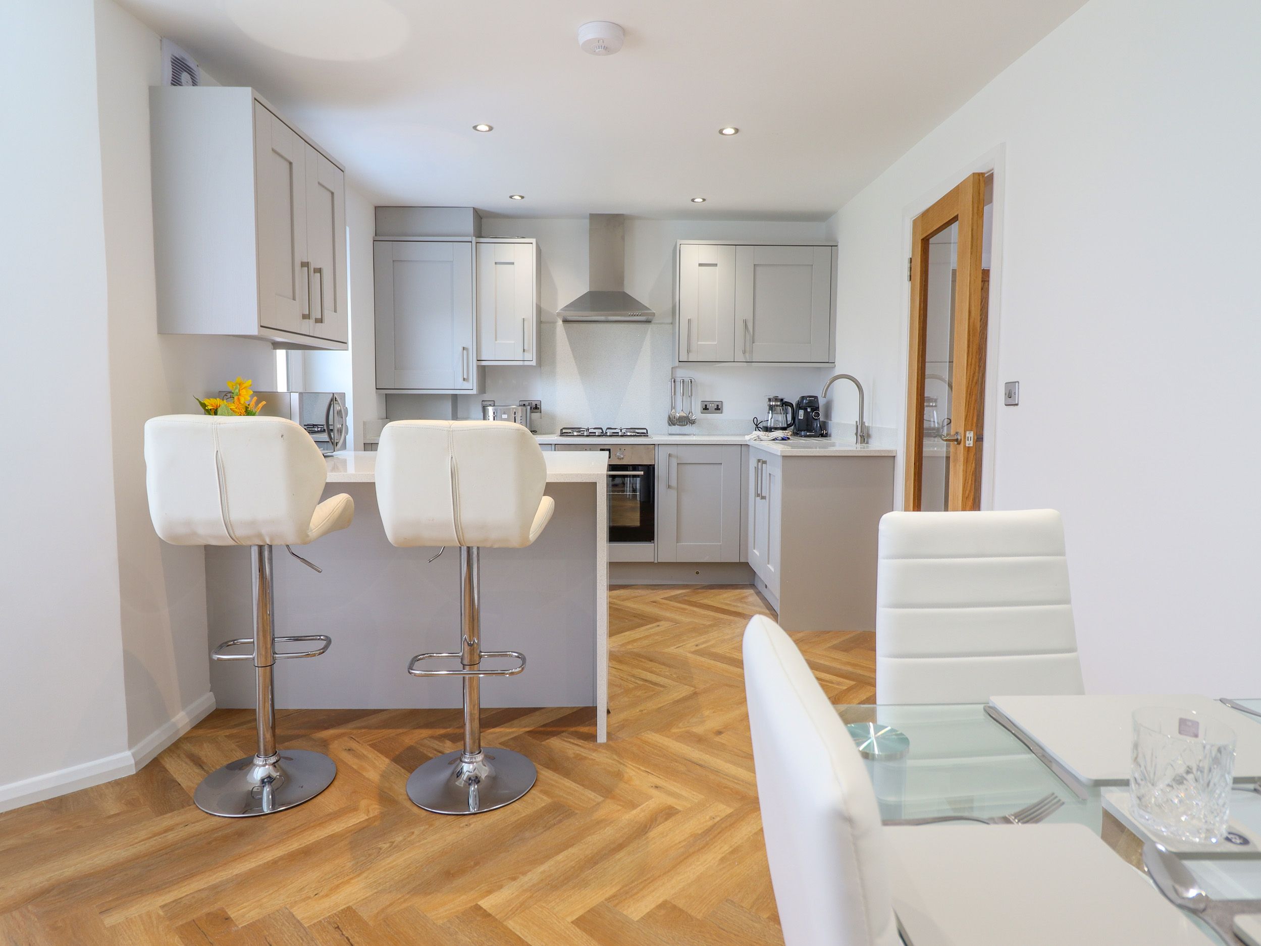 Holiday home 1 Ty Newydd consists of a kitchen/diner with dining seating for six, a breakfast bar, electric oven, gas hob, microwave, fridge/freezer, dishwasher, kettle and toaster, a utility with a washing machine, and a sitting room with a TV. The bedrooms include a second-floor super-king-size, a king-size with a TV and en-suite, a king-size with a TV and a second-floor double plus a bathroom. Outside, there is an enclosed rear garden with lawn, patio, furniture and off-road parking for three cars. Highchair and travel cot available on request. Two well-behaved pets welcome, but sorry, no smoking at this property. You can find a shop and a pub in 0.1 mile and a beach in 1 mile. WiFi, fuel, power, bed linen and towels are all included in the price. 1 Ty Newydd is wonderful spot for your stay in Wales. Note: There is only one highchair and travel cot which are shared with the property next door. This property has a good housekeeping bond of GBP500.