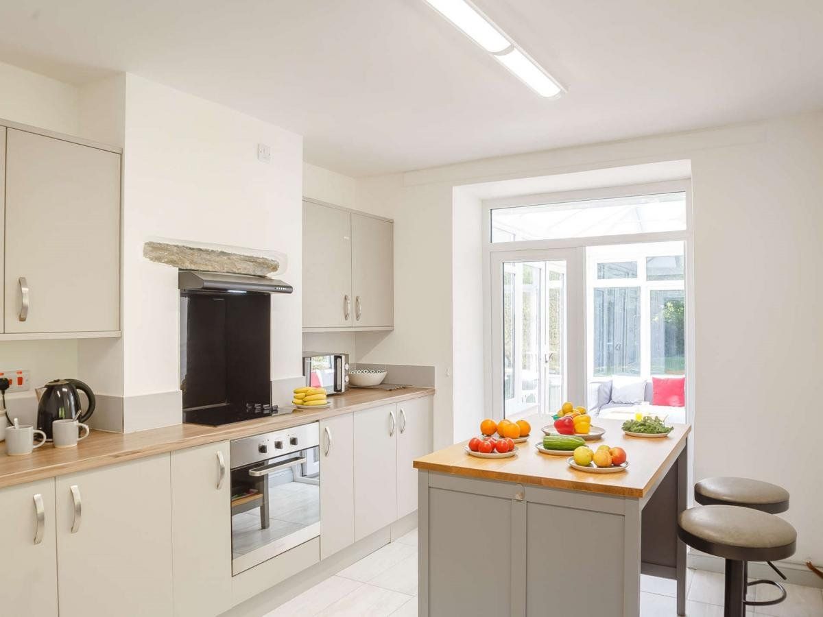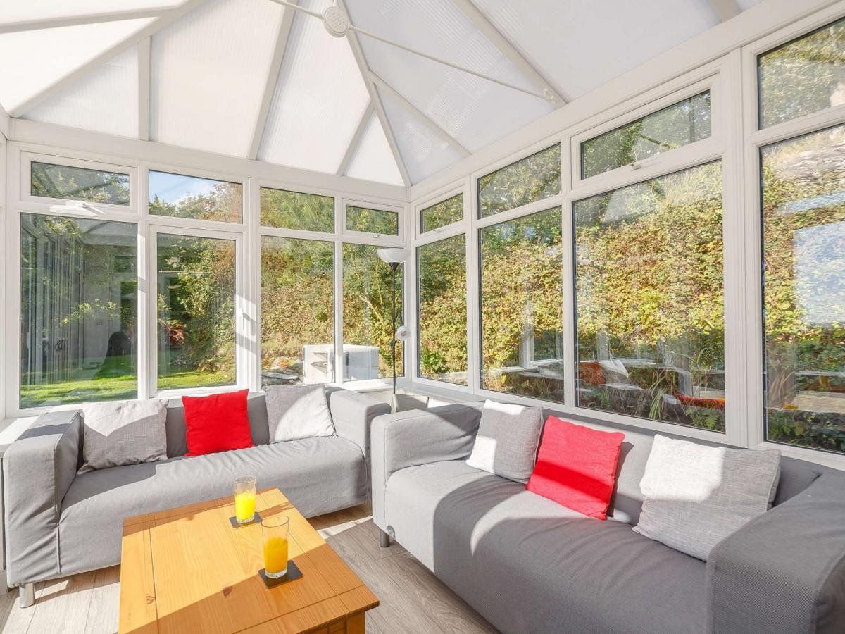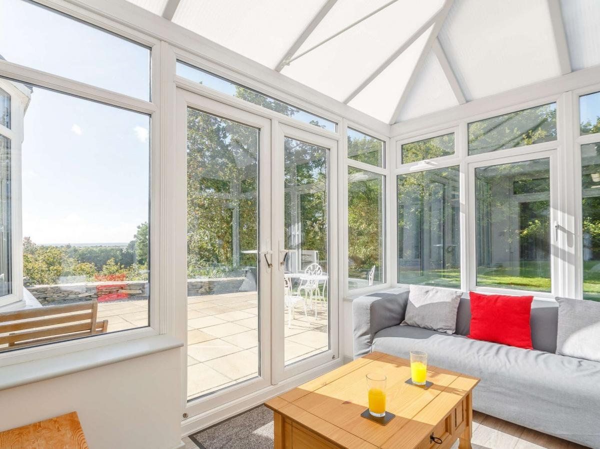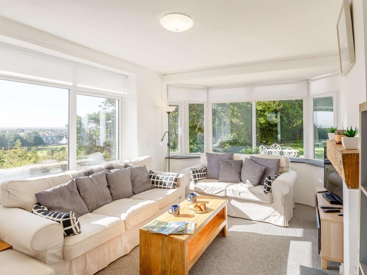 This elegant holiday home is set in an elevated position in the coastal village of Morfa Bychan.