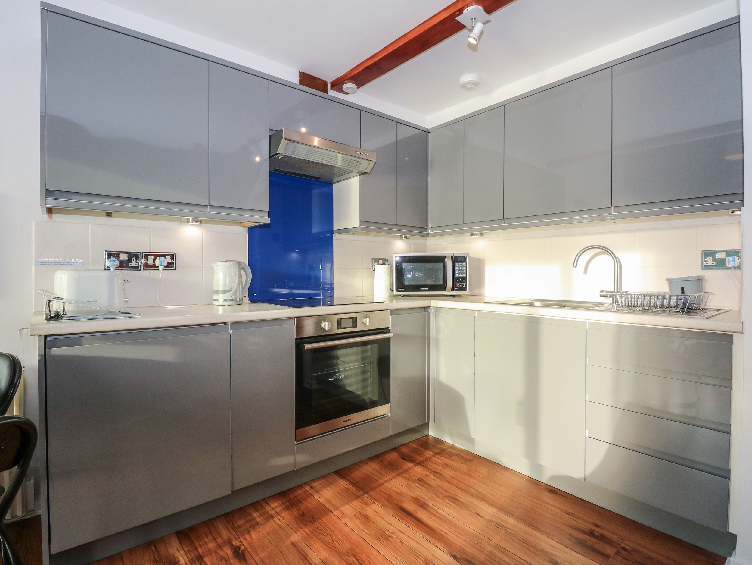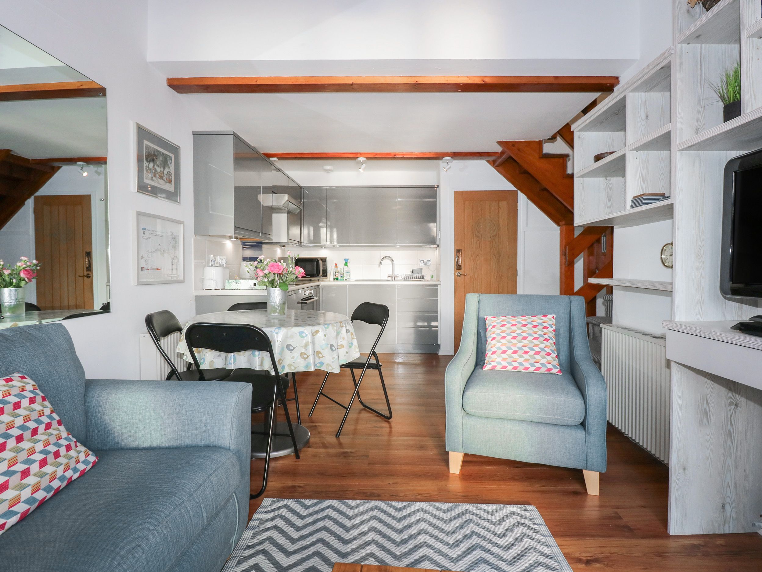 Holiday home Seafarer's Haven, a duplex apartment, consists of a kitchen with electric oven and hob, combi-microwave, fridge, kettle, and cafetière, a dining area with dining table seating four, and a sitting area with TV and access to a balcony. The bedrooms consist of a king-size and second-floor twin. There is a bathroom with a P-shaped bath, shower over, basin, and WC. WiFi, fuel, power, bed linen, and towels are included in the rent. Outside, there is a balcony with furniture and designated parking for one car. Sorry, no pets and no smoking. Make memories with a stay at Seafarer's Haven. Note: Children must be supervised at all times while on the balcony. Note: Please be aware that the length of the bath is shorter than normally expected. Note: EV charging is prohibited at this property. Note: Access to the property is via a set of steps which may not be suitable for those with limited mobility. Note: Ladders from the balcony are for decorative purposes only.
