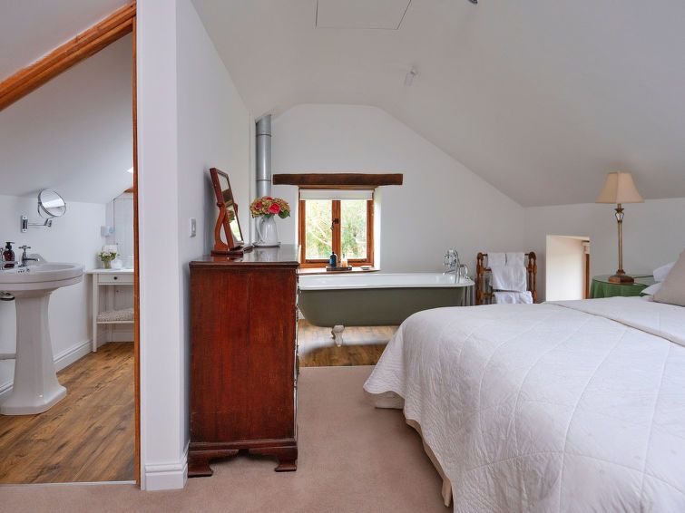 "The Barn at Tyddyn-y- Felin", 4-room house 100 m2 on 2nd floor. Object suitable for 7 adults. Living room with 1 bed, open-hearth fireplace and TV. 1 room with 2 beds. 1 room with 1 french bed. 1 room with 1 french bed. Kitchen, open kitchen (oven, dishwasher, toaster, microwave, freezer).