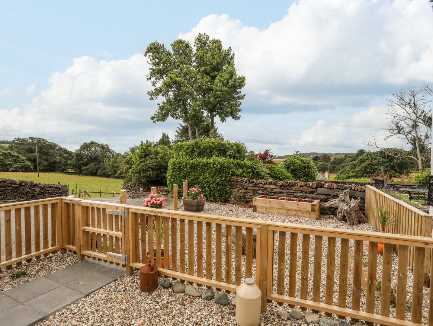 Amenities Electric Heating, electric cooker, grill and hob, washing machine, microwave, fridge with ice box, Bed linen and towels provided, Flatscreen TV, DVD player, garden furniture, off road parking. Shop and pub 1 mile. Two well behaved dogs welcome. Front and rear enclosed gravel patio areas with seating and access to surrounding field (sheep may be present certain months of the year) Note: the stairs to the bathroom are open tread. Note :This cottage is not suitable for infants.