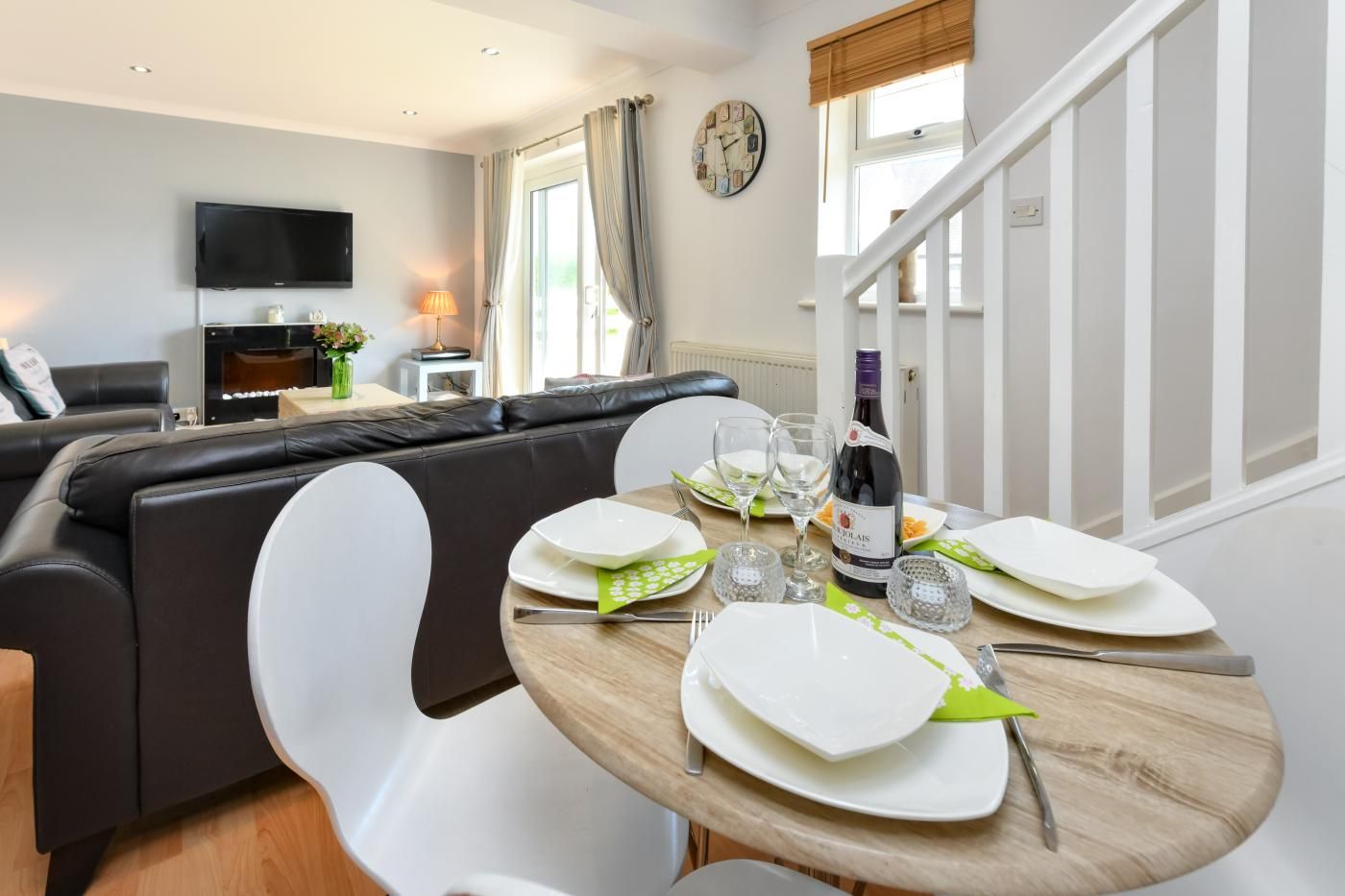 The house has three bedrooms and a lovely light and airy open-plan living space. Large patio doors lead on to a large paved patio area ideal for an evening barbecue and outside dining.