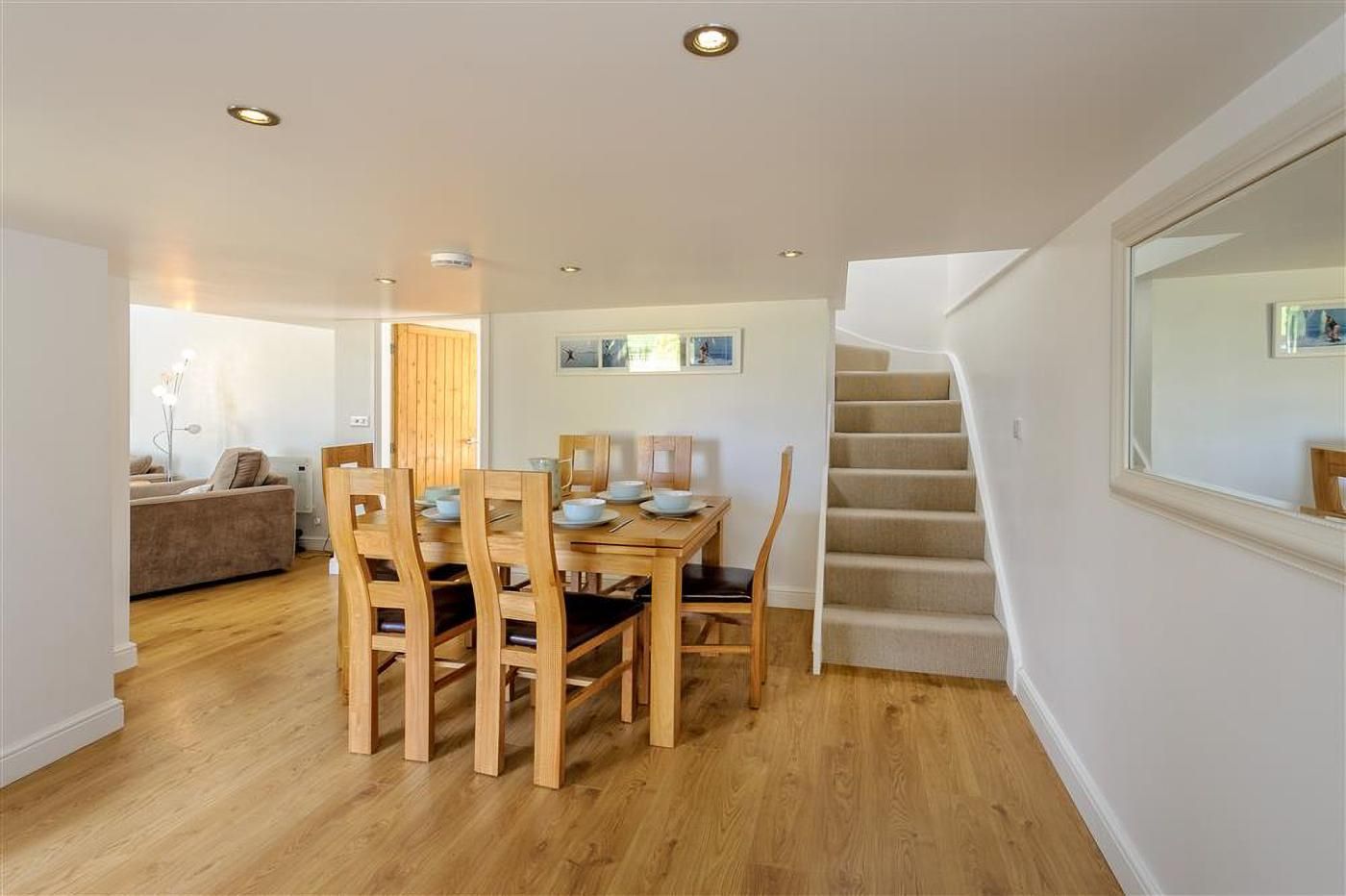 Set over 2 storeys Jenny's Cottage offers, on the ground floor, a large open plan lounge kitchen and dining room with a feature lounge with feature high ceiling and log burner, a bright and modern dining area and a new stylish fully equipped kitchen. Downstairs also lies the master bedroom with spacious and sleek en suite shower room.