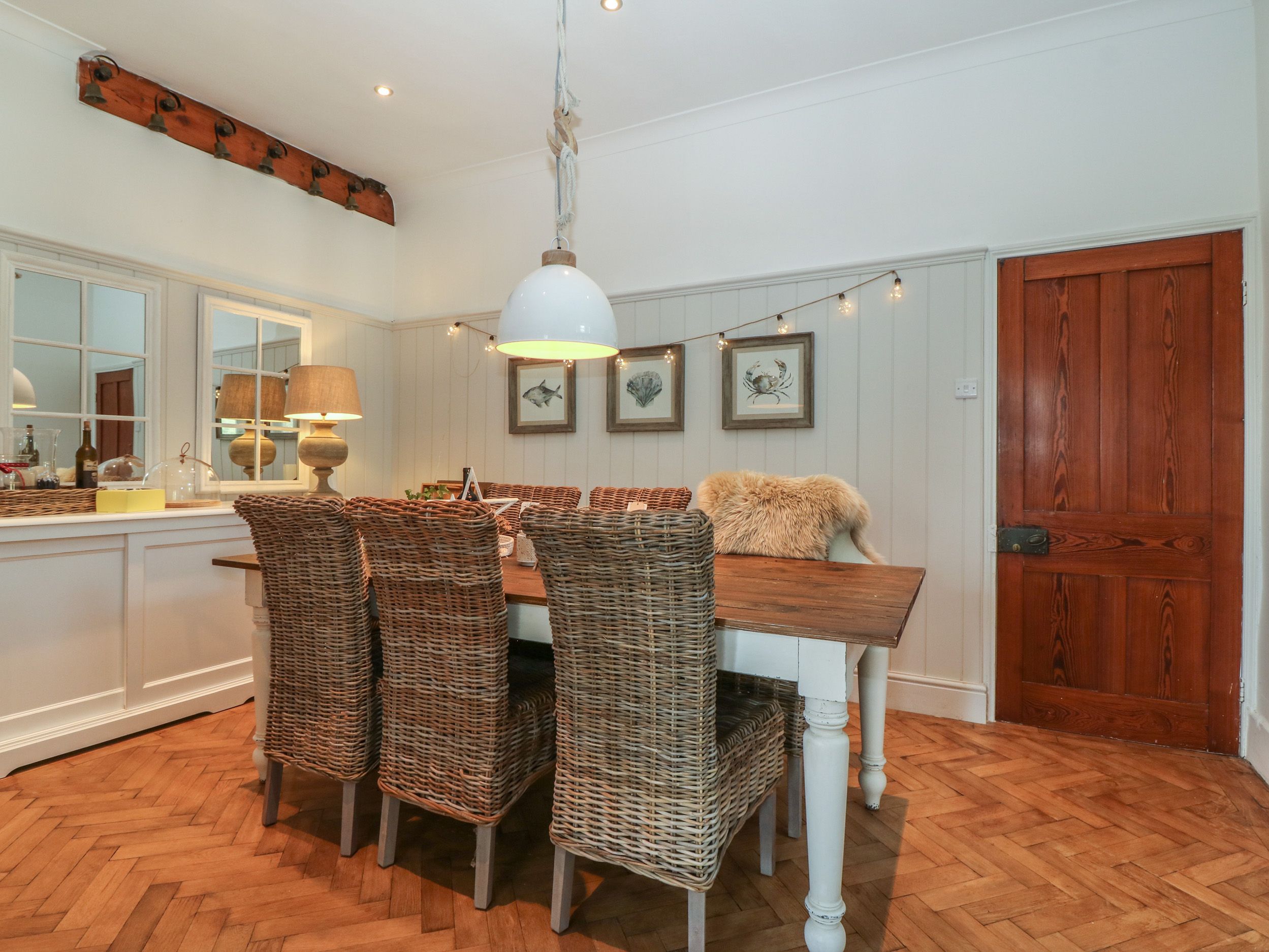 Accomodation Details Five bedrooms: 1 x super-king-size with TV and en-suite walk-in shower, basin, heated towel rail and WC, 1 x super-king-size with en-suite walk-in shower, basin, heated towel rail and WC, 1 x super-king-size with TV, 1 x king-size with basin, 1 x bunk (super-king-size double below, single above) with TV. Bathroom with freestanding bath, walk-in shower, basin, heated towel rail and WC. Ground-floor shower room with walk-in shower, basin, heated towel rail and WC. Kitchen/diner. Utility. Living/dining (garden) room with woodburning stove. 2 x sitting room with woodburning stove.