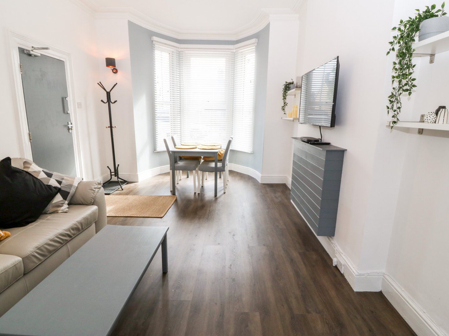 Accomodation Details Reverse-level duplex apartment. One lower-level-floor family room with king-size and bunk bed. Ground-floor shower room with walk-in shower, basin, heated towel rail and WC. Open-plan living space with kitchen, dining area and sitting area. Lower-ground-floor snug with TV