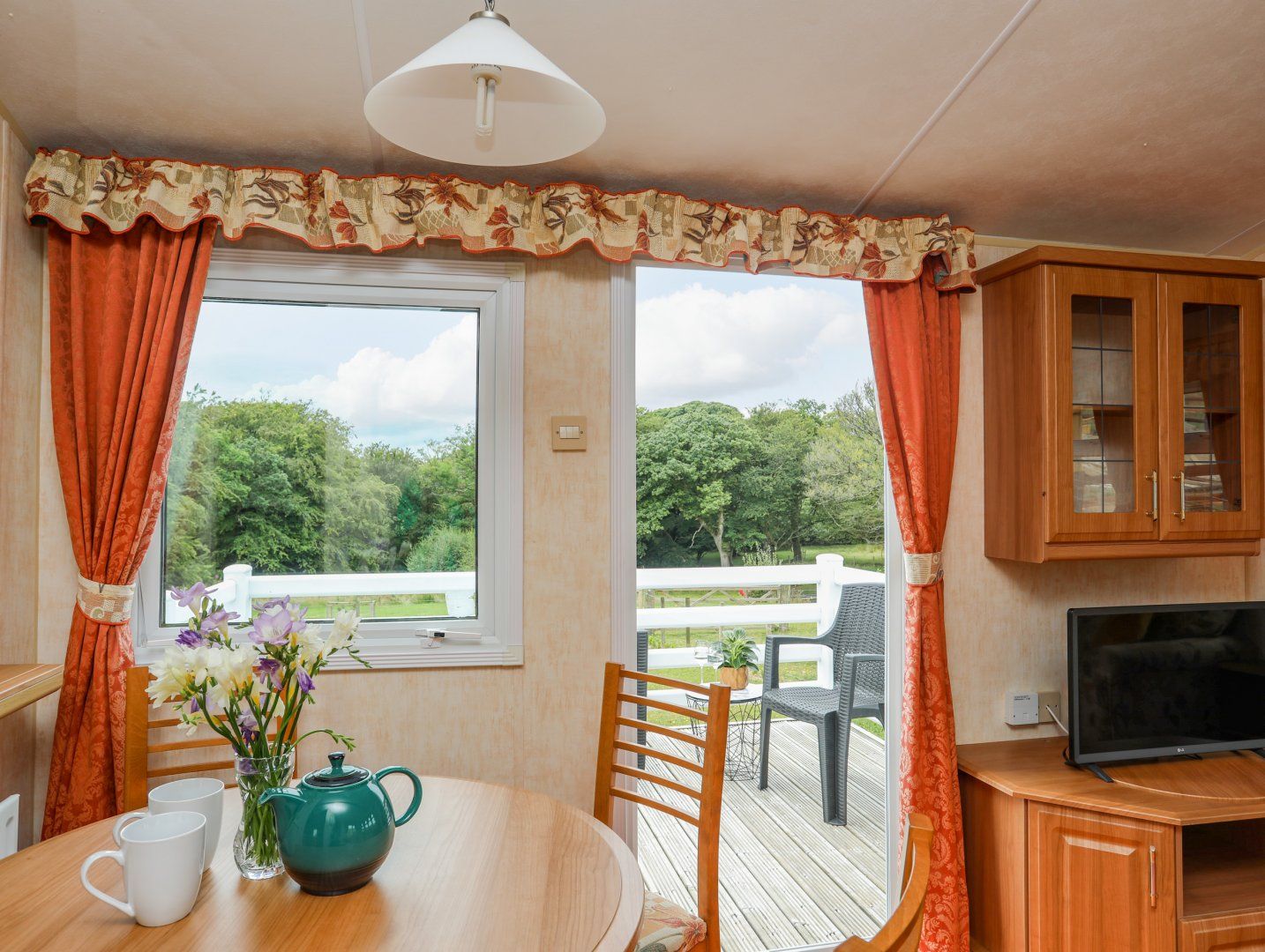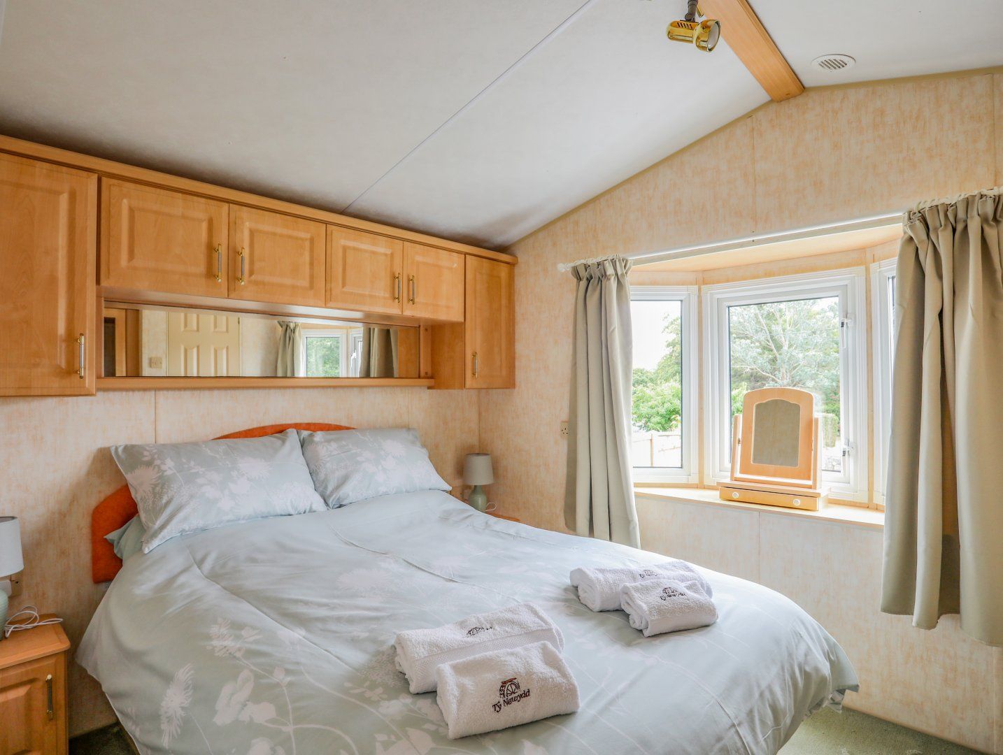 Holiday home The living areas in this single-storey caravan consist of an open-plan kitchen, dining area and sitting area with a gas oven and hob, microwave, fridge/freezer, TV, and gas fire. The bedrooms consist of a double with en-suite cloakroom, and a twin, along with a shower room. Outside there is an enclosed wrap-around multi-level garden with gravelled area, lawn, decked area, furniture, and trampoline, and parking. Two well-behaved dogs welcomed, but please, no smoking. You'll find a shop in 2.3 miles and a pub in 3.5 miles. WiFi, fuel, power, bed linen and towels are all included in the price. Ty Newydd Caravan is well-positioned to explore Gwynedd and the surrounding of North Wales. Note: The property is located next to a working farm; please keep dogs on lead outside of the garden. Note: There are steps to the exterior of the property. Note: There is a sofa bed in the sitting room; please request this upon booking. Note: Guests have access to three ponds; please be careful.