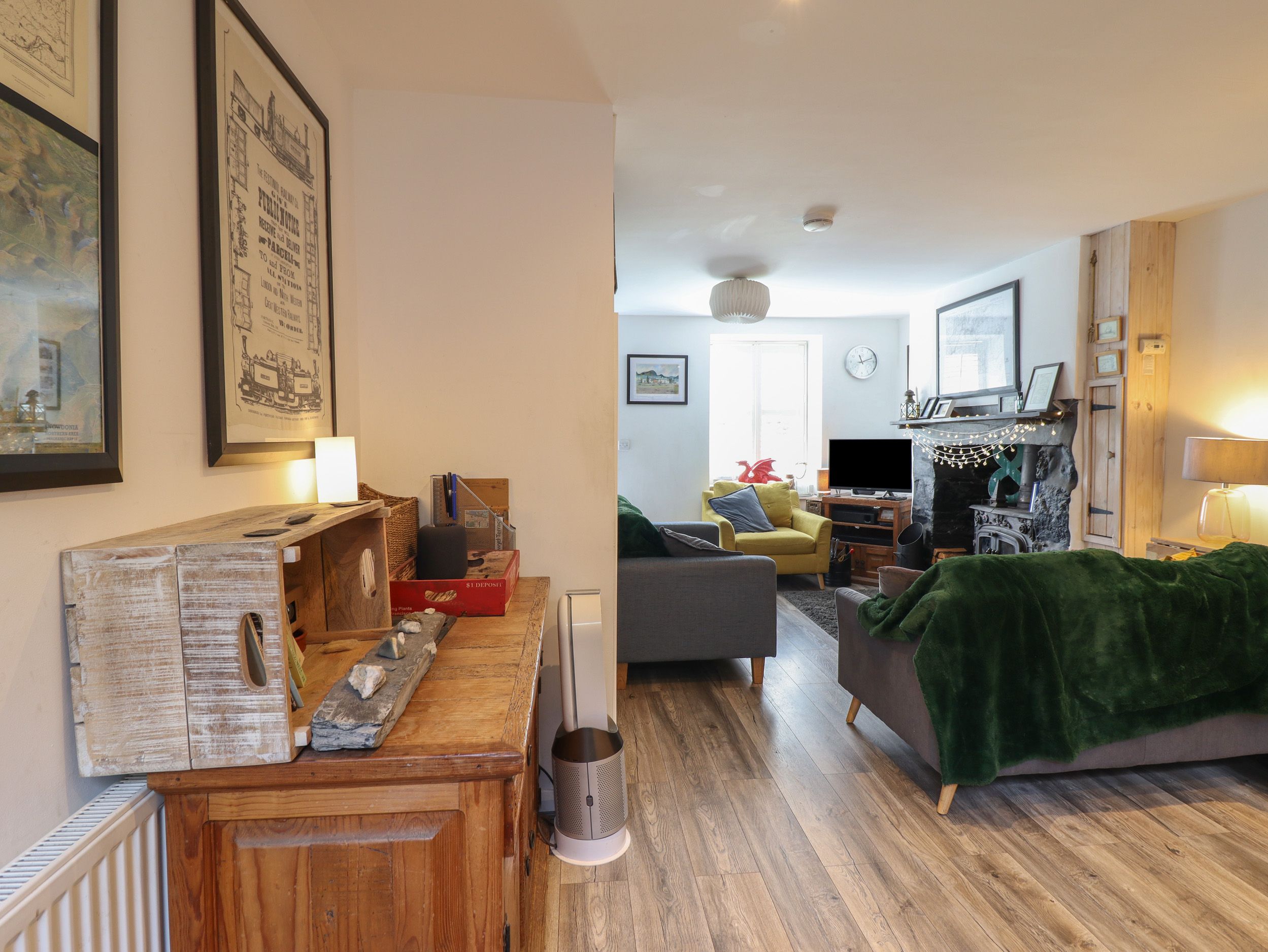 Amenities Multi fuel burner used to heat the property. Electric double oven and halogen hob, microwave, fridge, washer/dryer. Smart TV, XBox and WiFi. Electricity is included in the rental but only a complimentary starter pack of logs and coal, additional supplies are available at a charge. Bed linen and towels inc. in rent. Roadside parking on a first-come, first-served basis. Two well behaved pets welcome. Sorry, no smoking. Shop 0.8 miles, pub 0.4 miles. Note: There is no garden space at this property, please consider this when bringing pets. Note: The second floor is accessed via the double bedroom. Note: Restricted headroom on the second floor, best suited to children. Note: There is a river directly outside the property, children and pets to be supervised at all times