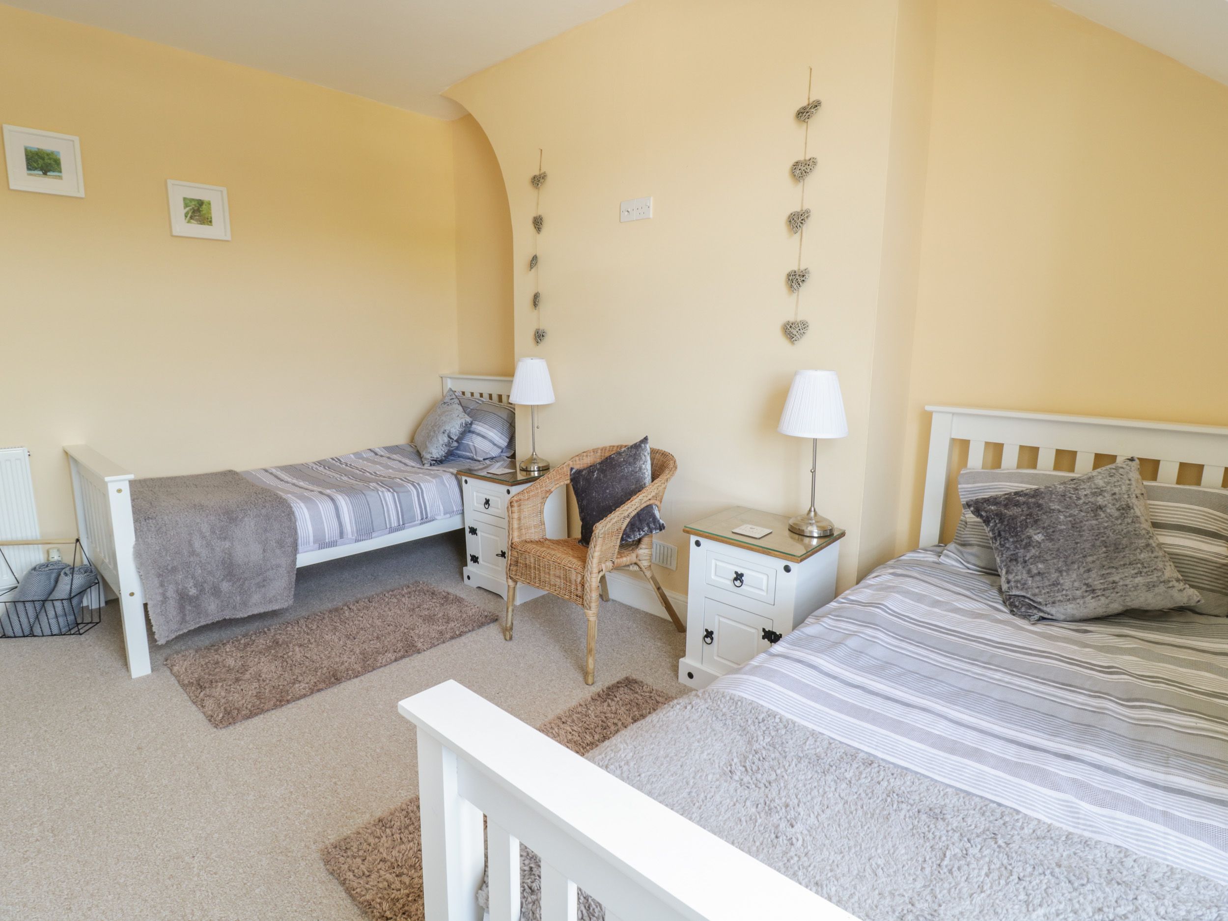 Over three floors. Three bedrooms with TV: 1 x first floor king size, 1 x second floor king size, 1 x second floor twin, 1 x second floor bunk room. Bathroom with bath, shower over, basin and WC. Second floor shower room with double shower, basin and WC. Kitchen. Dining room with electric woodburner-effect stove. Utility. First floor sitting room with electric woodburner-effect stove.