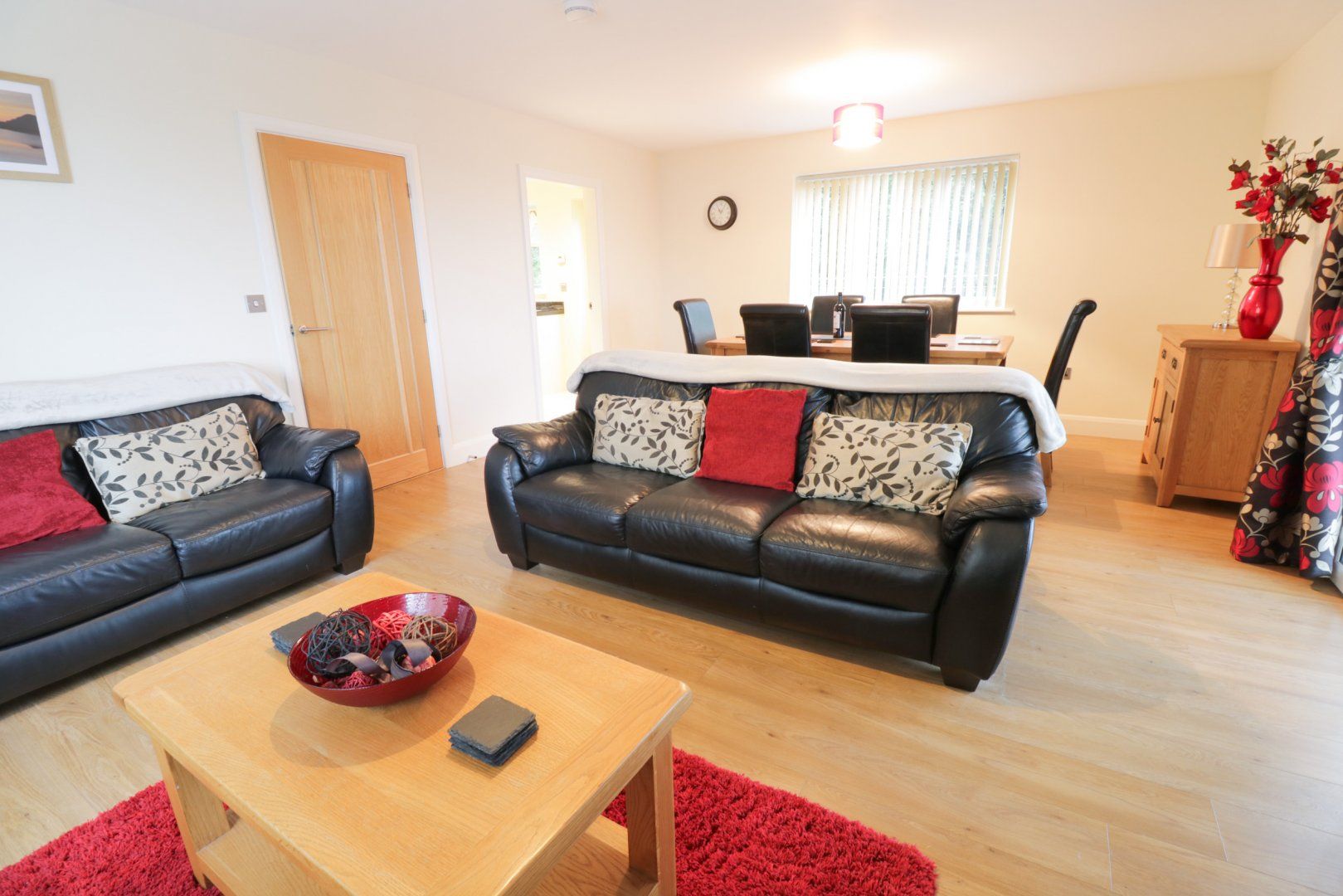 Accomodation Details Three bedrooms with TVs: 1 x king-size double, 1 x ground floor double, 1 x twin. Ground floor bathroom with bath, shower over, basin and WC. Shower room with shower, basin and WC. Kitchen. Utility. Sitting room with dining area. Conservatory.