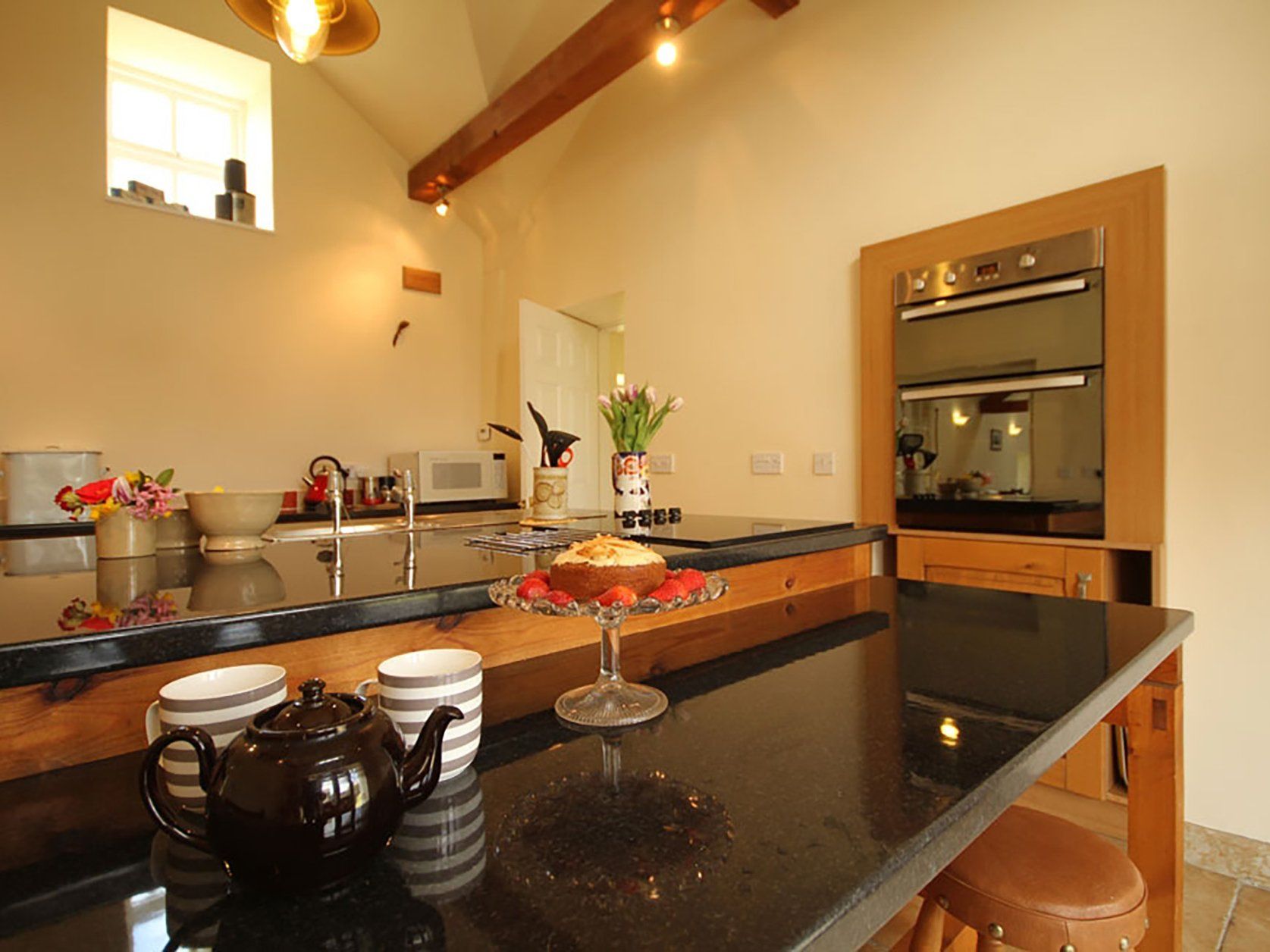 Accomodation Details One bedroom: 1 x double. 1 x ground floor shower room. 1 x Wet room with bath, excellent open shower and heated towel rail. 1 x separate loo and wash hand basin. Kitchen with washing machine, dishwasher, fridge, double oven and a breakfast bar. A central workstation has a four-ring hob and a sink with drainer. Sitting room with wood burning stove, Smart TV. Wifi