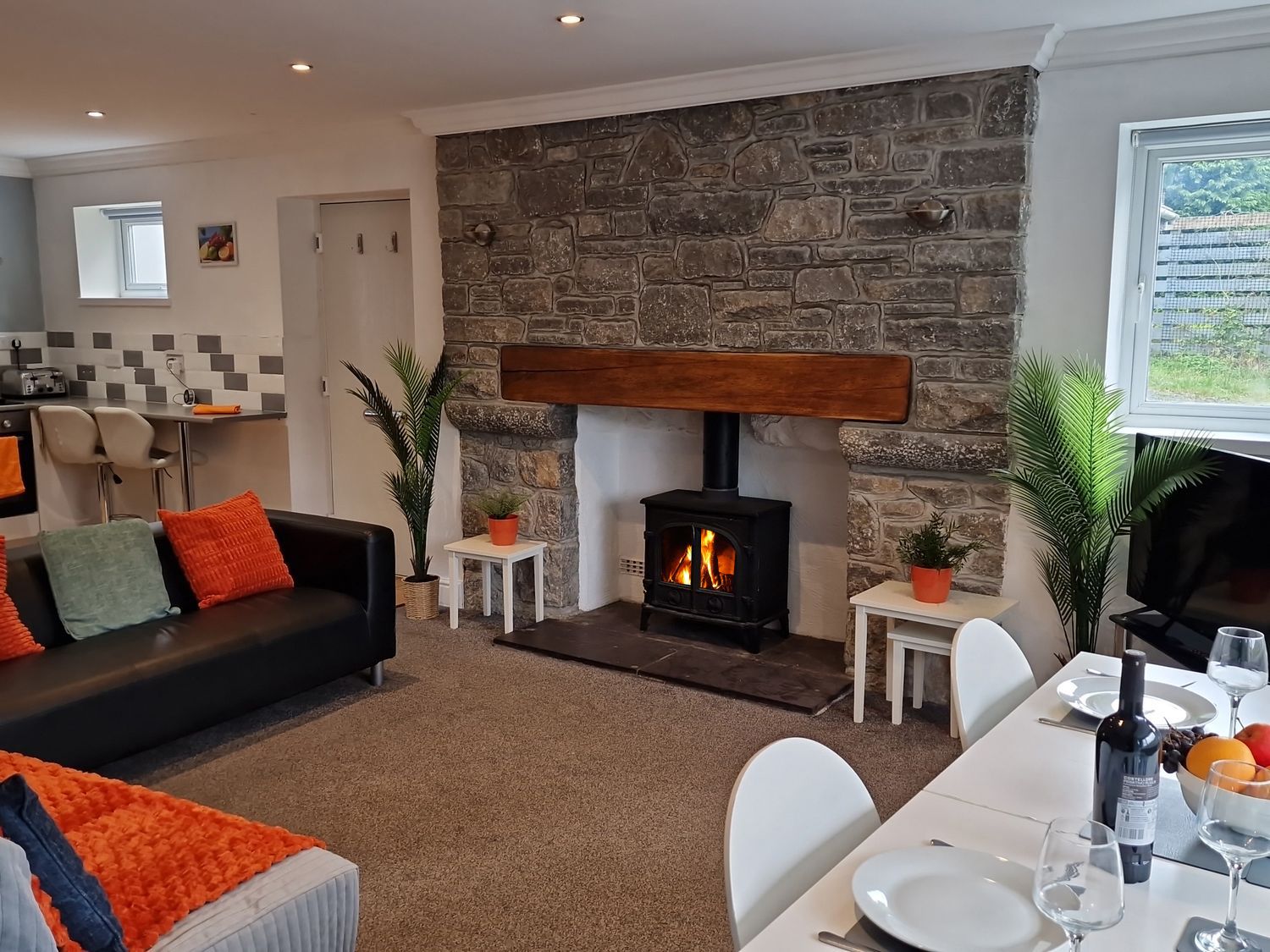 Amenities Calor gas central heating and woodburning stove. Electric oven and hob, microwave, fridge/freezer, dishwasher. Smart TV in lounge and master bedroom with Netflix, iplayer app etc, guests need own account and please log out before departure. WiFi. Fuel and power inc. in rent. Bed linen and towels inc. in rent. Off-road parking for three cars. Shared rear garden with patio, decking and seating. Groups of hiking walking cycling guests welcome. No smoking. Shop and pub 1.7 miles. Please note: water supply is from a local stream; please be mindful of use in dry seasons. Note: Two well behaved pets welcome. Please note that the property is equipped with an electrically operated water treatment system. For safety and operational reasons, do not switch off the electricity supply. CCTV is in operation covering the car park. Please note that due to the rural location the wifi is not as fast as city speeds and can occasionally be intermittent but the TV does also have a Freeview aerial.