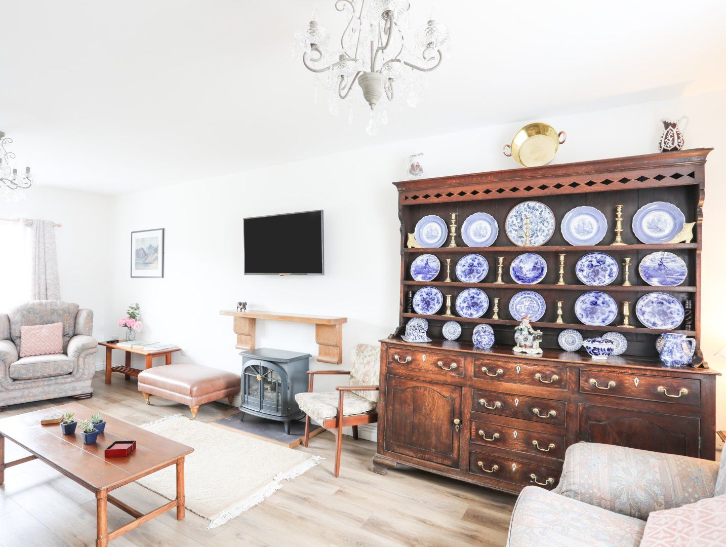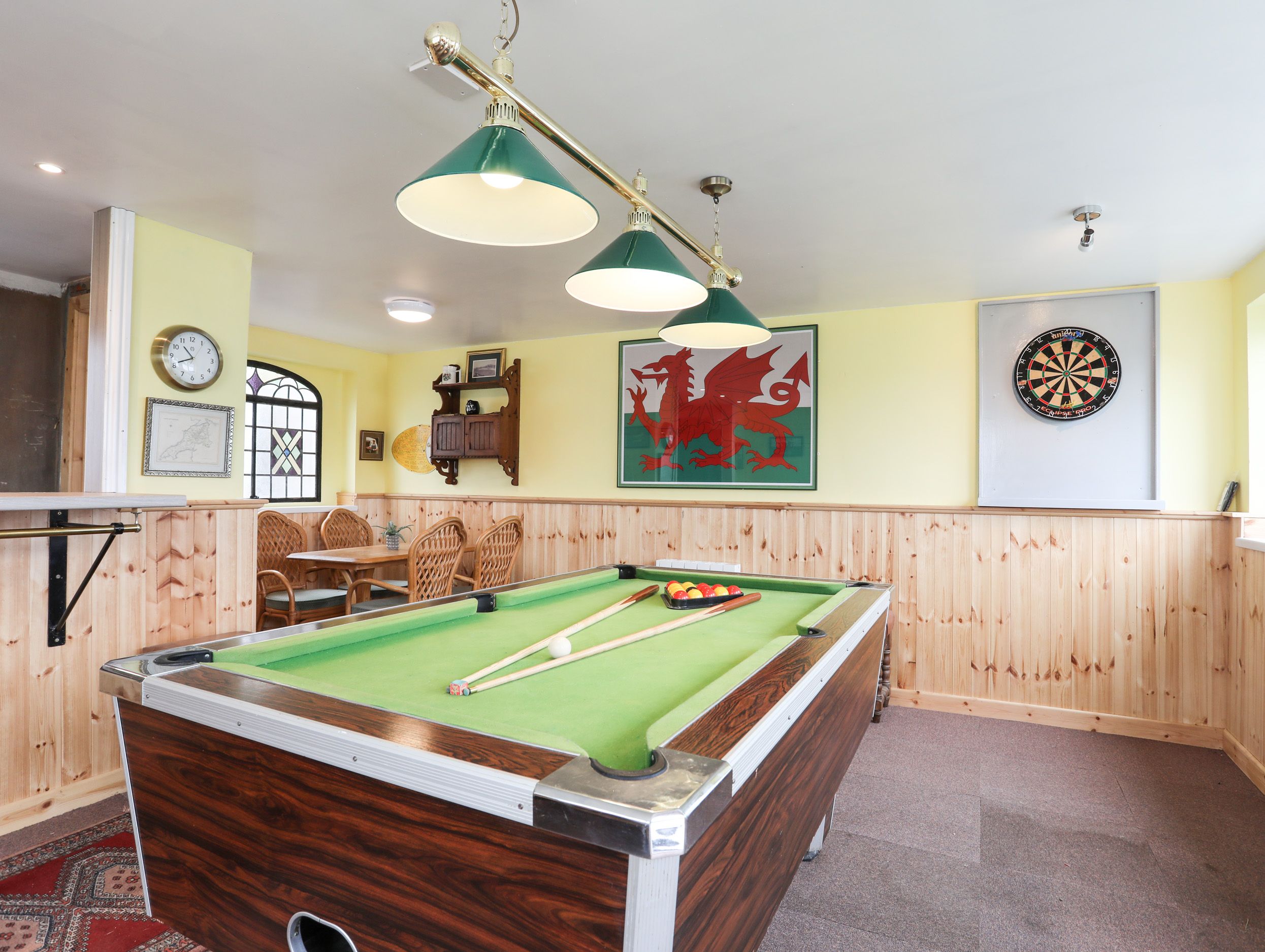 Amenities Oil central heating with electric wood burning effect stove. Electric oven and induction hob, microwave, large fridge/freezer, washing machine, dishwasher. TV, WiFi. Fuel and power inc. in rent. Bed linen and towels inc. in rent. Travel cot available, linen not included. Off-road parking. Front back garden with lawn. Patio area to rear of the property. Gas BBQ on request. Owner is a retired butcher and can provide a hog or lamb roast to order or give a master class in butchery. Games room with pool table, dart board and bar area with fridge. Electric car charging point available with additional costs. Two well-behaved pets welcome. Sorry, no smoking. Shop 0.5 miles, pub 1 mile. Note: Check-in from 4pm, check-out by 10am